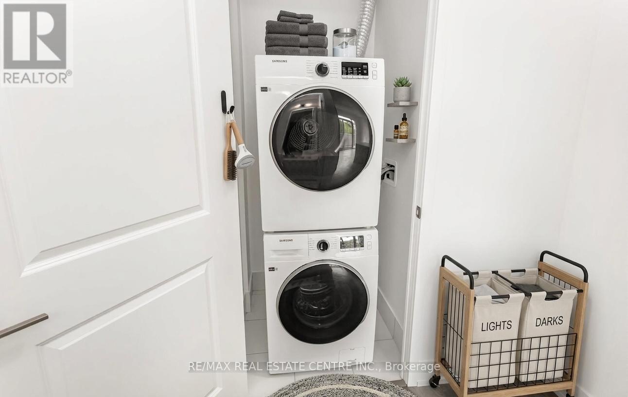 2-bedroom, 2 full-bathroom suite includes 1 parking and locker at the Keystone Condos, built by Kaneff Group. This Unit offers an open concept and Is Walking Distance to Square One shopping Centre, close to public transit, the Go Train, schools, parks, shopping malls, the QEW, and highways 401 & 403. Excellent layout with a laminate floor. Beautiful view of the ravine with an oversized balcony. The suite is flooded with natural light through the floor-to-ceiling windows. upgraded Stainless steel appliances: fridge, stove, OTR microwave, dishwasher and ensuite washer & dryer (id:4555)