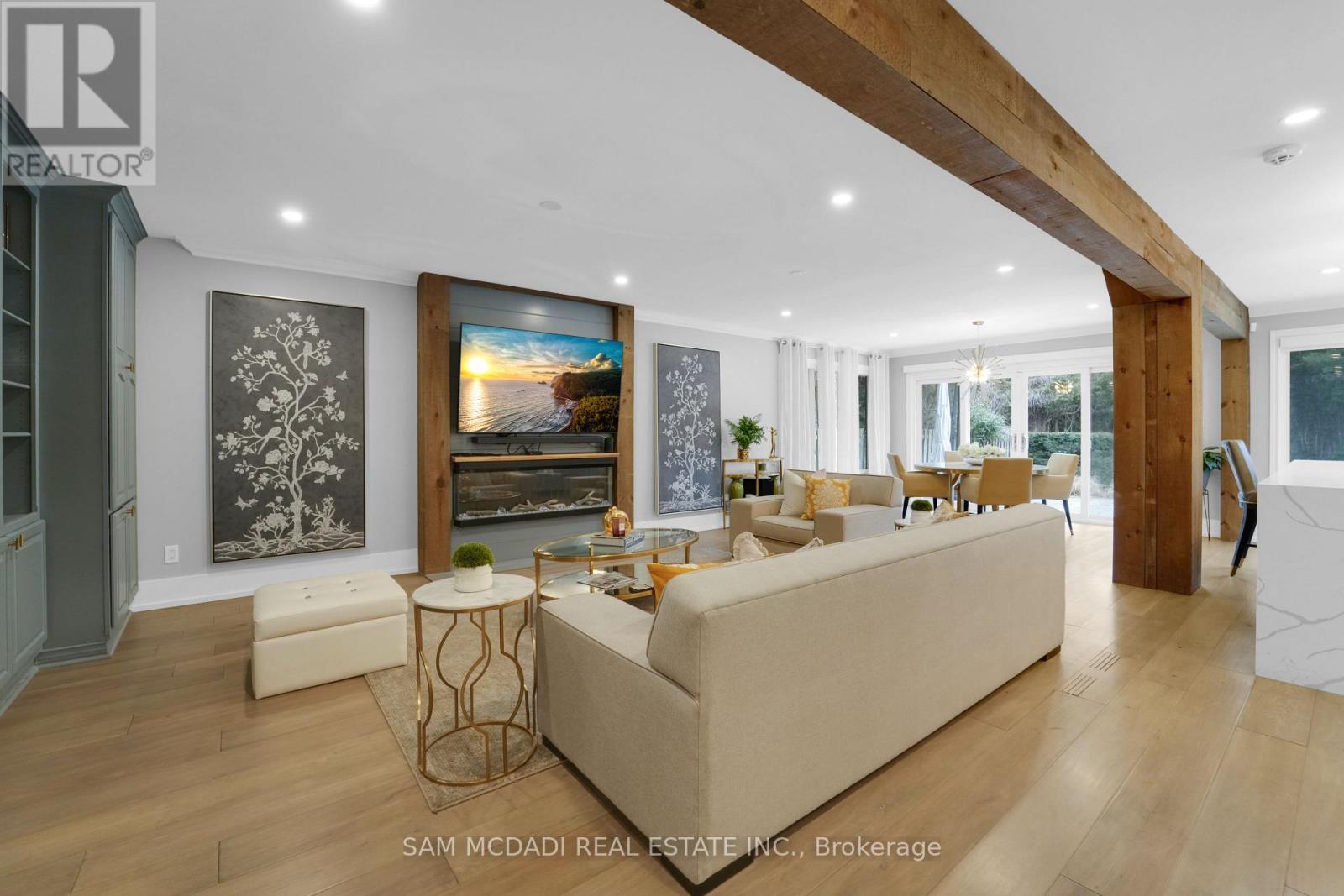 Welcome to 807 Indian Road, a beautifully appointed residence in the heart of prestigious Lorne Park. Set on an impressive 64 x 244 ft lot, this elegant home offers exceptional privacy, outstanding curb appeal, and a tranquil setting on one of South Mississauga's most desirable streets. A hydraulic iron gate, professionally landscaped grounds, and an extended stone interlock driveway create a striking first impression, with parking for up to 8 vehicles plus a double garage featuring built-in storage and EV charging. Offering over 4600 SF of total living space, this 4+1 bedroom, 4.5 bathroom home was thoughtfully renovated in 2021 to blend modern luxury with timeless comfort. The main level is bright and inviting, featuring oversized windows, light oak wide-plank engineered hardwood flooring, pot lights, and custom built-in storage throughout. The gourmet kitchen is complete with quartz countertops and backsplash, premium Thermador stainless steel appliances, and ample storage. The family room is warm and inviting with custom wood paneling, built-in shelving, and a Napoleon electric fireplace. A graceful round hardwood staircase leads to the upper level, where the spacious primary retreat offers a walk-in closet and spa-inspired ensuite with double vanity and glass-enclosed rainfall shower. A junior suite includes a brand-new 3-piece ensuite with rainfall shower and brass fixtures, alongside two additional bedrooms and a 4-piece bath. The finished lower level features an additional bedroom and bathroom, wet bar, sauna, home theatre setup, rec room with fireplace, and a laundry room with built-in cabinetry. Outdoors, the exceptionally deep backyard is a private oasis complete with full outdoor kitchen, interlocked patio, mature trees, and lush gardens. Perfectly situated near top-rated schools including Mentor College, Lake Ontario, Port Credit, golf clubs, and the QEW, this exceptional home offers refined living in one of Mississauga's most sought-after communities. (id:4555)
