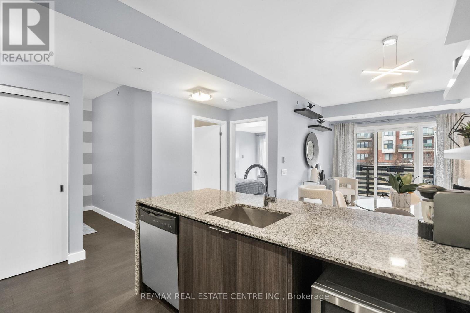 A Rare Find with Two Parking Spaces *** Beautifully maintained 1+ Very spacious Den condo in HOT Condos built by the highly respected Great Gulf. Located in the highly desirable Churchill Meadows community. Approx. 763 sqft with 9' ceiling and featuring a bright, modern, and functional open-concept layout with modern laminate flooring throughout (carpet-free), smooth ceilings, and freshly painted interior (2026). Stylish kitchen with elegant granite waterfall countertop, modern backsplash (2026), breakfast island, abundant cabinetry, and brand new appliances (stove and fridge 2026). Spacious living and dining area filled with natural light and walk-out to a private, oversized open balcony with modern glass railing. Large primary bedroom easily fits a King-size bed with a double-door closet plus an oversized den that can easily function as a home office, or guest space and can fits a 2nd bed. Rare 2 parking spaces included 1 underground and 1 surface spot conveniently located close to the building entrance. Building amenities include a gym/fitness centre, party room, visitor parking, BBQ permitted areas, and a secure entry system. Prime location close to Erin Mills Town Centre, Credit Valley Hospital, parks, trails, and community centres. The property is located within the catchment area of several well-regarded schools. University of Toronto Mississauga (UTM) and Sheridan College Hazel McCallion Campus are also within convenient-driving distance. Easy access to Highways 403, 407, 401 and nearby GO stations, making commuting across the GTA convenient. Ideal opportunity for first-time buyers, professionals, downsizers, or investors seeking comfort, functionality, and a great location. A wonderful opportunity to enjoy modern condo living in one of Mississauga's most desirable communities. Don't Miss it! (id:4555)