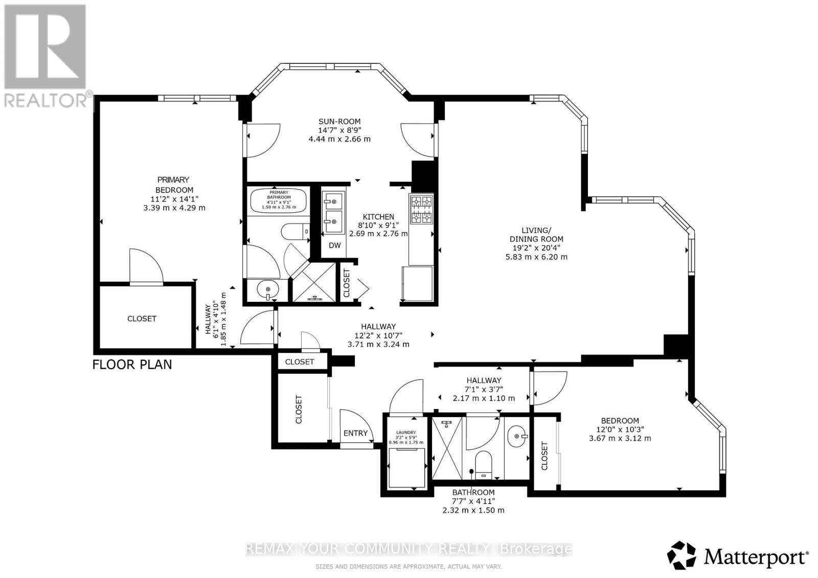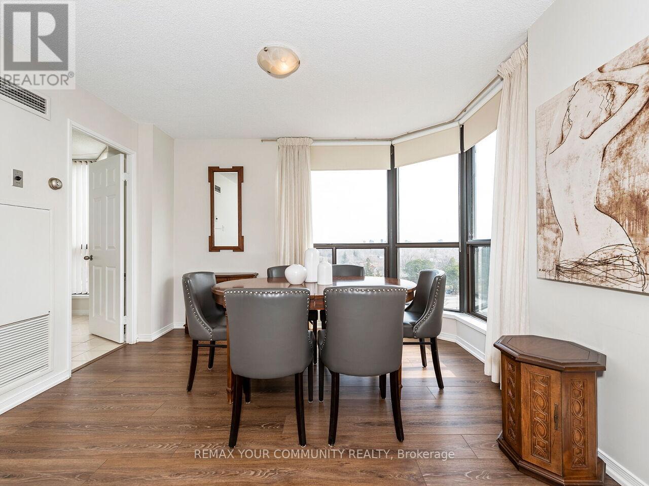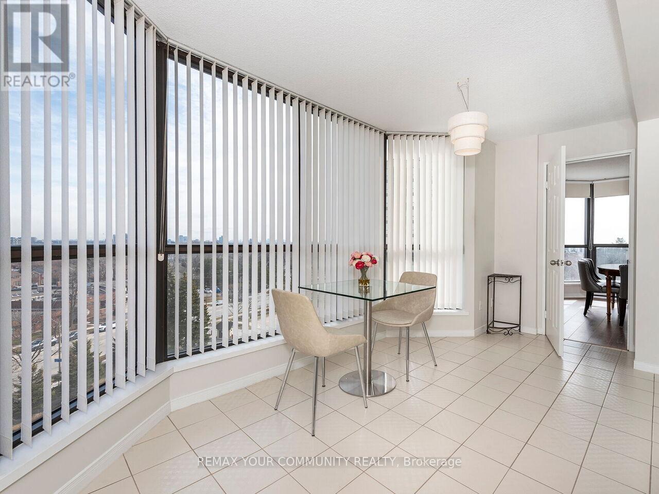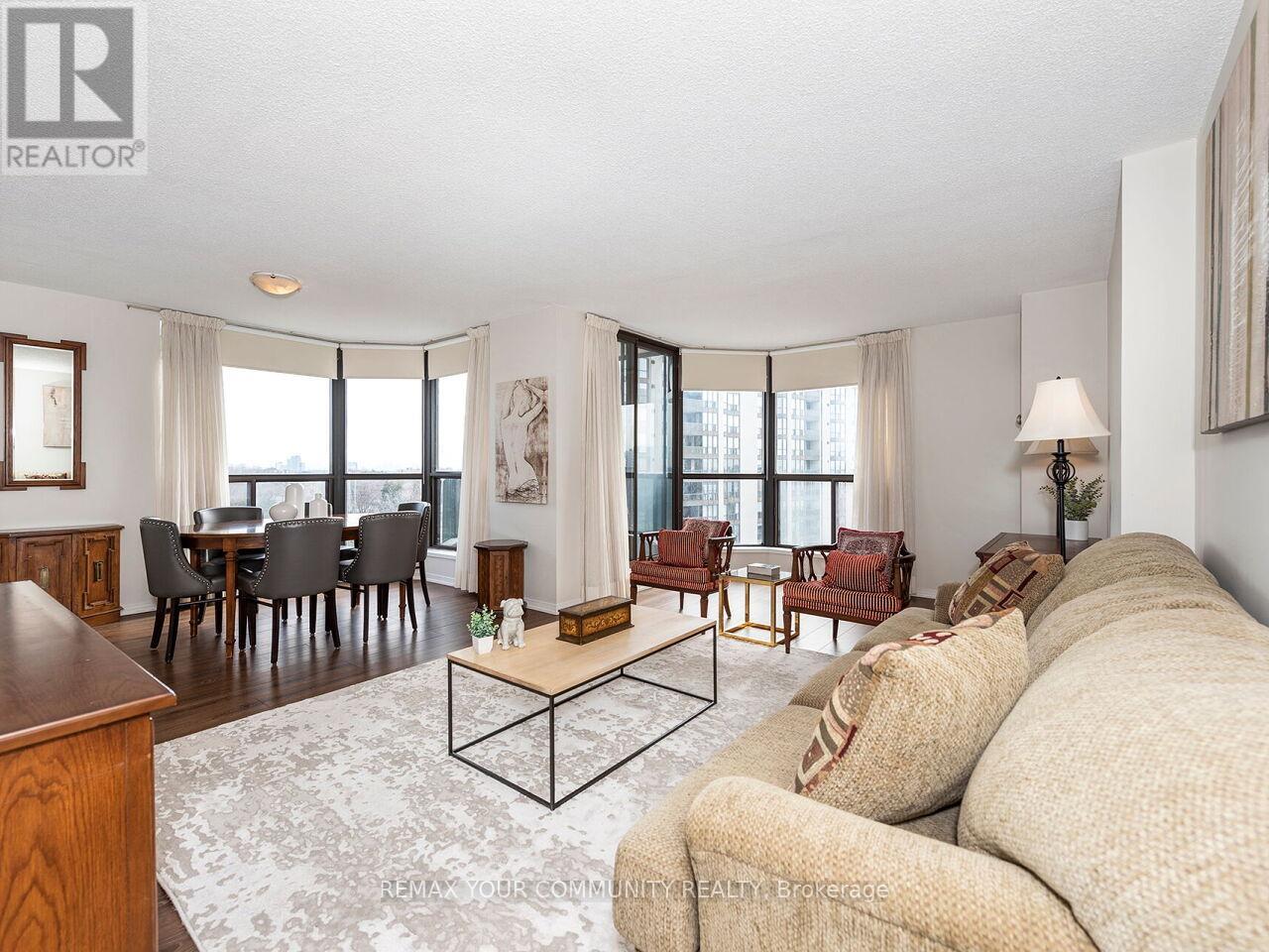 RARELY OFFERED CORNER SUIT. Bathed in natural light, this expansive 1,230-sq-ft corner suite in the Rathwood community offers a scale of living seldom found in the GTA. Designed for "house-sized" furniture, the bright, open-concept layout features a massive living and dining area upgraded with luxury vinyl plank flooring (2021), a walk-out to the balcony and a unique greenhouse-style breakfast nook with unobstructed, breathtaking views of the Toronto skyline. The thoughtful split-bedroom design ensures maximum privacy. The primary retreat boasts a walk-in closet and a 5-piece ensuite with a separate shower, while the 2nd bedroom offers a bright space with double closets that is perfect for an office or 2nd bedroom. This move-in-ready suite includes the advantage of two parking spaces and a storage locker. Enjoy peace of mind in a building with a renovated lobby, hallways (2023), and a brand-new party room (2025). Comprehensive maintenance fees cover Heat, AC, Water, Cable TV, and High-Speed Internet. Ideally located minutes from Pearson Airport, GO bus, Hwy 403/401/427, Square One, Sherway Gardens Mall, Rockwood Mall and more. (id:4555)