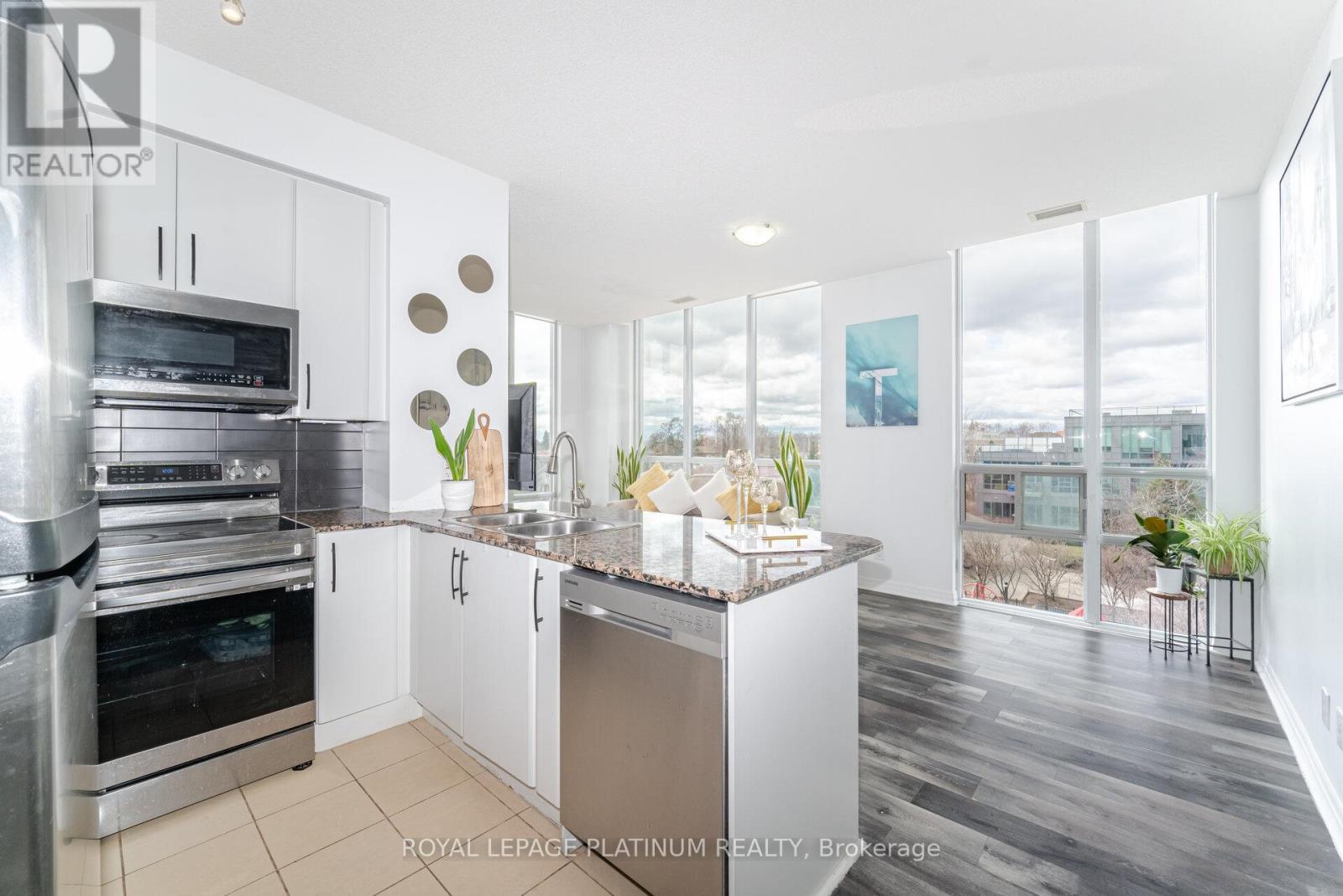 Truly Magical Tree Top Serene Setting In This Builder Premium SW Garden Suite. Oversized Corner showcasing 763 Sq Ft, Full Wall Of Windows- Maximizing Glorious Light & Views. Dining Size privacy Balcony With Zero Obstructions. Beautifully Updated Modern Bath, Extra Large Kitchen/SS Appliances & 6 Person Dining. Huge Master With His/ Hers Closet. Pride Of Ownership & Not to be Missed. New appliances purchased/upgraded in 2023 - Microwave, cooktop with oven, dishwasher, laundry washer/dryer. Modern floor upgrade in 2023, Entire unit painted & Kitchen upgrade in 2024. (id:4555)