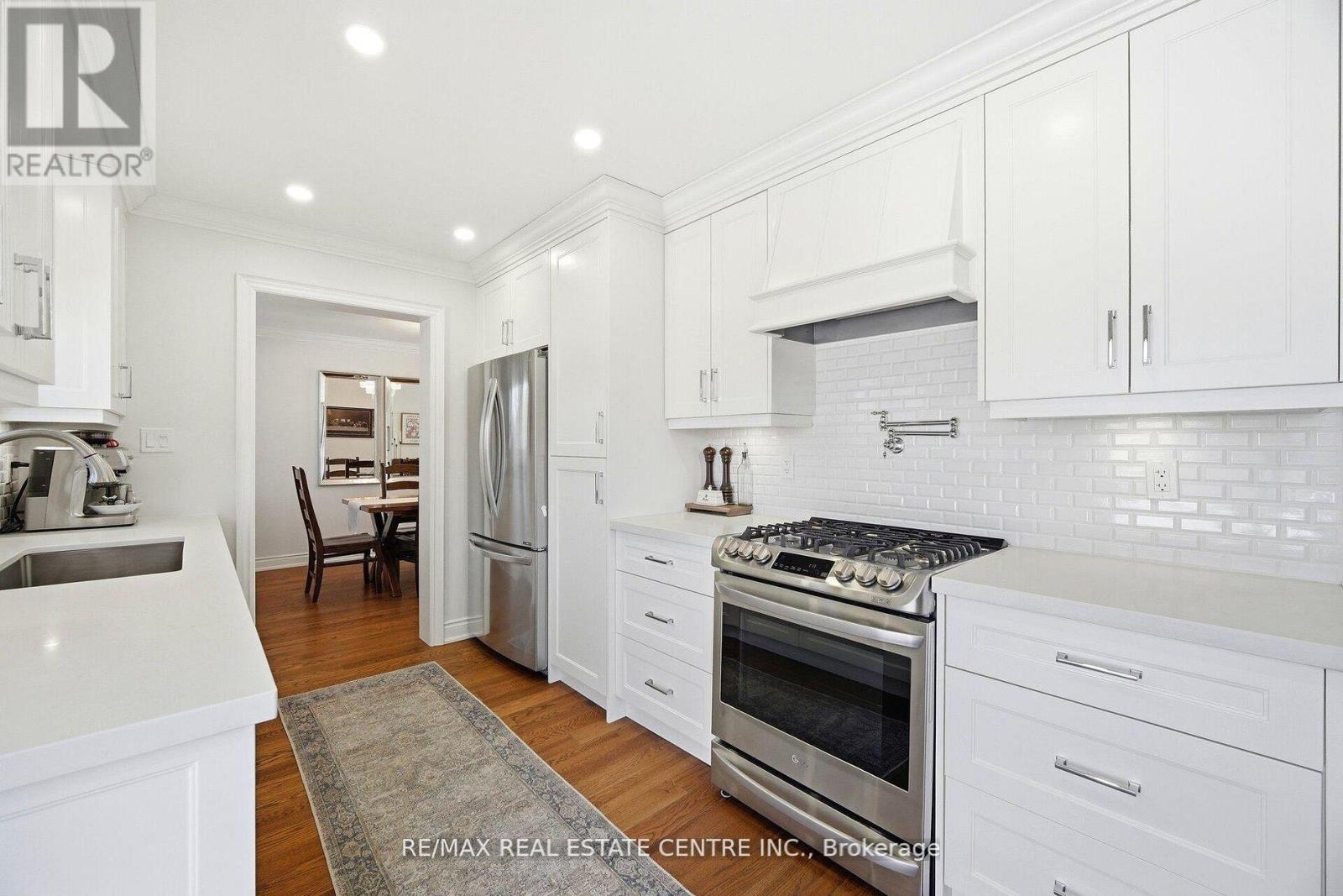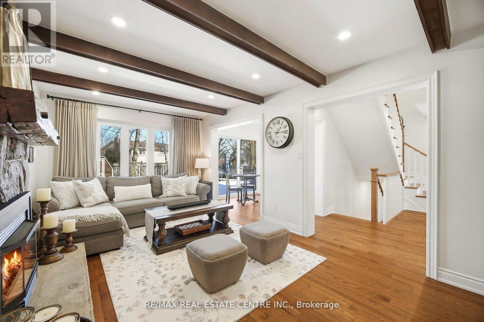 Nestled on a quiet street in the prestigious community known as Rockwood Village, 4253 Marblethorne Crt. is a must see. One of Mississauga's most desirable east-end neighbourhoods this beautifully re-imagined 4 Bedroom/Detached home showcases a complete, top-to-bottom renovation with exceptional attention to detail. Every element of the home has been thoughtfully updated to offer refined style & modern comfort. The designer kitchen features quartz counter-tops, S/S Appliances, seamlessly opening to the inviting family room with rich hardwood floors, a striking stone gas fireplace, an elegant beamed ceiling, & custom built cabinetry. In conjunction with a bright and spacious living/dining Rm combination, the main floor creates a warm yet sophisticated atmosphere where quality meets functionality. The second floor offers an elegant & inviting retreat, featuring 4 beautifully appointed bedrooms designed for comfort and relaxation. Each room provides generous space & natural light, creating a warm and cozy atmosphere throughout. The serene primary suite serves as a private haven, complete with a stunning three-piece en-suite & W/I Closet. The finished basement offers a versatile extension of the home, featuring a spacious rec room along with a dedicated playroom & 2-pc en-suite. With ample room & flexible layout options, there is obvious potential to create a fifth bedroom, making this lower level both practical and full of possibility. Outdoors, a private backyard sanctuary awaits, framed by mature trees and professional landscaping. This family friendly community is known for its great parks, the Etobicoke Creek Trail system, top-rated schools, everyday amenities just moments away, along with a short drive to HWY 401/403/427/410 & the DIXIE GO. If you are looking for a home, where neighbours connect, children thrive, & families grow... 4253 Marblethorne Crt. may be the home for you. (id:4555)