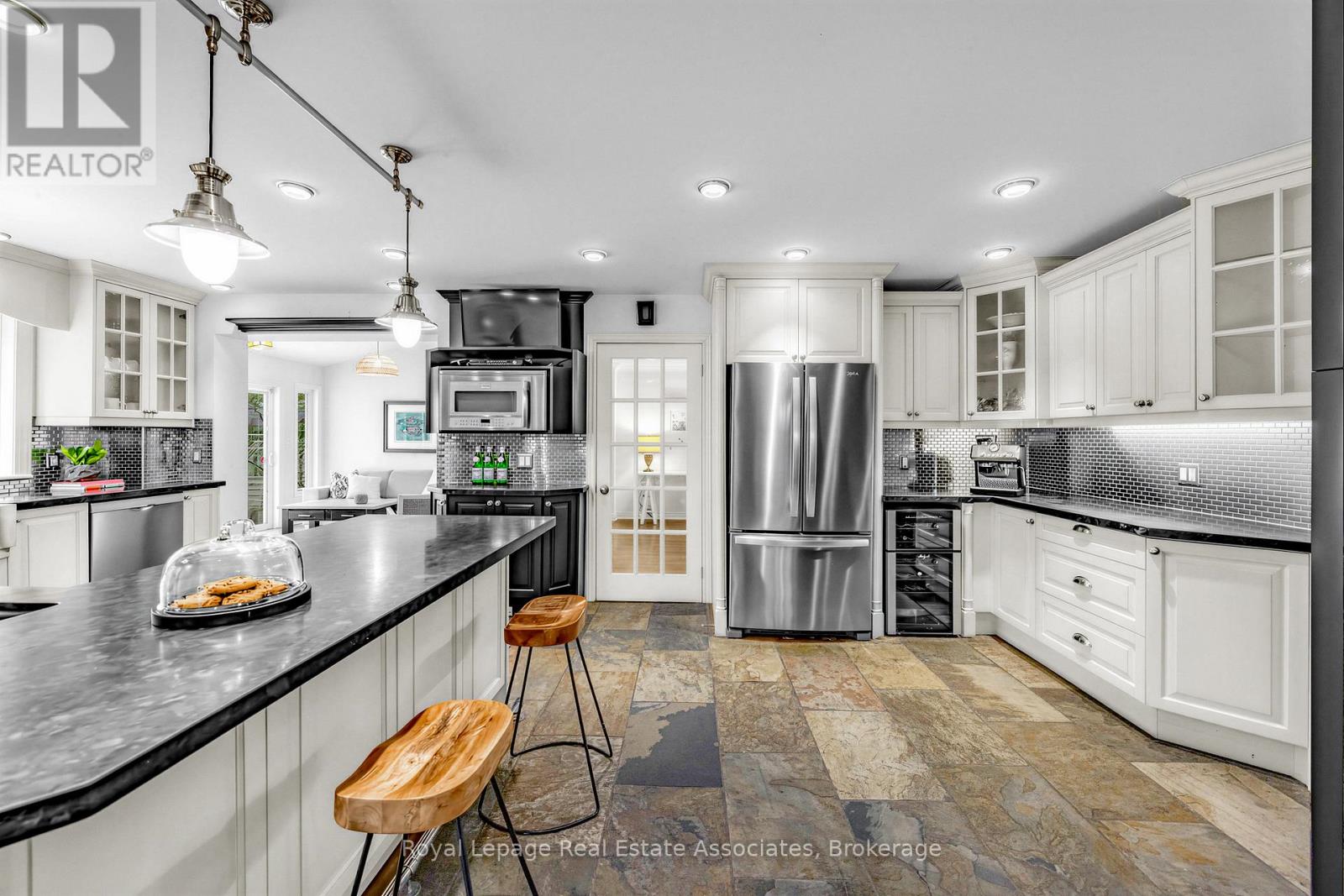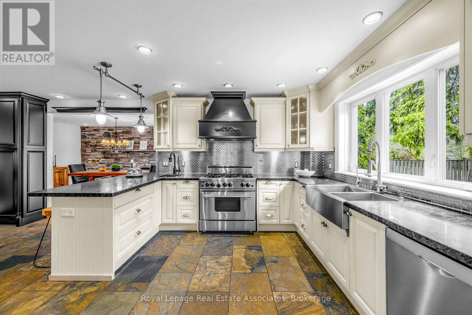 Set against a picturesque wooded backdrop in prestigious Mineola West, this exceptional 5-bedroom, 6-bathroom residence offers over 5,000 sq ft of beautifully finished living space, just moments from Port Credit, top-rated schools, waterfront trails, and parks. A welcoming foyer with a graceful circular staircase sets the tone for interiors that blend timeless design with a seamless, functional flow-perfect for both everyday family living and entertaining. At the heart of the home, the chef-inspired kitchen features rich granite surfaces, generous prep space, and extensive storage, opening effortlessly to an elegant dining area anchored by a striking stone fireplace. The family room offers a warm yet refined setting, complete with custom built-ins and tranquil views of the surrounding landscape. Dual walkouts extend the living space to expansive decks and a private, tree-lined backyard-ideal for quiet mornings or relaxed family gatherings. Upstairs, four spacious bedrooms provide comfort and flexibility for growing families. The primary suite serves as a true retreat, featuring separate his-and-hers closets and a spa-like ensuite with a soaker tub, glass-enclosed shower, and double vanity. A standout feature is the fully self-contained fifth bedroom suite, complete with its own bath and living area, perfect for extended family, guests, or a private home office. Thoughtfully designed for busy households, the home also includes a mudroom with separate entry. The lower level is designed with family living in mind, offering a cozy family room with fireplace and reclaimed wood mantel, a large games area, fitness room, and sauna, along with a walkout that brings the outdoors in.1593 Glenburnie Road is a rare offering in one of Mississauga's most sought-after enclaves, backing onto Mary Fix Park and just steps from Kenollie Public School, ranked #1 in Ontario by the Fraser Institute (2025/2026). (id:4555)