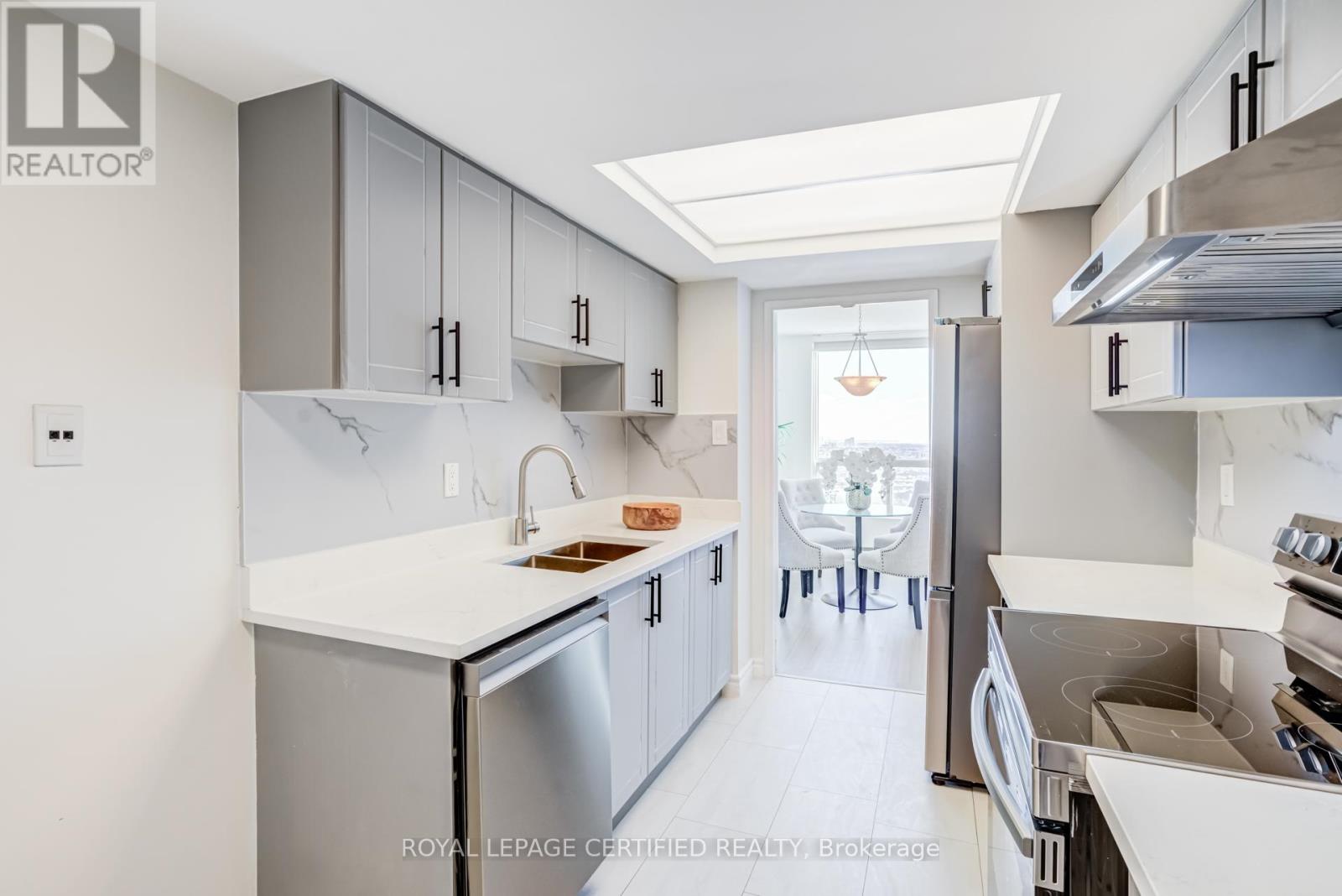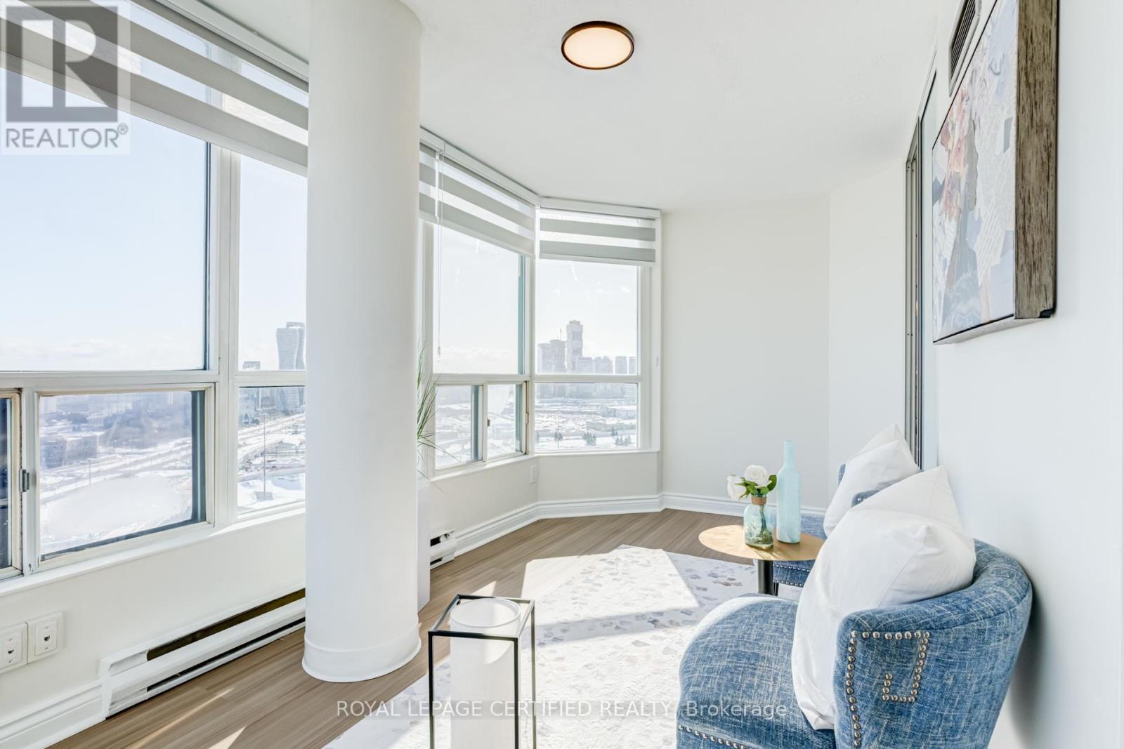 Rare sub-penthouse corner suite in prime location ,offering unobstructed skyline views and one of the largest, most functional layouts in the building. Over $50,000 spent in recent upgrades, including a modernized kitchen with upgraded appliances, new hood fan and backsplash, fully renovated bathrooms with standing showers and new vanities, high-end vinyl flooring throughout, stylish light fixtures, and new zebra blinds. This spacious 2+1 bedroom, 2-bathroom layout features a bright solarium ideal for a home office or third bedroom and is filled with natural light throughout. Includes 3 parking spaces & locker. Enjoy outstanding building amenities including 24-hour concierge, fully equipped gym, indoor pool, sauna, recreation room, racquet court, and ample visitor parking. Unbeatable location with a high walk score, just steps to Square One, all amenities, GO Station, bus transit, parks, schools, dining, and major highways, offering exceptional convenience and connectivity. (id:4555)