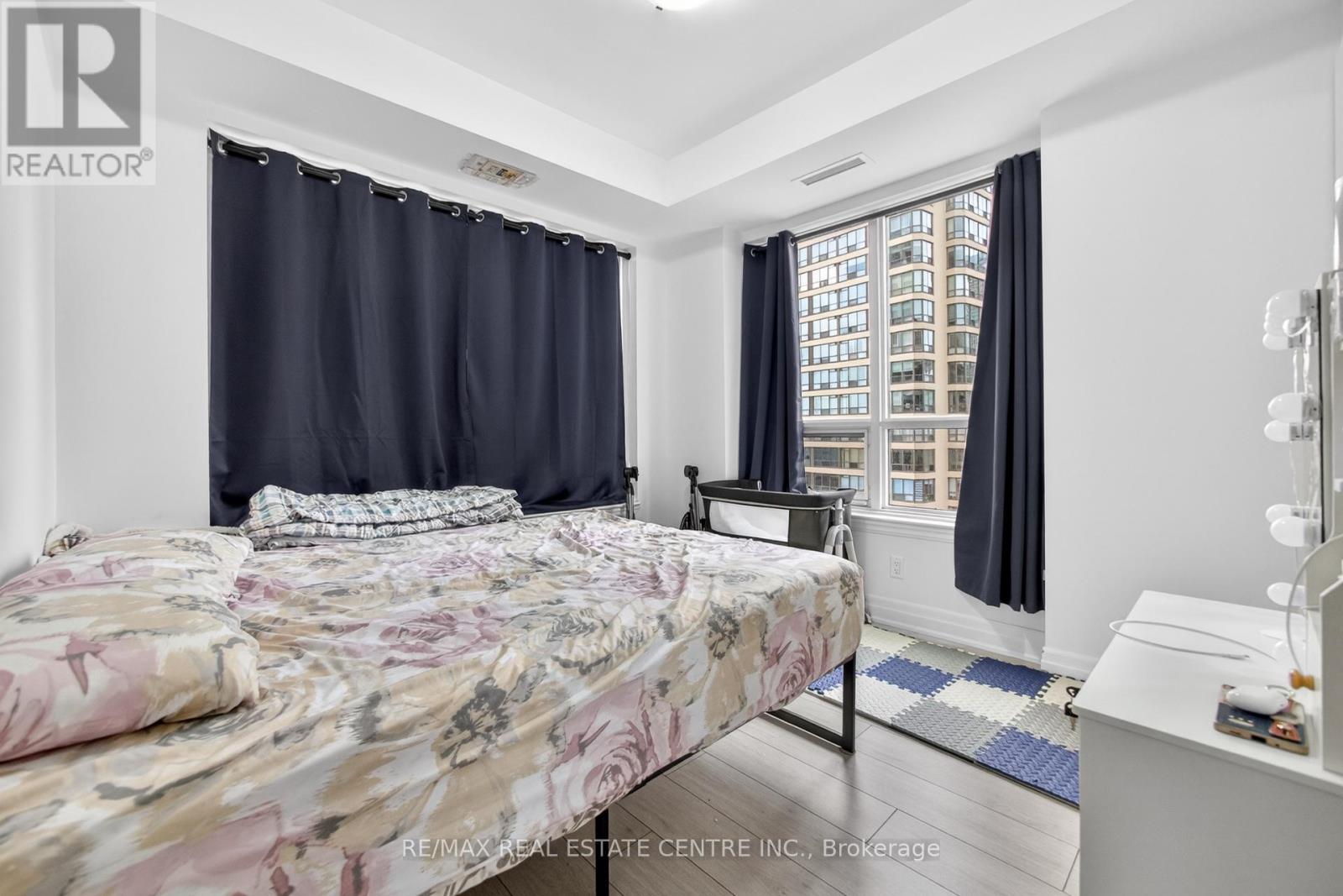 Modern 2 Bedroom Condo in the heart of Mississauga featuring approximately 750 sq ft of well-designed living space. This bright unit offers an open-concept layout with a stylish kitchen featuring quartz countertops, centre island, and laminate flooring throughout. Spacious living area with walk-out to a private balcony and city views. The primary bedroom includes a large closet, while the second bedroom also features balcony access and a large window. Convenient in-suite laundry, 1 owned underground parking space, and an owned locker. Building amenities include concierge, gym, media room, guest suites, business centre with WiFi, and a games room. Prime location steps to Square One area, public transit, parks, library, and arts centre. Ideal for first-time buyers, investors, or professionals seeking urban living. (id:4555)