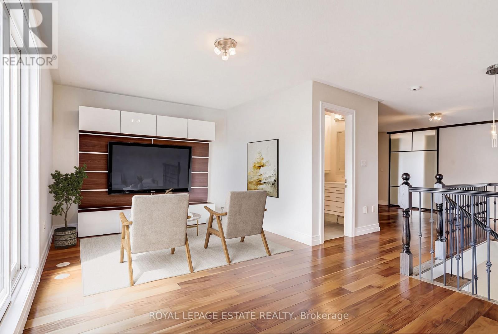 Welcome to 66 Compass Way! Nestled in the heart of Port Credit, where sophisticated design meets modern comfort in one of Mississauga's most sought-after lakeside communities. The main floor welcomes you with a bright front foyer featuring elegant porcelain flooring. A stylish powder room showcases a European-inspired wall-mounted sink and faucet paired with designer wall sconces. The spacious living room is highlighted by a beautiful bay window, crown molding and rich engineered mahogany flooring. Entertain with ease in the formal dining room, complete with a striking double-sided gas fireplace. The chef's kitchen with custom Scavolini sleek lacquered cabinetry, white quartz countertops, a glass backsplash and an oversized island. The inviting family room boasts a double-sided glass fireplace and a walkout to the back patio area with mature trees. The second level offers a thoughtfully designed layout. The primary bedroom features a bright bay window, custom walk-in closet and walkout to a private balcony. The spa-inspired 4-piece en-suite includes a whirlpool tub, wall-hung vanity, glass tiles and a spacious shower. Two additional bedrooms offer large windows and generous closet space, complemented by a stylish 4-piece main bathroom. Convenient second-floor laundry adds to the home's functionality. The third level provides incredible versatility with an additional bedroom or recreation space, complete with custom closets seamlessly integrated into the dormers with custom designed glass doors. A separate office area perfect for working from home leads to your own private upper terrace. The fully finished basement offers direct access to underground parking and your own private garage. Located just steps from Port Credit's vibrant waterfront, enjoy easy access to marinas, scenic walking trails, shopping, dining, and public transit, including the upcoming Hazel McCallion LRT. This exceptional home offers the perfect blend of luxury, convenience, and lifestyle. (id:4555)