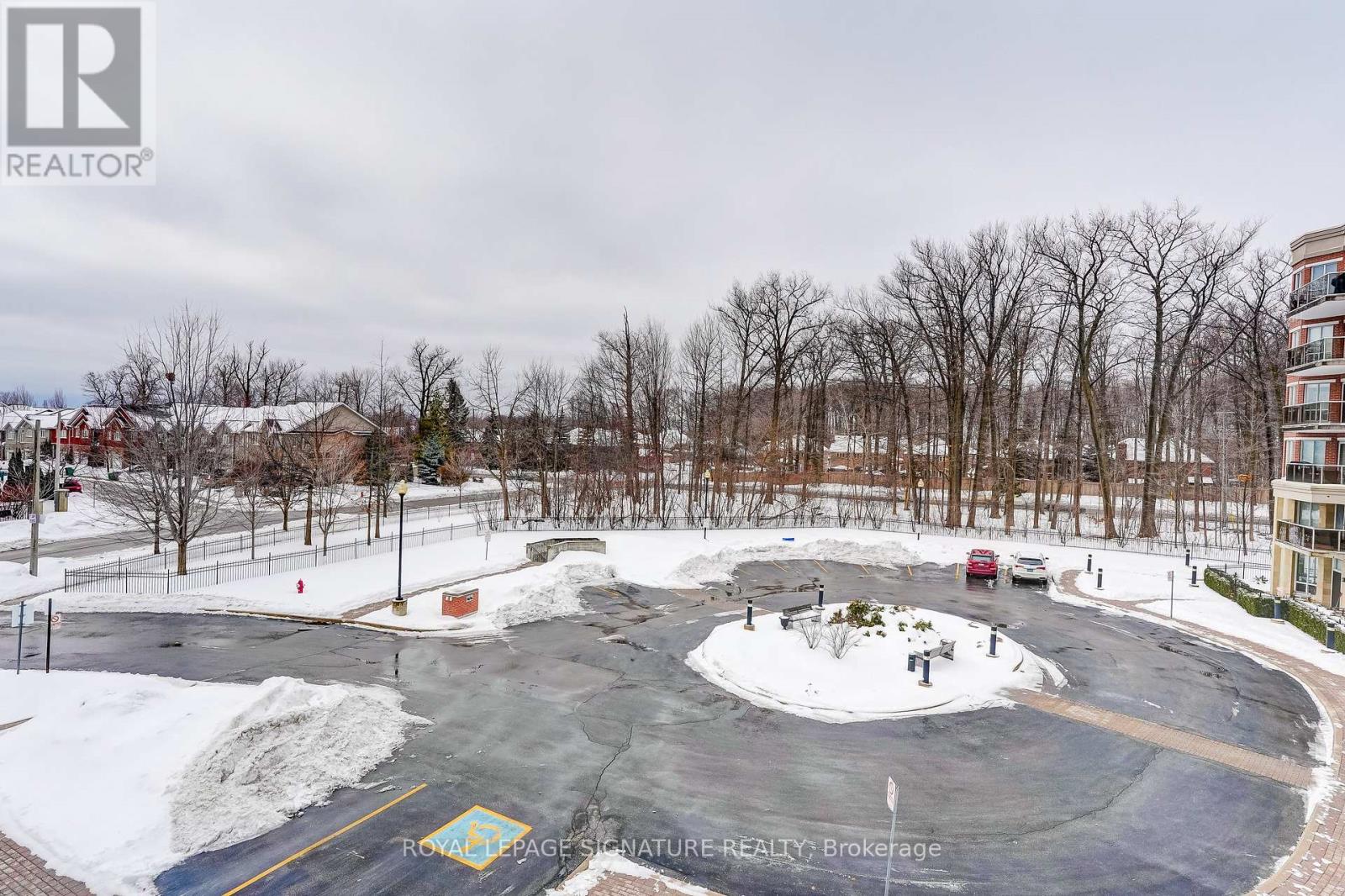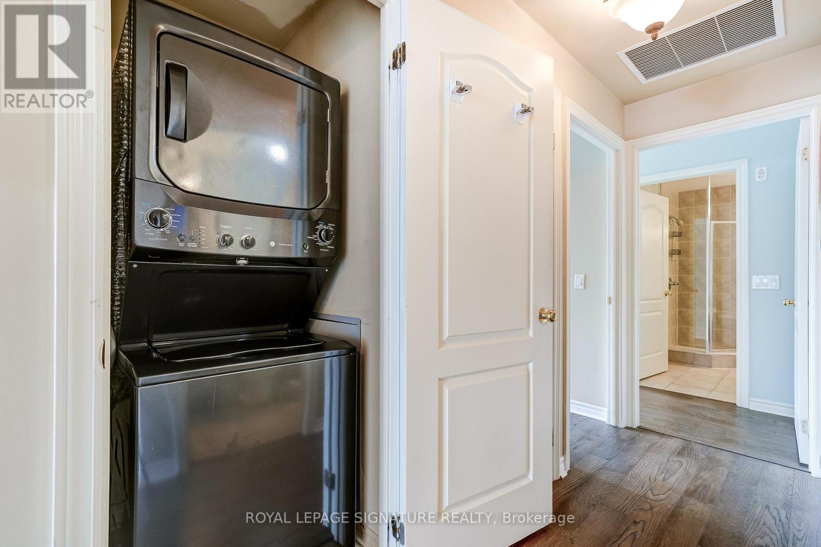 Welcome to this stunning corner suite approximately 1,238 sq. ft. in the upscale Woods End Condominiums, a well-maintained low-rise building. This original-owner home has been meticulously cared for and is surrounded by mature trees, providing privacy along with desirable south and west facing exposures. The Building backs onto green space. The open-concept layout features spacious living, family and dining areas seamlessly connected to the kitchen-ideal for both everyday living and entertaining. The kitchen is equipped with granite countertops, pot lights, under-mount lighting, stainless steel appliances and a centre island. The dining area features a walk-out to a private balcony with a gas line for BBQs. All electric blinds are conveniently operated by remote. The suite includes two generously sized bedrooms and two bathrooms. The primary bedroom features a walk-in closet and a 4-piece ensuite with a separate shower and bathtub. The second bathroom is a 3-piece. Additional highlights include two side-by-side parking spaces located steps to the entrance and one large locker. Building amenities include concierge/security services, visitor parking, guest suites, a party/meeting room and an exercise room. Ideally located near public transit, shops, greenbelt and conservation areas, recreation centres, golf and parks. A must-see home in a highly desirable community-don't miss your opportunity to make it yours! (id:4555)