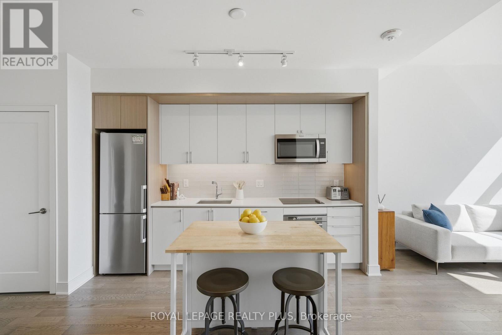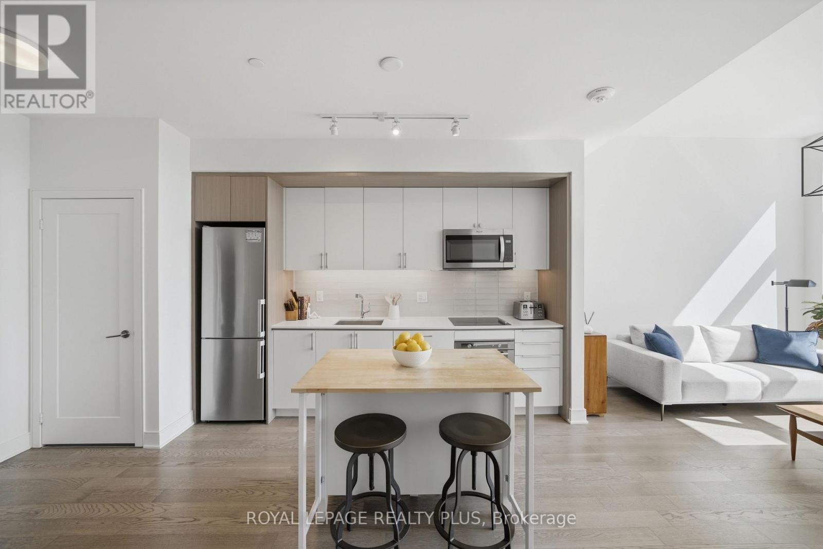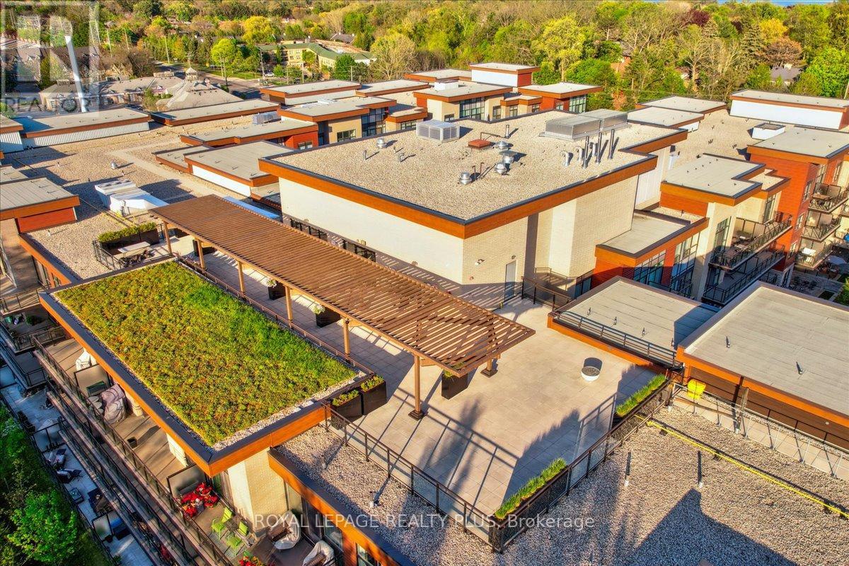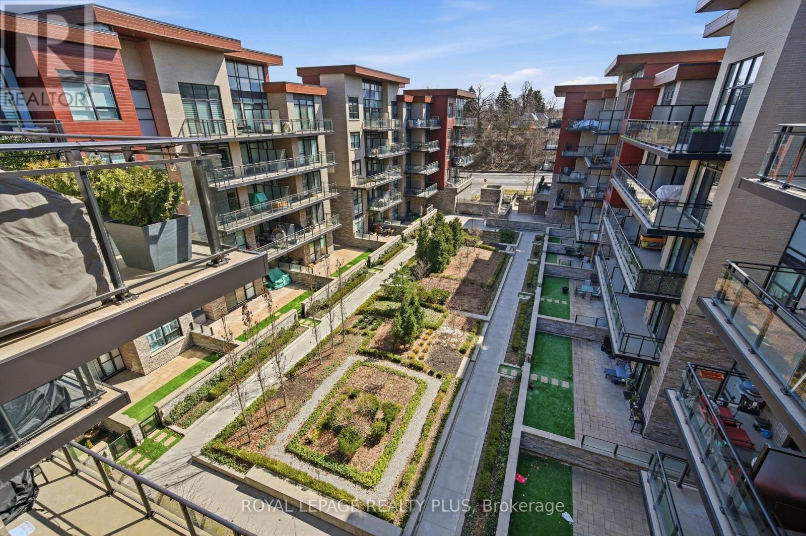 Welcome to penthouse living without the million-dollar price tag! Perched on the top floor of The Craftsman, this bright south-facing suite offers a rare opportunity to enjoy the privacy, natural light, and elevated feel of penthouse-level living at a far more accessible price point. Overlooking the quiet courtyard below, the space feels peaceful and tucked away, while soaring 12-foot ceilings in the living room create an openness that's hard to find in this price range. Inside, 5-inch engineered hardwood floors run throughout, complementing a clean, modern interior designed for both comfort and function. The kitchen is equipped with integrated stainless steel Whirlpool appliances and offers a practical layout that works just as well for everyday living as it does for entertaining. A separate den adds valuable flexibility for working from home, reading, or creating a dedicated space away from the main living area, and the suite is complemented by a modern 4-piece bath finished with premium Kohler fixtures. Positioned on the penthouse level with no neighbours above, this is the kind of home that lives differently from the typical condo, and it offers exceptional day-to-day convenience, located just steps from the elevator and close to the underground parking spot. The Craftsman is one of South Mississauga's most architecturally distinctive and community-oriented residences, known for its Frank Lloyd Wright-inspired design, beautifully landscaped courtyards, and premium amenities. Located in the heart of Clarkson Village, you're just a short walk to local cafés, shops, restaurants, and minutes from Clarkson GO for an easy commute downtown. Nearby highlights include Jack Darling Park, Rattray Marsh, waterfront trails, and countless neighbourhood amenities that make this one of the city's most desirable places to call home. Suite 440 is a rare chance to experience penthouse living in one of Clarkson's most sought-after buildings, for far less than you'd expect. (id:4555)