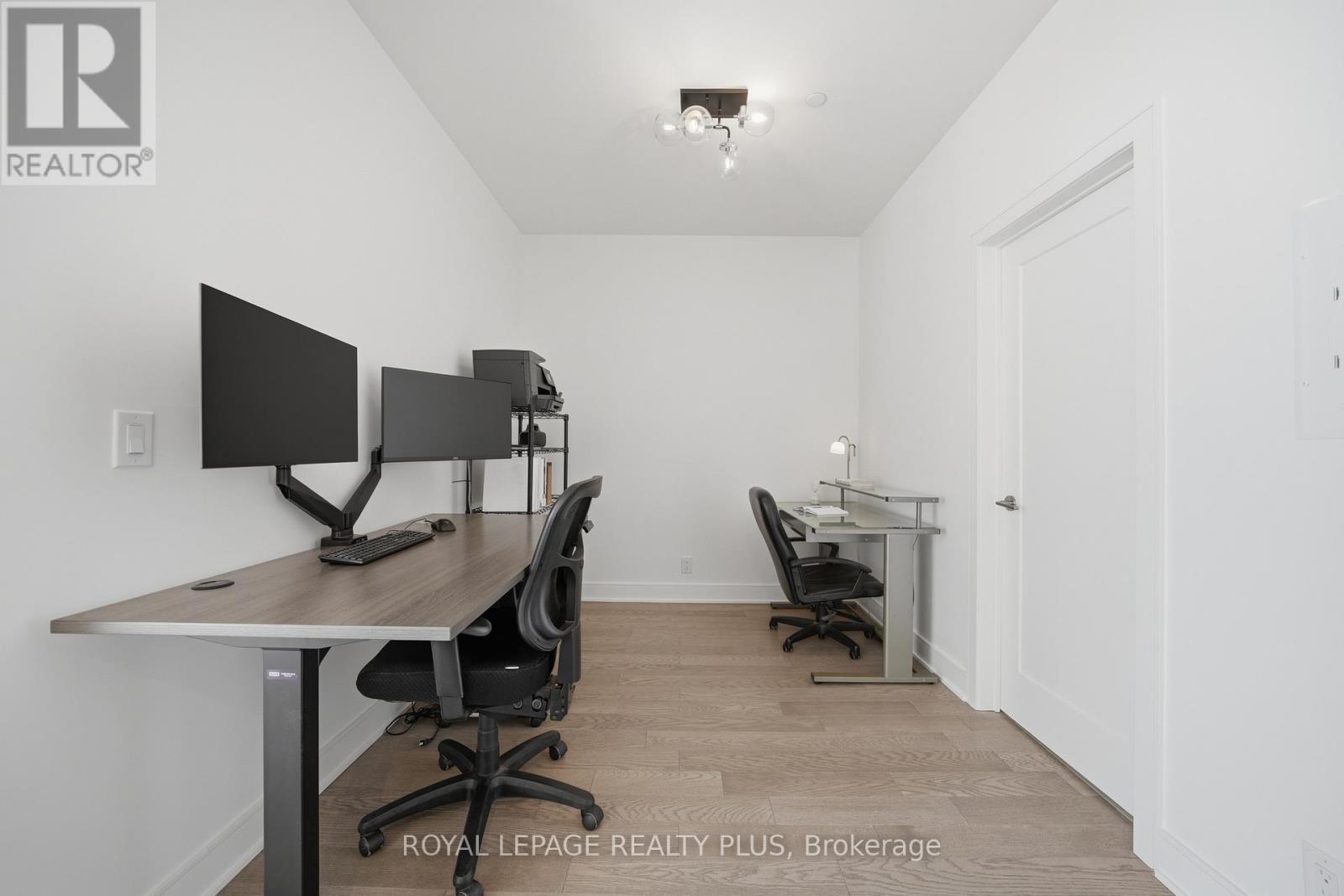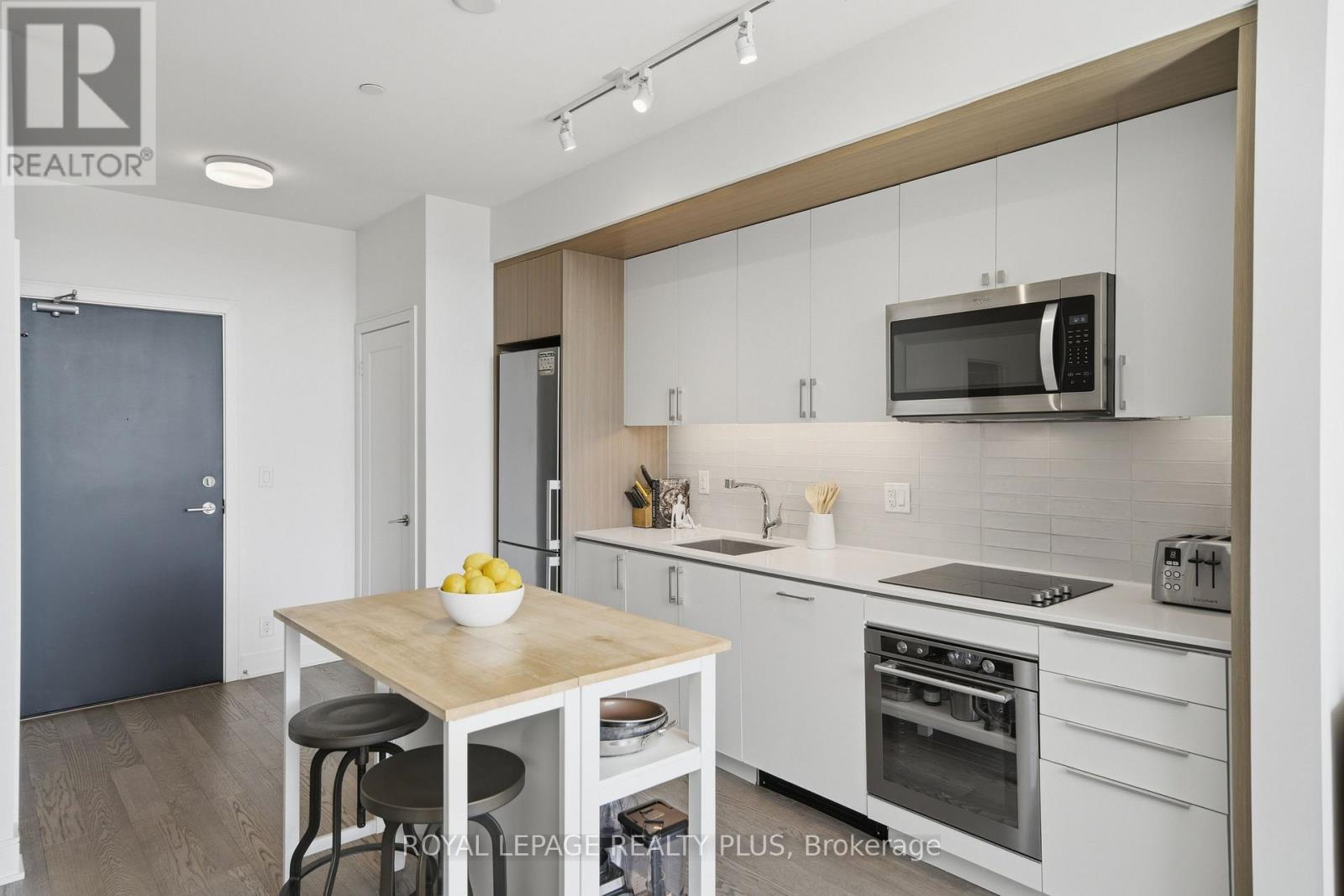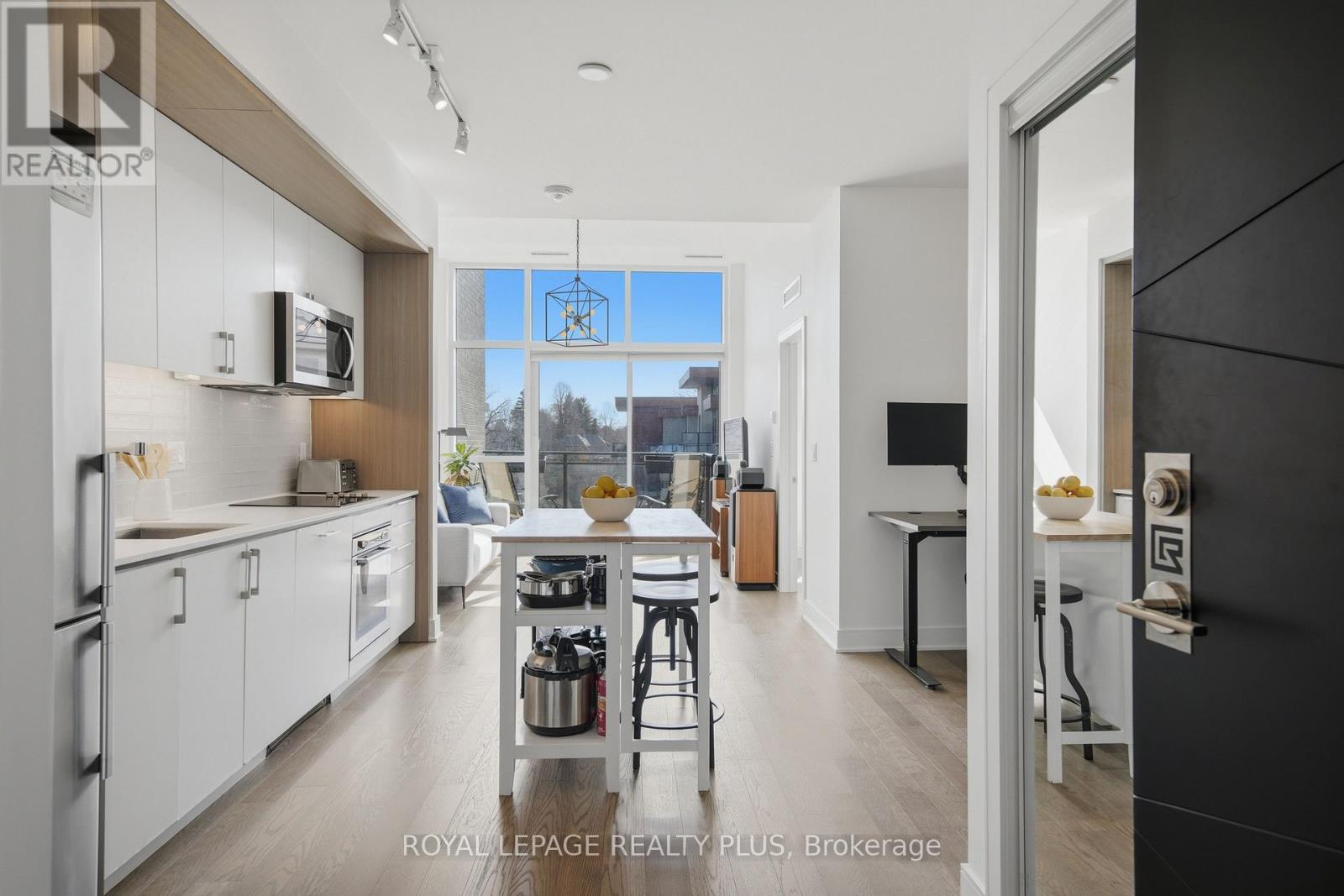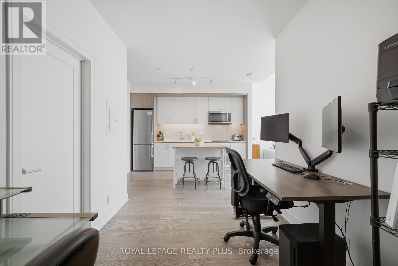 Welcome to penthouse living without the million-dollar price tag! Perched on the top floor of The Craftsman, this bright south-facing suite offers a rare opportunity to enjoy the privacy, natural light, and elevated feel of penthouse-level living at a far more accessible price point. Overlooking the quiet courtyard below, the space feels peaceful and tucked away, while soaring 12-foot ceilings in the living room create an openness that's hard to find in this price range. Inside, 5-inch engineered hardwood floors run throughout, complementing a clean, modern interior designed for both comfort and function. The kitchen is equipped with integrated stainless steel Whirlpool appliances and offers a practical layout that works just as well for everyday living as it does for entertaining. A separate den adds valuable flexibility for working from home, reading, or creating a dedicated space away from the main living area, and the suite is complemented by a modern 4-piece bath finished with premium Kohler fixtures. Positioned on the penthouse level with no neighbours above, this is the kind of home that lives differently from the typical condo, and it offers exceptional day-to-day convenience, located just steps from the elevator and close to the underground parking spot. The Craftsman is one of South Mississauga's most architecturally distinctive and community-oriented residences, known for its Frank Lloyd Wright-inspired design, beautifully landscaped courtyards, and premium amenities. Located in the heart of Clarkson Village, you're just a short walk to local cafés, shops, restaurants, and minutes from Clarkson GO for an easy commute downtown. Nearby highlights include Jack Darling Park, Rattray Marsh, waterfront trails, and countless neighbourhood amenities that make this one of the city's most desirable places to call home. Suite 440 is a rare chance to experience penthouse living in one of Clarkson's most sought-after buildings, for far less than you'd expect. (id:4555)