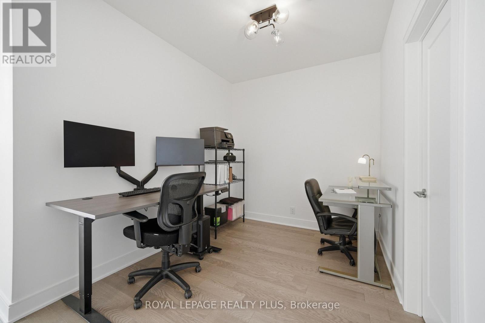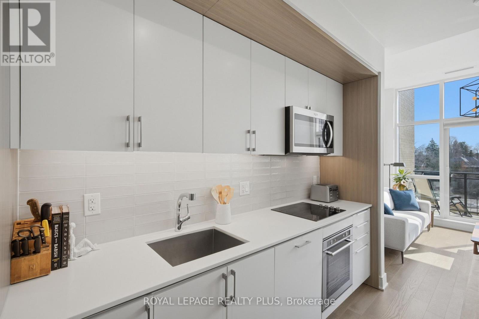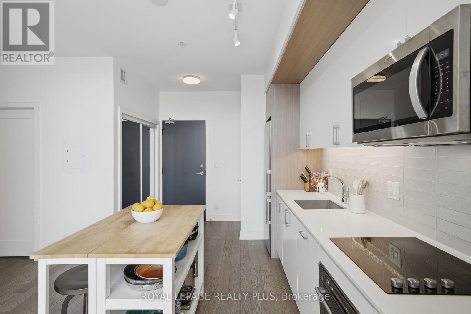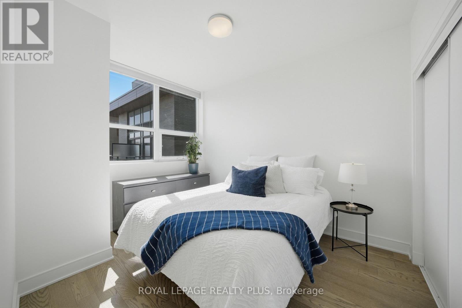 Welcome to penthouse living without the million-dollar price tag! Perched on the top floor of The Craftsman, this bright south-facing suite offers a rare opportunity to enjoy the privacy, natural light, and elevated feel of penthouse-level living at a far more accessible price point. Overlooking the quiet courtyard below, the space feels peaceful and tucked away, while soaring 12-foot ceilings in the living room create an openness that's hard to find in this price range. Inside, 5-inch engineered hardwood floors run throughout, complementing a clean, modern interior designed for both comfort and function. The kitchen is equipped with integrated stainless steel Whirlpool appliances and offers a practical layout that works just as well for everyday living as it does for entertaining. A separate den adds valuable flexibility for working from home, reading, or creating a dedicated space away from the main living area, and the suite is complemented by a modern 4-piece bath finished with premium Kohler fixtures. Positioned on the penthouse level with no neighbours above, this is the kind of home that lives differently from the typical condo, and it offers exceptional day-to-day convenience, located just steps from the elevator and close to the underground parking spot. The Craftsman is one of South Mississauga's most architecturally distinctive and community-oriented residences, known for its Frank Lloyd Wright-inspired design, beautifully landscaped courtyards, and premium amenities. Located in the heart of Clarkson Village, you're just a short walk to local cafés, shops, restaurants, and minutes from Clarkson GO for an easy commute downtown. Nearby highlights include Jack Darling Park, Rattray Marsh, waterfront trails, and countless neighbourhood amenities that make this one of the city's most desirable places to call home. Suite 440 is a rare chance to experience penthouse living in one of Clarkson's most sought-after buildings, for far less than you'd expect. (id:4555)