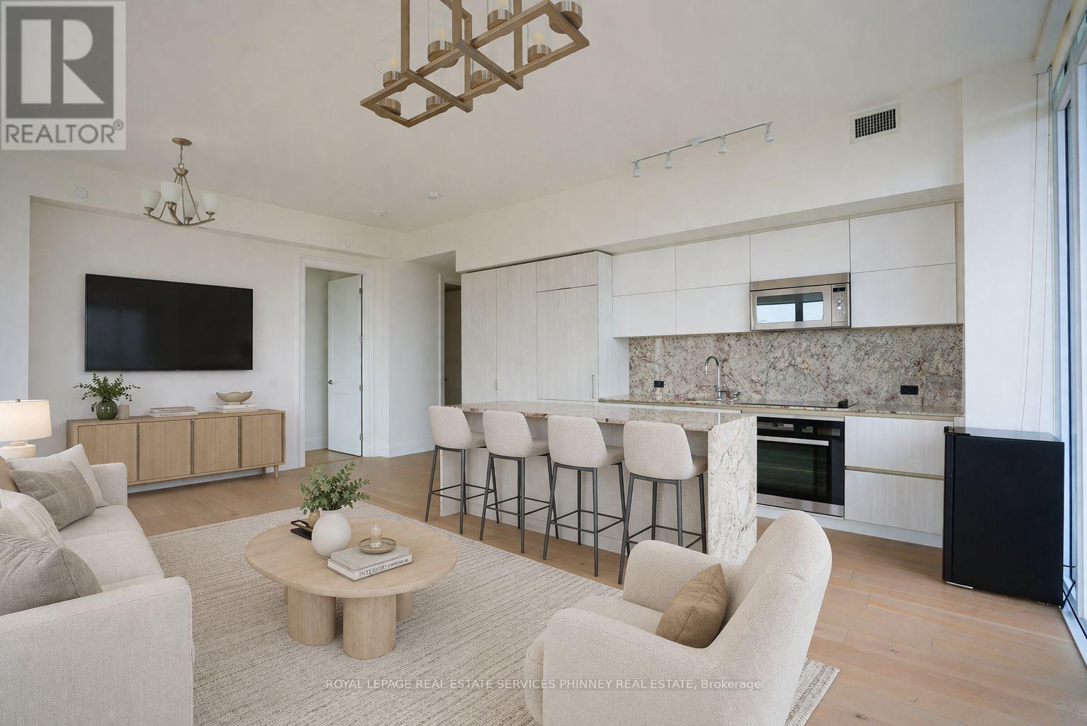 Location. Location. Location. Welcome to this stunning lower penthouse condo in the heart of Port Credit. Boasting over 1,200 sq. ft. of beautifully upgraded living space, this bright and airy suite features 9ft ceilings and expansive south, west and east facing exposures, flooding the home with natural light throughout the day. Step outside onto the wrap around balcony and enjoy panoramic views perfect for morning coffee, evening sunsets, or entertaining guests. This well designed layout includes two spacious bedrooms plus a versatile den, ideal for a home office or guest space, along with two bathrooms with modern finishes. The open concept living and dining area connects to a contemporary kitchen, making it perfect for both everyday living and hosting. With additional storage, in-suite laundry, one parking and one locker. Located just steps from the GO Train and amenities including boutique shopping, trendy restaurants, scenic lakefront trails, and the lively Port Credit waterfront community. (id:4555)
