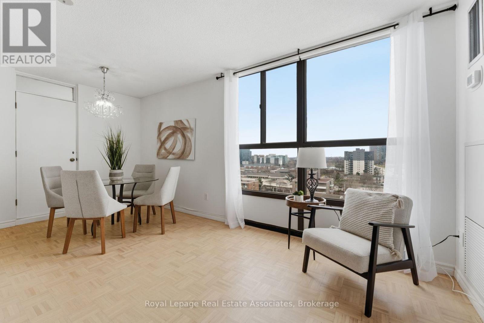 With 1265 square feet, 2 large bedrooms and a huge den graced with double French doors, this spacious and bright unit is just what you've been looking for! The kitchen features modern white cabinetry, stainless steel appliances, ceramic floors, tile backsplash, double sink and lots of storage. Perfect for creating those wonderful holiday meals! The open concept living/dining space features large windows for lots of natural light, warm parquet floors and a walkout to the lovely balcony - a wonderful place to relax at the end of the day. The bedrooms include hardwood floors, big windows and large closets and the oversize den can easily serve as a third bedroom. Both washrooms have been updated with modern finishes, soft-close cabinets and ceramic flooring. There's an ensuite storage room and a massive ensuite laundry room with even more storage space! Public Transit options are plentiful with nearby Cooksville GO, numerous bus routes and the upcoming Hurontario LRT. Easy access to the QEW or 403 and just 16 minutes to Pearson Airport. Trillium Hospital is close by and there are fantastic shopping and restaurant options all along Dundas and Hurontario. Explore the numerous parks and trails in the vicinity, pop over to Cooksville Library for a good read or enjoy skating, fitness and swimming at Mississauga Valley Community Centre. This neighbourhood has everything you and your family need! (id:4555)
