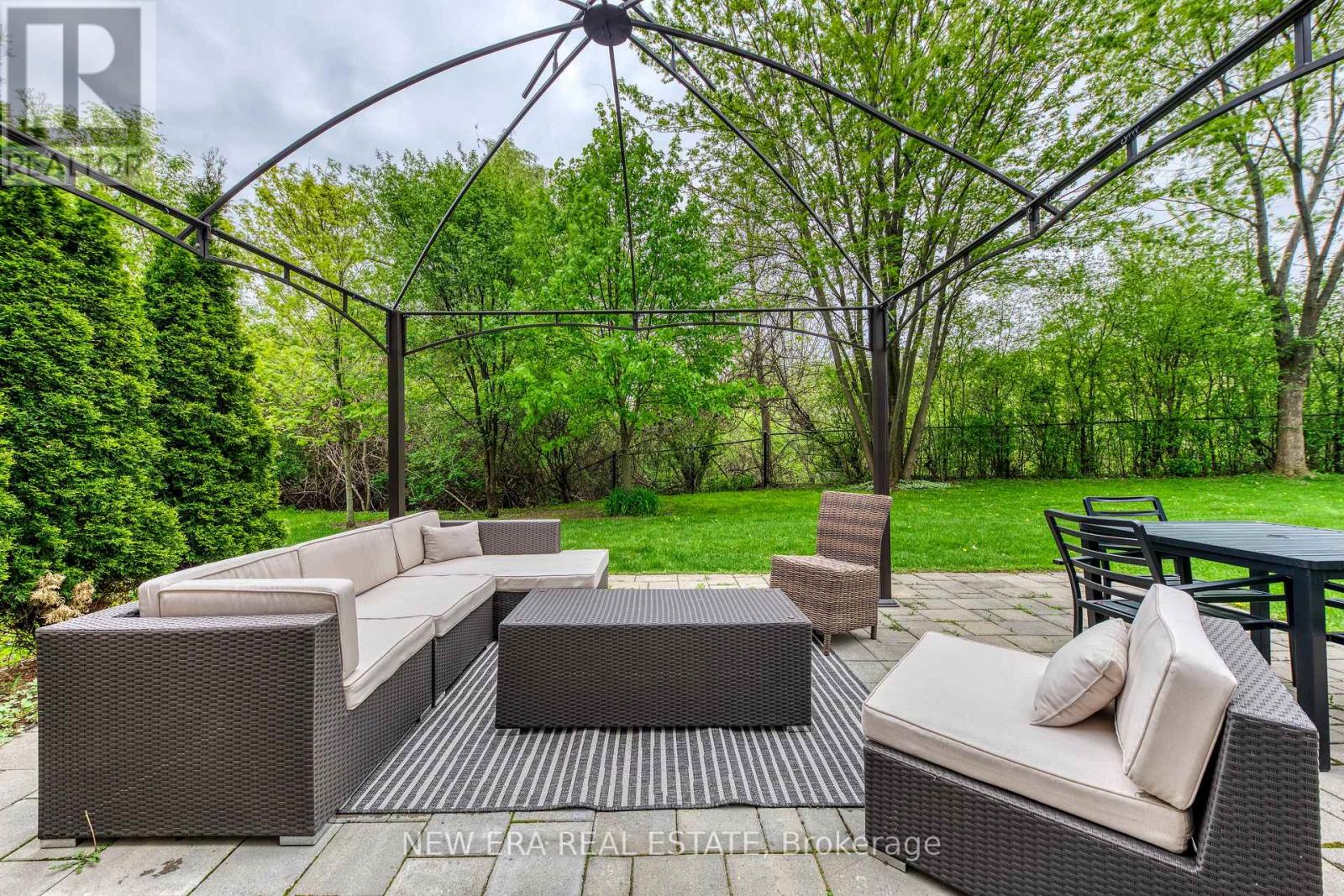 Welcome to this stunning end-unit townhouse situated on a premium ravine lot. This property is located in the desirable Meadowvale Village conveniently located close to all amenities, parks, walking trails, Meadowvale Conservation, Hwy 401, 407, public transit, Meadowvale GO, and minutes to Heartland Town Centre. This two-storey, newly renovated home has been beautifully updated and is in a family-friendly peaceful neighbourhood backing onto Levi Creek. The main floor open-concept design features a modern kitchen with quartz countertops, breakfast bar, and stainless steel appliances. The main living and dining area features hardwood floors, smooth ceilings, pot lights, modern light fixtures and large windows providing an abundance of natural light.This 3 bedroom, 3 bathroom home has a spacious second floor with 6" engineered oak hardwood flooring throughout, custom oak staircase with wrought iron pickets, and custom built-in closets are just a few of this home's incredible features. The spacious primary bedroom feels like a true retreat with a walk-in closet and a 2nd custom closet for ample storage, a spa-like ensuite with an oversized shower with rain-fall shower head. The other two bedrooms boast a generous size and custom closets. The basement is finished with a built-in wet bar, mini fridge, and plenty of storage. Walk-out access to an expansive, private backyard with a large stone patio area and gas line for BBQ. The picturesque views and privacy of this property makes this home spectacular for entertaining. Very low maintenance fees include lawn maintenance, snow removal, common areas, parking and insurance. A/C & Humidifier ('24), Newer furnace, Energy Efficient refrigerator ('24) (id:4555)