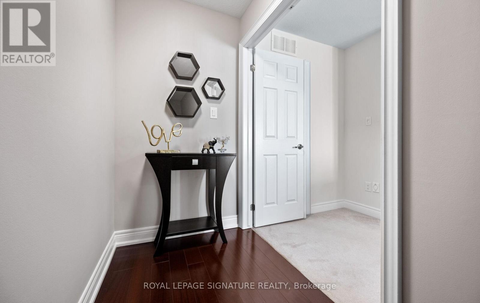 Tucked into a quiet, beautifully maintained enclave, this executive townhome offers a rare opportunity to own a spacious, beautifully renovated 2100 sq ft+ residence loaded with upgrades where thoughtful design meets effortless living. Built in 2011 and extensively upgraded over the past 7 years, this home delivers refined finishes, functional space, and a true sense of ease. A welcoming tiled foyer offers both style and practicality with walkout to the garage and additional storage space. The main level showcases engineered hardwood flooring, solid oak stairs, and a cohesive designer aesthetic. The kitchen and great room are enhanced by pot lights throughout, creating a warm, elevated ambiance. At the heart of the home, custom solid wood bookshelves, an electric fireplace, and a live wood mantel create a stunning focal point. The spacious kitchen features a large island, ample cabinetry, a dedicated dining area, and a new stainless steel French door refrigerator (2025). Walkout to a private rear patio extends your living space outdoors. The layout flows seamlessly into a generous formal dining area, ideal for entertaining. Upstairs, three generously sized bedrooms offer beautiful natural outlooks, including two with walk-in closets. The primary suite is a true retreat on its own level with walk-in closet, spa-inspired ensuite, and private balcony with open sky exposure and distant city views. Both full bathrooms are professionally finished with a hotel-inspired aesthetic. The versatile ground level offers potential for a home office, gym, or guest space with rough-in plumbing. Private backyard, central vacuum, water softener, and excellent storage throughout. Professionally managed community with low maintenance fees, landscaping, and snow removal. Steps to transit, close to GO Station, major highways, Streetsville, Erin Mills Town Centre and Square One. Located in a top-rated school district including French immersion options. (id:4555)