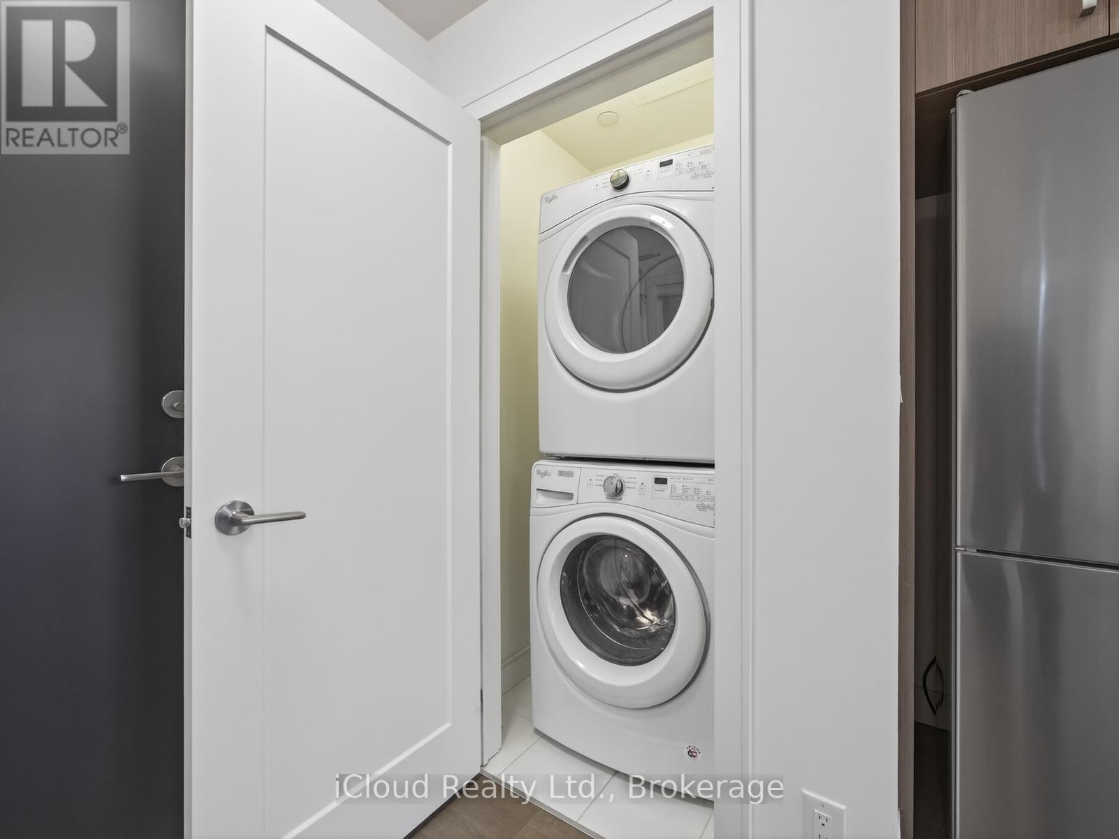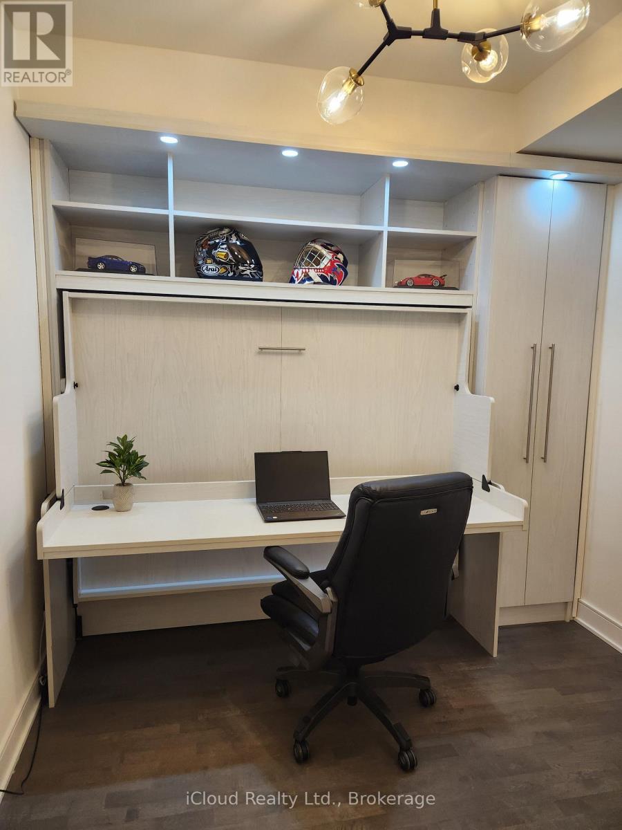 Welcome to The Craftsman, where luxury & tranquility are combined to give you a refined living experience in the prestigious Clarkson Village that is surrounded by lush parklands, estate communities, and close proximity to the waterfront, and is backed by a first class management team & 24 hour concierge to cater to your every need. Now let's step into Unit 354 where you'll be greeted by a functional 728 square foot open concept layout that equally accommodates daily living & entertaining and contains engineered hardwood floors throughout. The sleek kitchen comes fully equipped with built-in stainless steel appliances, quartz counters, full backsplash, and an island with additional storage. The spacious primary bedroom features a California walk-in closet and more than enough space for all your bedroom furniture. Calling the plus one a den doesn't do it justice, as the flexibility of this space offers many options - it can easily be used as a 2nd bedroom with the existing murphy bed + built-in closet that also doubles as a full desk when closed upright, making for the perfect home office. Laundry is a breeze with the full-sized, front load washer & dryer. And when you need some fresh air, just step out onto your oversized west facing balcony that overlooks the picturesque and professionally manicured courtyard. Parking is next to the elevator and the locker is located on the unit's floor for maximum convenience. Roller blinds throughout. Premium building amenities include a gym & yoga studio, pet washing station, guest suites, party room, library, and gorgeous rooftop terrace with barbecues. Located in the Lorne Park school district. Close to the QEW and Clarkson GO Station. Option to come furnished. (id:4555)