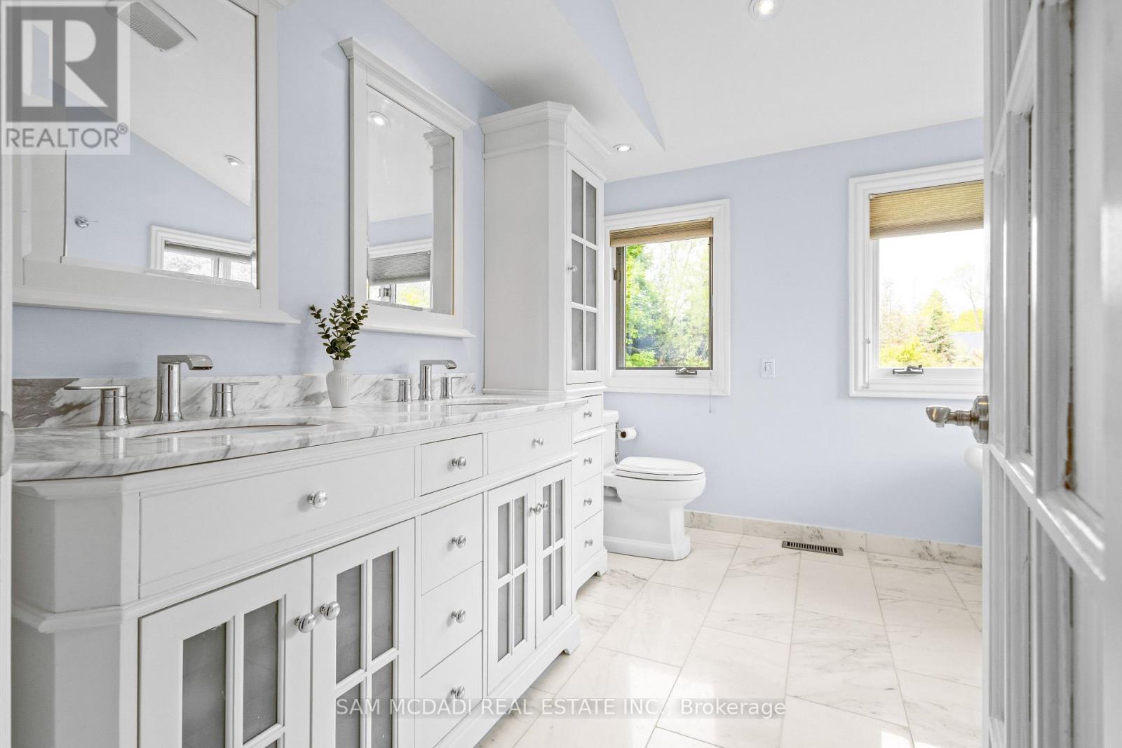Welcome to your dream home in the heart of Clarkson Village, where timeless elegance meets modern living. Perfectly situated on a sprawling 200 x 200 ft lot where you can enjoy the very best of Clarkson Village & Port Credit's local amenities including fine dining, boutique shopping, amazing public & private schools, waterfront parks, the Rattray Marsh, the Go Station & an easy commute to Toronto via the QEW! Inside, you're immediately met by an upgraded interior w/ approx 5,000 SF of living space that radiates warmth & sophistication. The open concept floor plan allows for seamless entertainment w/ loved ones & is anchored by gleaming hardwood floors, pot lights & expansive windows that bathe this home in an abundance of natural light. Step into your gourmet chef's kitchen ft Bosch b/i appliances & ample upper and lower cabinetry space. The double sided gas fireplace sets the perfect ambiance in both your dining & great room, elevated w/ cathedral ceilings & picture windows that overlook the mesmerizing backyard oasis. Ascend upstairs, where you'll find 5 spacious bedrooms thoughtfully designed for large families or multi-generational living, with 1 junior suite ft a 3pc ensuite. The Owners suite is your private sanctuary w/ a walk-in closet for all of your prized possessions, a gas fireplace & a lovely 5pc ensuite perfect for unwinding after a long day. The partially finished basement extends your sq ft w/ a rec room, a laundry room, a guest bedroom or office space & some unfinished space to create a home spa, a movie theatre, a gym, etc - the possibilities are endless! Outside, the backyard is a nature lover's paradise w/ mature trees encircling this home for ultimate privacy! Enjoy alfresco dining on the wooden deck or gather around the stone patio fire pit and enjoy an evening glass of wine. This is more than just a home - it's a private retreat for loved ones to create everlasting memories in. (id:4555)