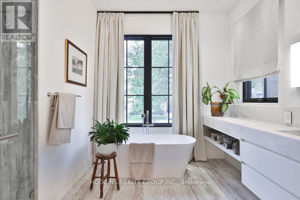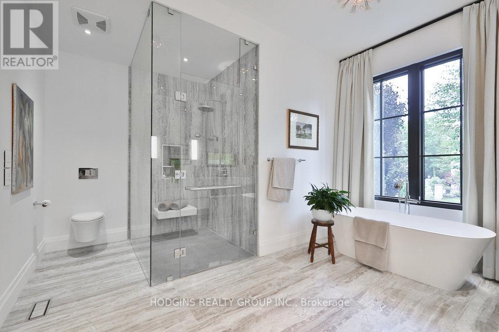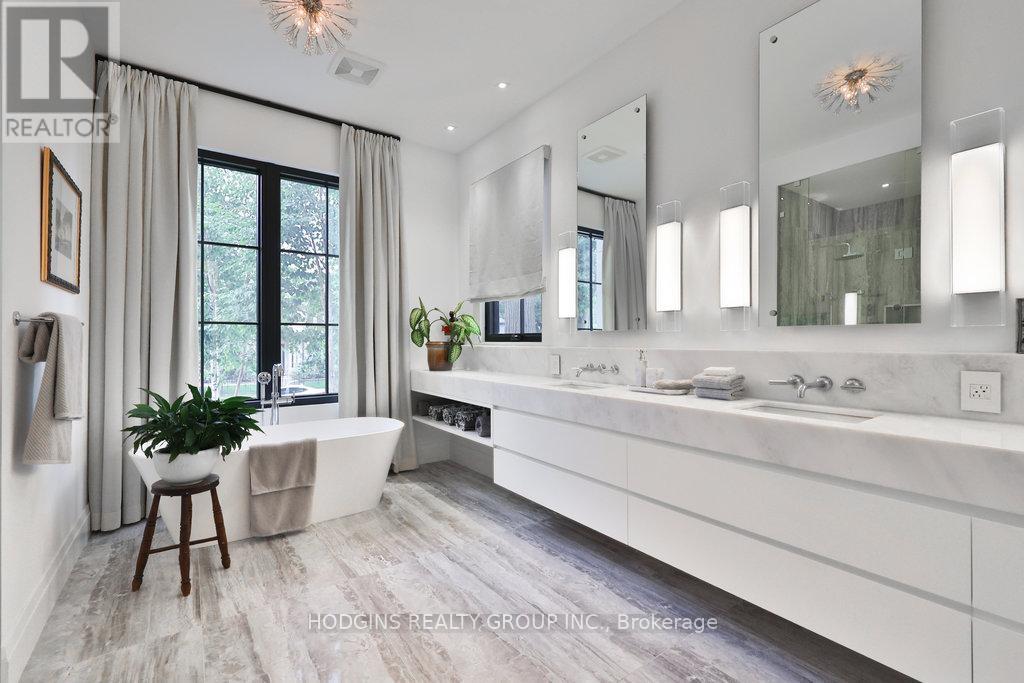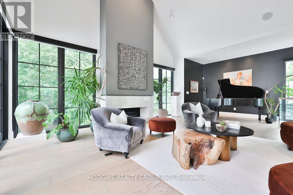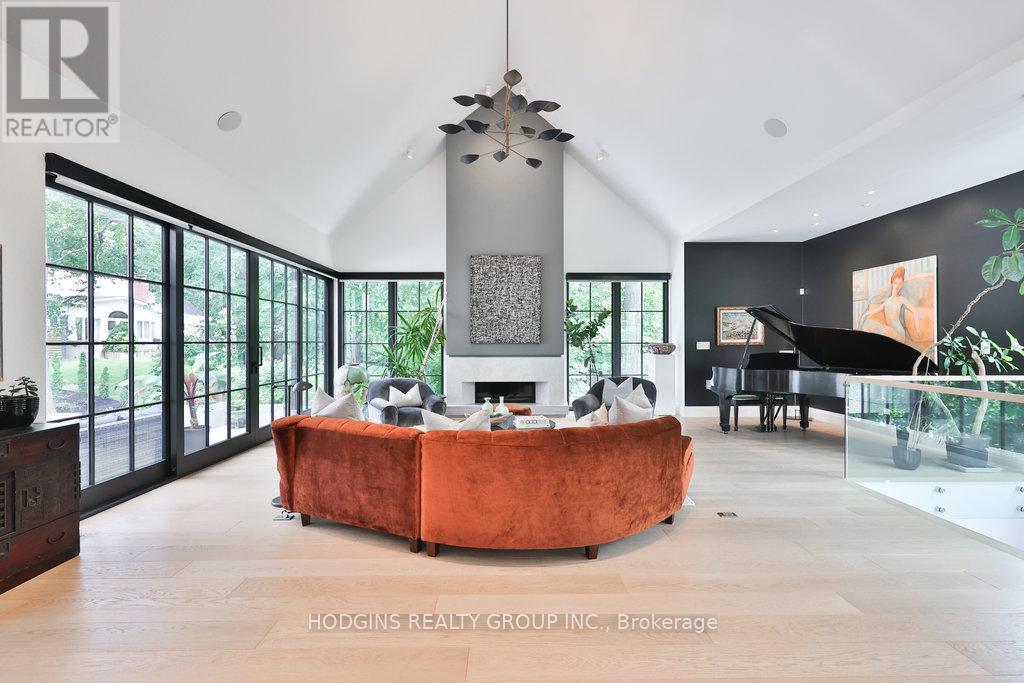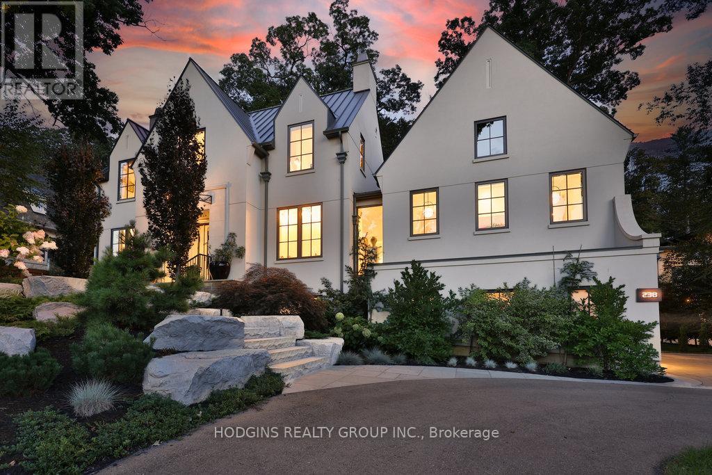 Custom Masterpiece in Prestigious Mineola West by architect Lauren Boyer. A residence of distinction where design, craftsmanship & setting converge. Main floor Primary Bedroom retreat anchors a flowing layout with heated white oak floors, dramatic ceilings and expansive windows framing wooded views. Gourmet kitchen finished in exquisite Taj Mahal quartzite with oversized island, custom cabinetry, professional-grade appliances & separate prep kitchen and mudroom with laundry. The inspiring Great Room shares magnificent open vaulted ceilings with the kitchen, and offers a relaxing lounge vibe with vibrant fireplace and grand piano niche/library. Walkout to entertainers terrace complete with outdoor kitchen and gas grill. Bespoke entry doors by Brenlo bring you to elegant dining and living spaces with curated lighting by Top Brass, and refined attention to every detail. The raised lower level features an expansive recreation lounge with heated floor and an additional bedroom/office with full bath, abundant storage, and a separate entrance. The second floor has an additional master suite, plus two more bedrooms, a full bath, laundry, and ample storage. Exterior features a stately & durable metal roof, in-ground sprinklers, Landscape architect Mark Pettes, lush mature gardens & sought-after circular drive. A rare blend of modern luxury & timeless architecture in one of South Mississauga's most coveted enclaves. Over 5500sf of luxury living space on premium 100ft frontage. Close to Kenollie Public School, a 5-minute walk to the Credit River, 10-minute walk to the Go Train, or a 20-minute walk to the lakefront. (id:4555)