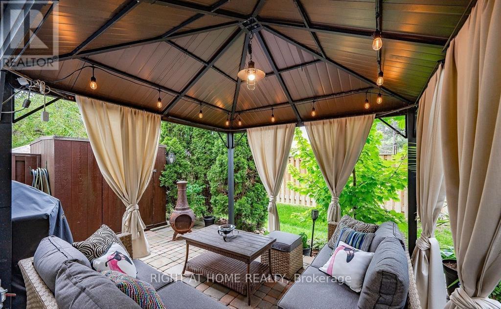 **Charming and Elegant Townhome in a Peaceful Cul-de-Sac**This beautiful townhome is tucked away in a quiet corner of the complex, backing onto the serene Hunter Greens Park. Upon entering, you'll be welcomed by a striking grand foyer and a stunning spiral staircase, setting an elegant tone throughout the home. The spacious, open layout is flooded with natural light thanks to large windows in every room. The sunny, eat-in kitchen makes cooking a delight, while the separate dining room is perfect for family meals or entertaining guests. The primary bedroom offers peaceful park views, a generous walk-in closet, and a convenient 2-piece ensuite. On the lower level, you'll find a cozy den with a walkout to your private back yard, excellent space for relaxation or hosting gatherings. The well-maintained complex also features a refreshing pool and park for residents to enjoy. With quick access to Highway 401 & 407, the GO train, top-rated schools, beautiful parks, and excellent shopping, this home offers both comfort and convenience. Electric Vehicle charger also recently installed in Garage! Don't miss out on this fantastic opportunity! (id:4555)