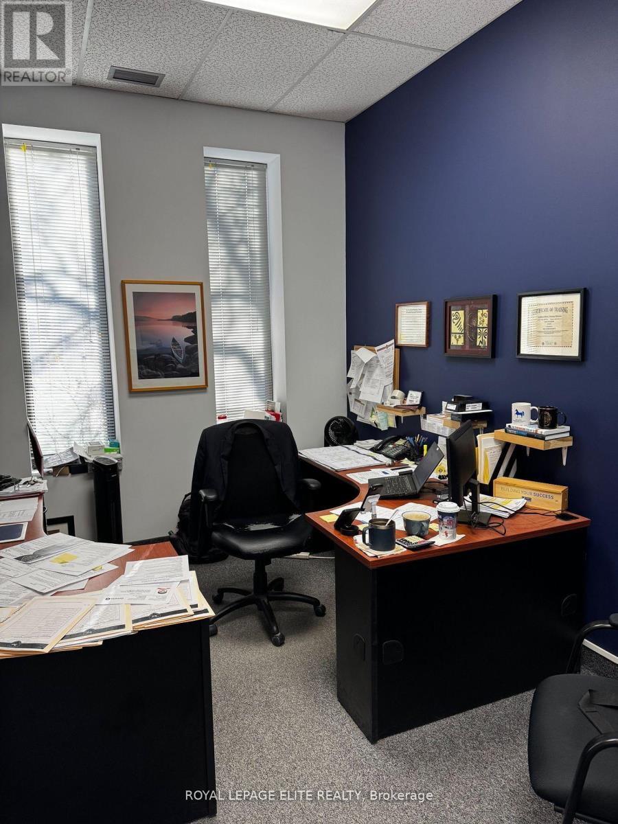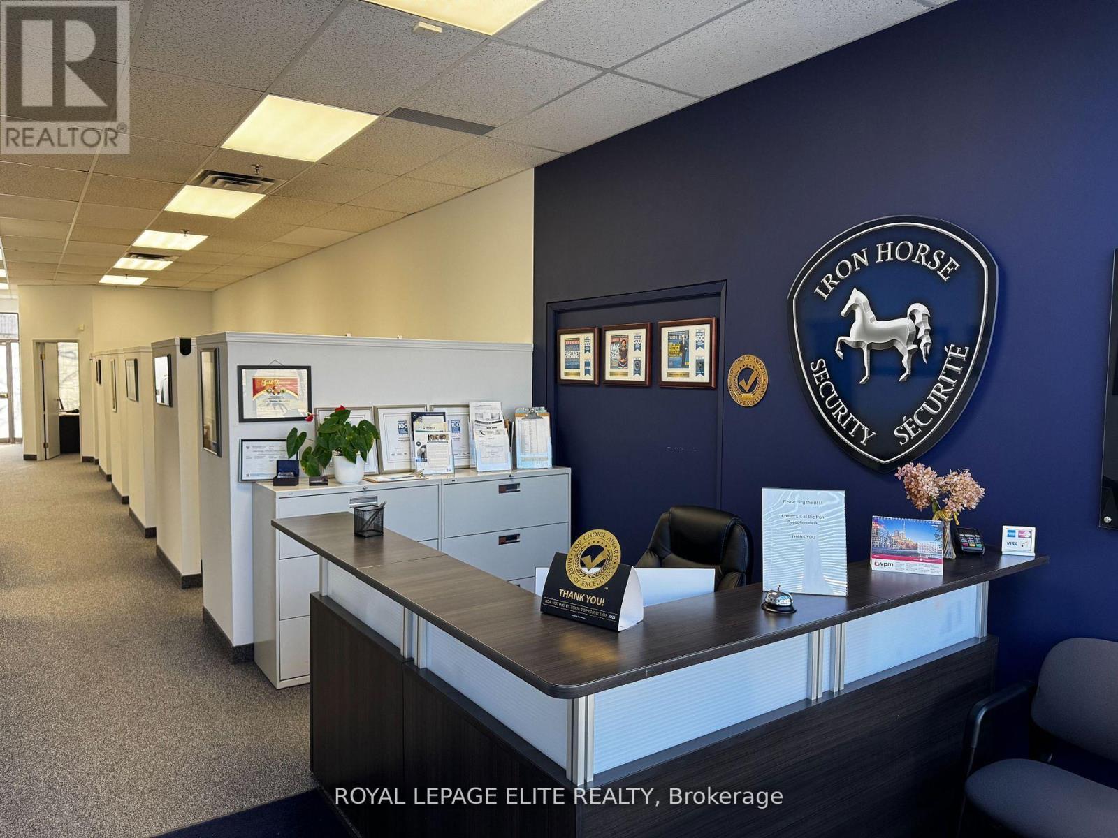 This exceptional front unit offers outstanding visibility along with dedicated parking and a beautifully maintained green space featuring a gazebo. With unmatched access to Highways 401, 410, and 427, as well as Toronto Pearson Airport and the rapid Eglinton transit route, this location provides incredible convenience for staff and clients alike. Inside, the space includes a large boardroom, two private offices, two washrooms, a kitchenette, a professional reception area, and five additional open work areas that can function as offices or collaborative spaces. This layout is ideally suited for a variety of professional users such as lawyers, accountants, medical practitioners, IT firms, finance professionals, and more. (id:4555)