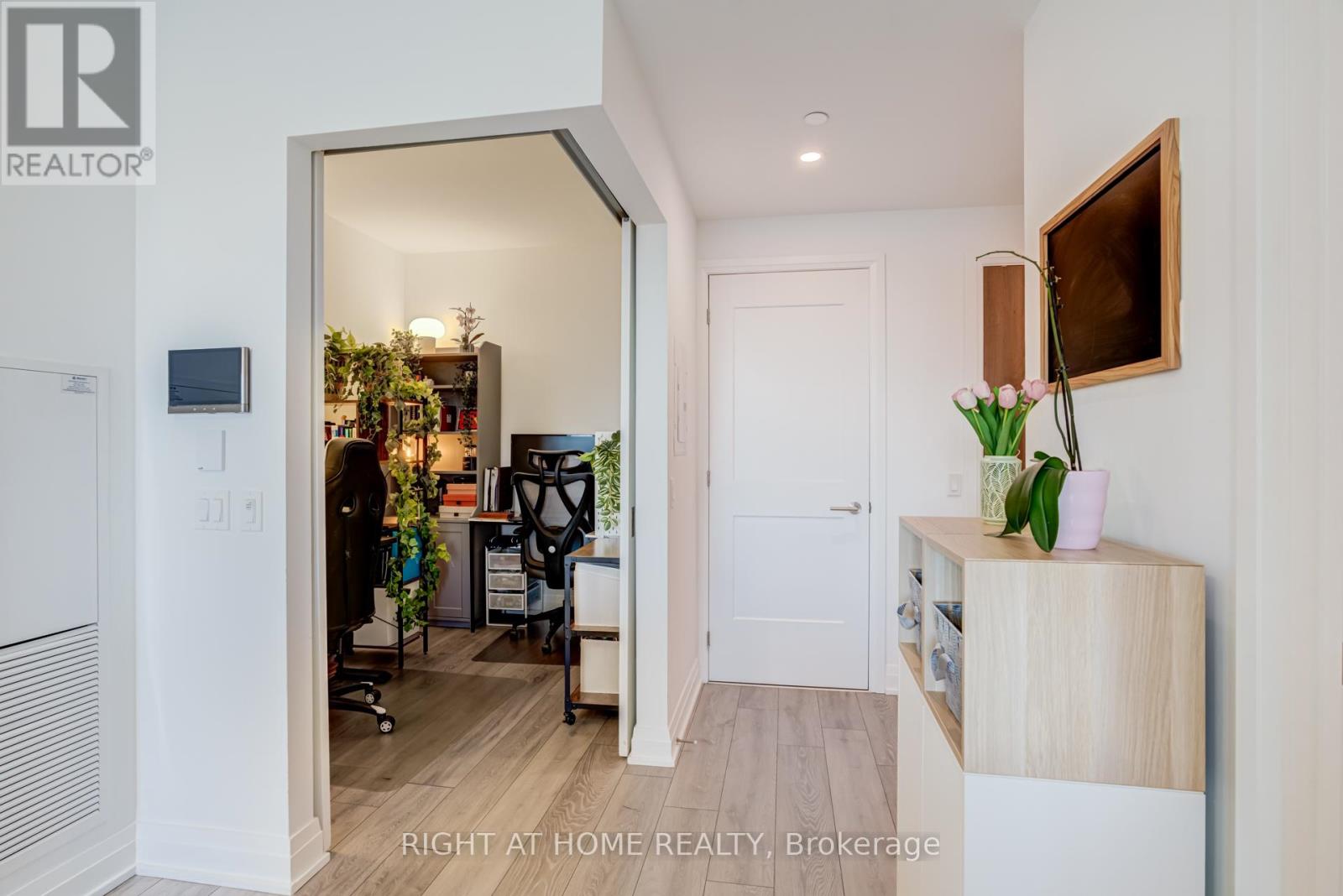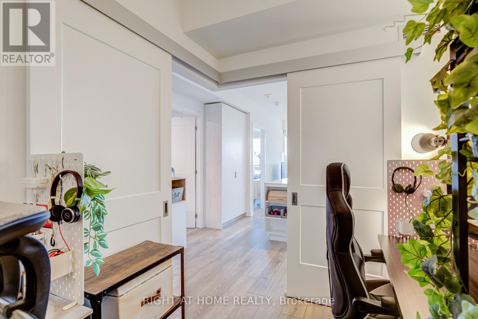 Welcome to TANU Condos in the heart of Port Credit! This bright and spacious 1+Den suite offers 676 sq ft of thoughtfully designed living space, complemented by a rare 80 sq ft west-facing terrace with beautiful lake and river views-perfect for relaxing or entertaining. Featuring 9 ft ceilings and a functional open-concept layout, this sun-filled unit seamlessly blends style and practicality. The modern kitchen is equipped with high-end appliances, including a Fulgur Milano stovetop and Blomberg dishwasher, along with a centre island ideal for hosting. The versatile den with sliding doors can easily function as a home office, nursery, or second bedroom. The spacious primary bedroom features a semi-ensuite 4-piece bath and two closets with custom California Closets organizers. Additional highlights include a security system, water shutoff sensor, and keyless entry via mobile app or fob. Parking and locker included, with the locker conveniently located next to the parking space. Residents enjoy access to premium amenities, including 24-hour concierge, state-of-the-art fitness centre, games room, party room, business centre, pet spa, and visitor parking. Maintenance fees include Rogers Xfinity fibre optic high-speed internet and cable. Ideally located in the highly sought-after Port Credit community, just steps to the GO Station, grocery stores, restaurants, parks, and scenic waterfront trails. A must-see opportunity in one of Mississauga's most vibrant neighbourhoods! (id:4555)