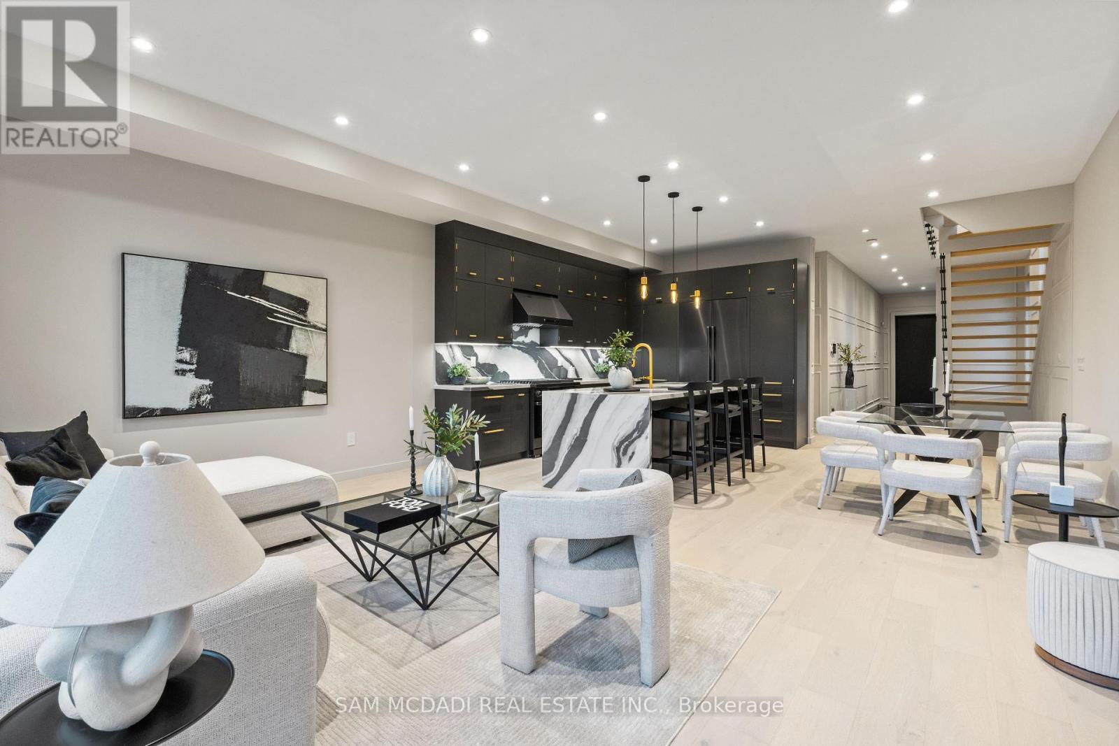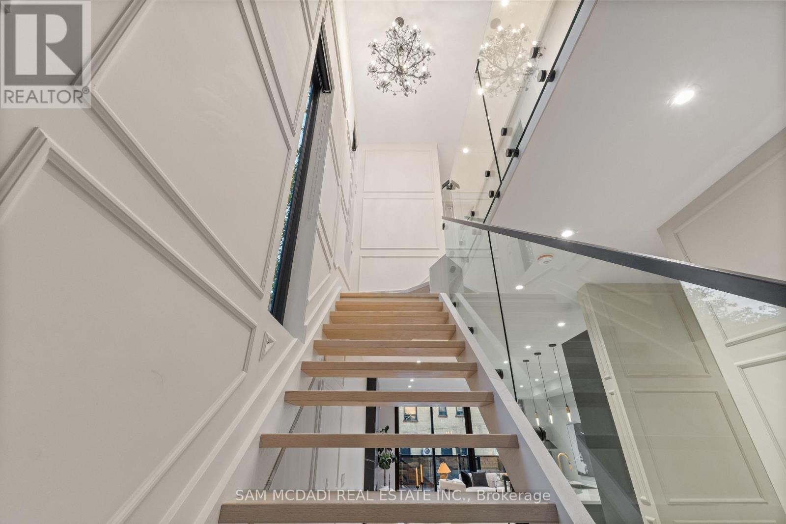 Step inside 1090 Ella Avenue and experience modern living at its finest in a custom-built home, designed for everyday comfort. Thoughtfully planned, this residence blends elegant design with premium finishes to create a space that is both stylish and functional. The exterior combines brick, metal panels, wood siding, and stucco, offering a glimpse of the architectural elegance carried throughout the interior. Inside, an open-concept layout is enhanced by 10-foot ceilings on the main floor, hardwood flooring throughout, and an open-tread staircase with sleek glass railings. At the heart of the home is a chef's kitchen featuring Italian hand-painted cabinets, an oversized island, exquisite countertops and backsplash, and top-of-the-line Dacor appliances. The kitchen flows seamlessly into the living room, where floor-to-ceiling windows, a gas fireplace, and a walk-out to the deck create a perfect space for entertaining or relaxing. Upstairs, you'll find three spacious bedrooms, including a stunning primary suite with a private balcony, a custom walk-in closet, heated flooring, and a spa-like 5-piece ensuite with a freestanding tub, double sinks, and a rainfall walk-in shower. The finished basement adds even more living space with a recreation room, den, ample storage, and a convenient walkout. Three luxurious bathrooms showcase expansive tile slabs, elegant vanities, and a clean, sophisticated design. Additional features include an automatic front door with fingerprint entry, automated window shades throughout, 9-foot ceilings on the upper and lower levels, and energy efficient aluminum European lift-and-slide windows built to last decades. Located in the desirable Lakeview community, this home is just minutes from Lake Ontario's waterfront, schools, parks, trails, and a community center, and provides quick access to the QEW. Elegant, stylish, and built for comfort - 1090 Ella Avenue is a modern masterpiece that truly has it all. (id:4555)