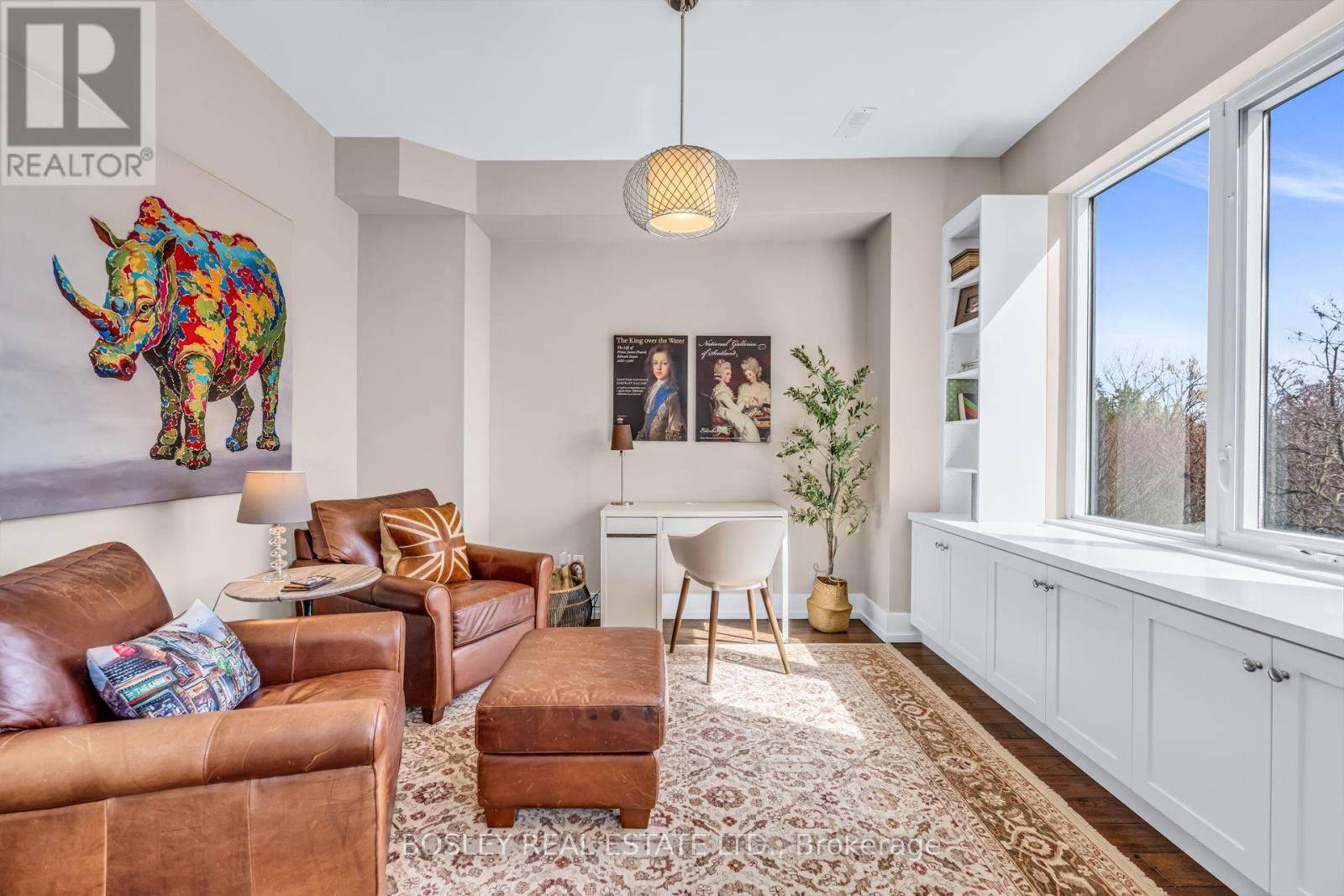 Truly the one you have been waiting for! Rarely available complex. LOCATION.. LIFESTYLE.. LUXURY. Welcome to this exquisite upscale contemporary 2017 well built Parklane townhome nestled in a private enclave of 18 properties facing west onto the renowned Rhododendron Gardens with year round seasonal nature views and steps to Lake Ontario trails and picturesque waterfront. It is a very quiet and peaceful setting. Sophisticated elegance abounds once you step inside from the generous front porch offering 2735 sf on 4 levels all accessed via an oak panelled elevator. This coveted sunshine filled model features soaring 9 and 10 foot ceilings, wide plank engineered hardwood , Scavolini tailor made kitchen with custom centre island, Miele appliances, granite counters, specialized tiled gas fireplace with built in cabinetry, heated flooring on the ground level, spacious Primary with his/hers closets and a 5 piece elegant marble ensuite and an open family room overlooking the gardens. A true highlight is the expansive top floor with 2nd bedroom, 4 piece ensuite, walk in closet and recreational space leading to a generous outdoor terrace with electric awning and incredible all season views of the park perfect for that early morning coffee or late day glass of wine to unwind. 3 further patios/porches add to the outside enjoyment equaling almost 500 sf exterior space for bbqing or reading your favorite novel. Delight in your own 2 car side by side attached garage with room for storage. All this with close proximity to dynamic and lively Port Credit Village..shops/dining/community events , transit and highways, Snug Harbour, GO station, hospitals and so much more. The Parklane community owners pride themselves on a well maintained complex offering visitor parking and a small common elements fee to cover landscaping and snow removal. Come see for yourself what a truly one of a kind home this is! Excellent home inspection and Status available! (id:4555)