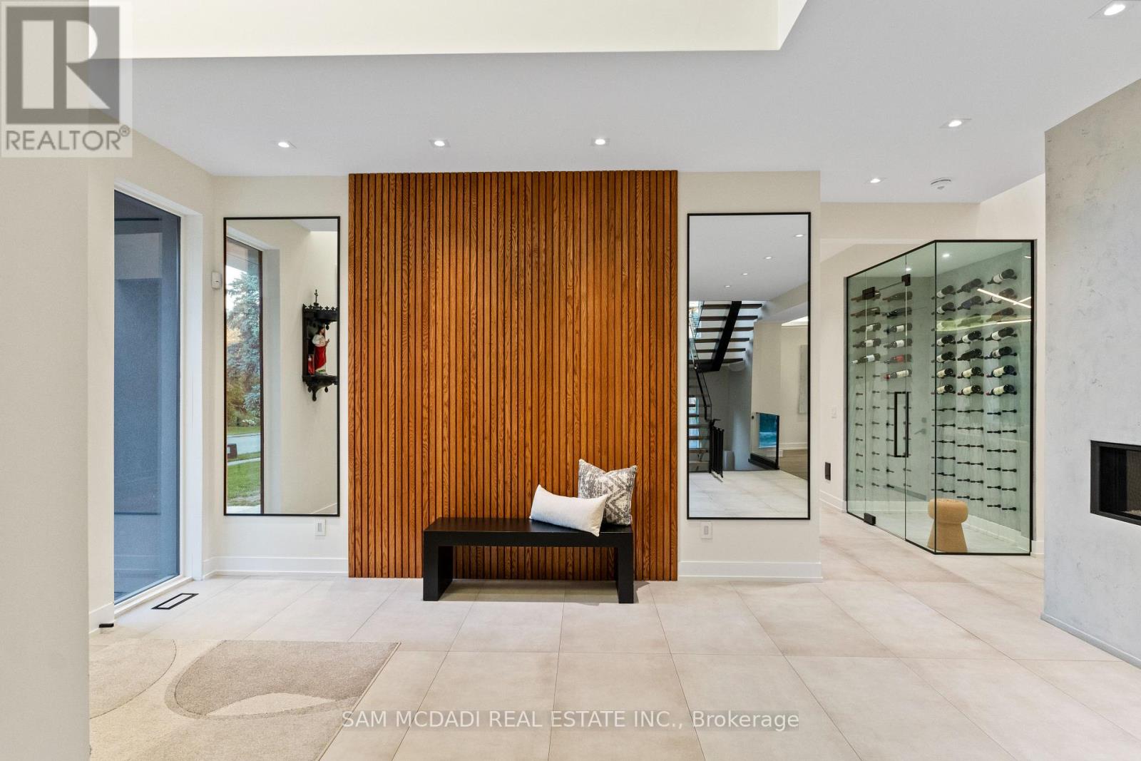 Welcome to 2075 Shawanaga Trail, tucked within the prestigious Sheridan enclave. This elegant residence offers over 6,000 SF of finished living space, thoughtfully designed with 5 bedrooms and 6 bathrooms. A dramatic double-height foyer sets the tone, leading into light-filled interiors where oversized windows showcase the homes architectural elegance. Tray ceilings with recessed and cove lighting create a soft ambient glow, while a two-way gas fireplace anchors the open living and dining areas. A glass-enclosed wine display adds a sculptural statement, perfect for the discerning collector. The chef's kitchen features quartz countertops, integrated appliances, custom cabinetry and walk-in pantry. It flows seamlessly into the main gathering spaces with views of the private backyard. A covered patio invites year-round entertaining, while a main floor office offers quiet workspace. Above, the primary suite is a private retreat with dual walk-in closets and a spa-like ensuite with freestanding tub and glass shower. Three additional bedrooms feature walk-in closets and private or semi-ensuite baths. A second-floor laundry room adds convenience. The finished lower level boasts 9-foot ceilings, a full wet bar, expansive recreation room, guest suite with ensuite, and a flexible room ideal for media or fitness. Outdoors, the professionally landscaped backyard is framed by mature trees, offering privacy, tranquility, and space to customize. Additional highlights include engineered hardwood, built-in Sonos audio, newer roof and windows (2022), and ample parking. Located near Mississauga and Credit Valley Golf Clubs, University of Toronto Mississauga, and highly acclaimed schools. Just minutes to the QEW, 403, Port Credit Village, and scenic waterfront trails. (id:4555)