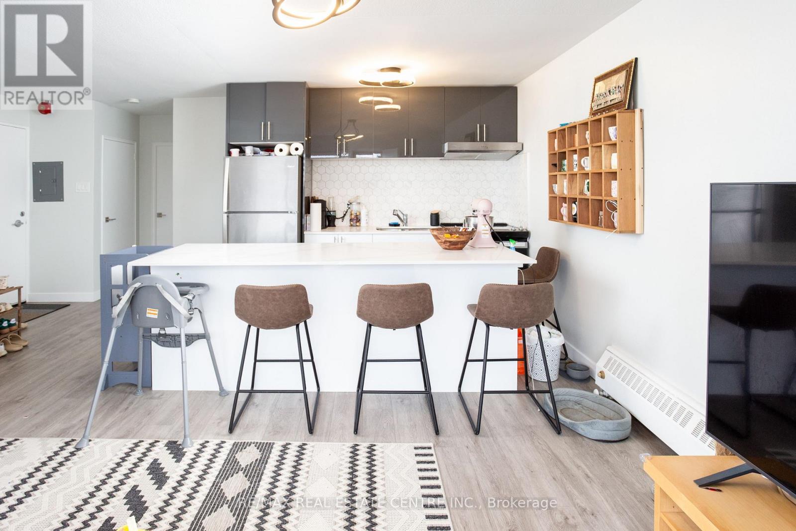 Experience elevated waterfront living in Port Credit's most exciting new destination community. This functional, open-concept one-bedroom suite offers approximately 875 sq ft of thoughtfully designed interior space, perfectly blending comfort and style. Situated on the penthouse level, this unit boasts stunning lake views from a private balcony-an ideal spot to unwind and take in breathtaking sunsets. Inside, the modern kitchen features sleek quartz countertops, a center island, and a seamless flow into the combined living and dining area, making it perfect for both everyday living and entertaining. Large niche windows flood the space with natural light, enhancing the airy ambiance. Additional highlights include a dedicated parking space and locker for extra storage. Enjoy unmatched convenience with groceries, cafés, restaurants, entertainment, and transit just steps away-including easy access to the Port Credit GO Station. Embrace lakeside strolls and a vibrant community lifestyle that truly defines luxury waterfront living. PROMOTION 6 MONTHS FREE UTILITIES !!!! (id:4555)