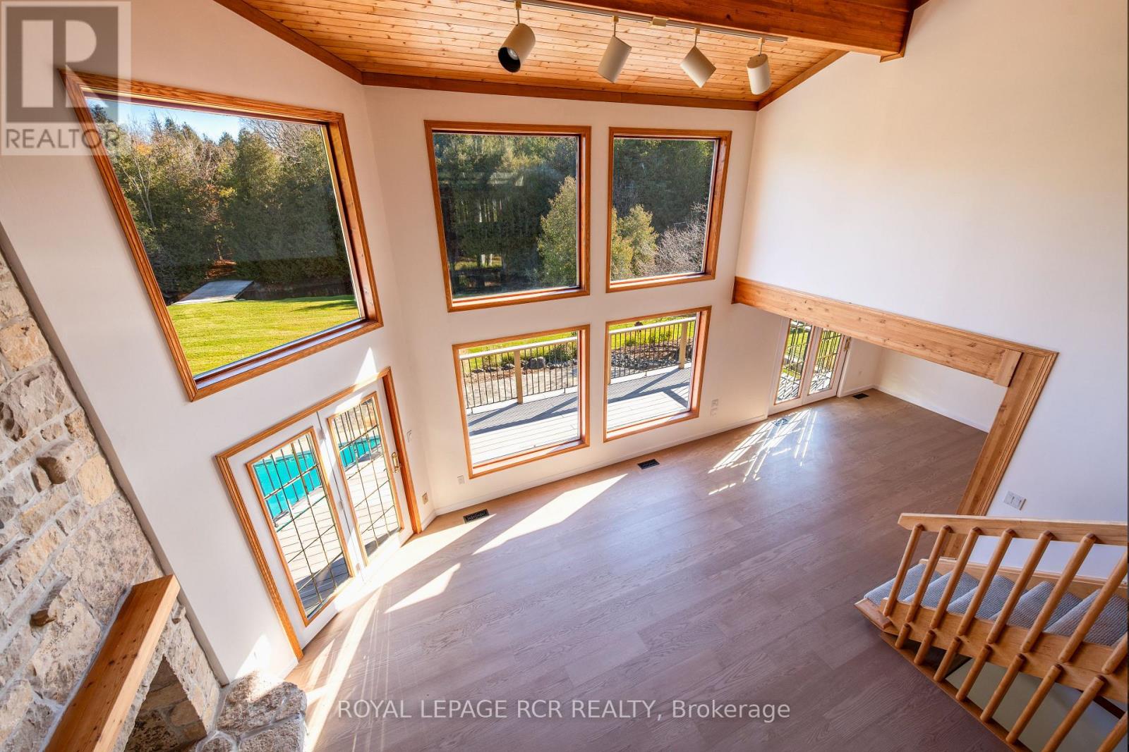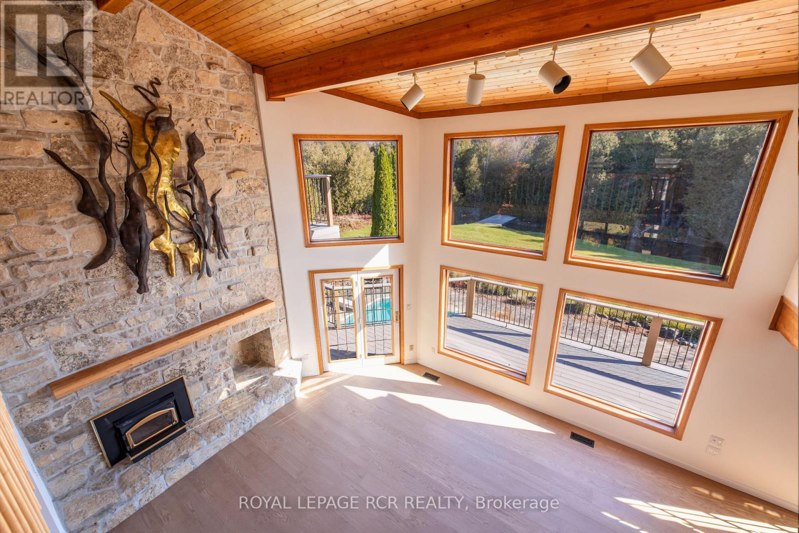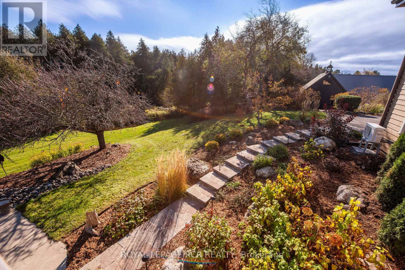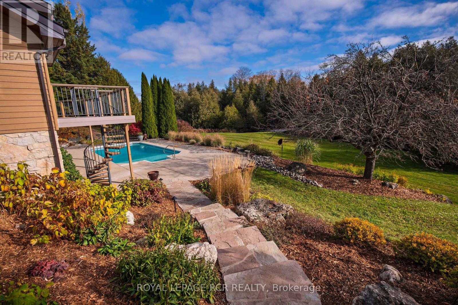 Welcome to Nature's Door, 33 gorgeous acres in the Town of Mono with a river running through it. An exceptional property offering endless enjoyment with the backyard vista overlooking the Nottawasaga River. This custom-built home was overseen by a local entrepreneur who purchased the property and hired the finest local trades to build this impressive home. The great room with large windows, vaulted ceiling and soaring floor to ceiling 19ft natural stone fireplace is spectacular. Completely renovated kitchen with quartz countertops, Café appliances and wide plank flooring. The pantry with bar fridge is just as impressive with its vaulted ceilings and natural light flowing through the space. Open riser staircase leads you to the loft library then onto the principal bedroom with five-piece ensuite and a private balcony overlooking the property. Lower level is fully finished with family room, stone fireplace, bar, powder room, office, large bedroom with ensuite. Each of the three rooms have garden doors walking out to the pool patio with the pool surrounded by gardens and breathtaking natural views. The home is comfortable and spacious to invite friends and family up for country weekends. Looking for more office space, there is a private office above the garage with its own staircase and views over the back of the property. Outbuilding consisting of three stalls, storage and a garage is ideal for pursuing hobbies or anyone wanting to keep horses on the property. The property features two paddocks, open fields, forest with cedar and massive mature maples with a river running through the middle of the property with a heavy-duty bridge to access the back acreage. Property is located just north of Caledon in Hockley Valley and is 1 hour from Toronto, 15 minutes to Orangeville and provides easy access to area amenities such as Mono Cliffs, Hockley Valley Resort, Adamo Winery, The Bruce Trail, Mansfield Ski Club and many local restaurants. (id:4555)