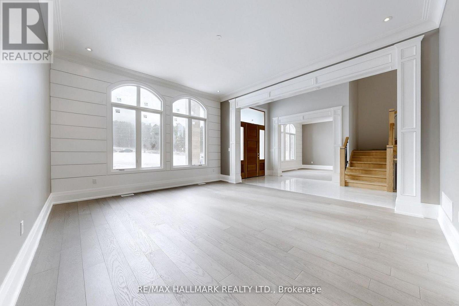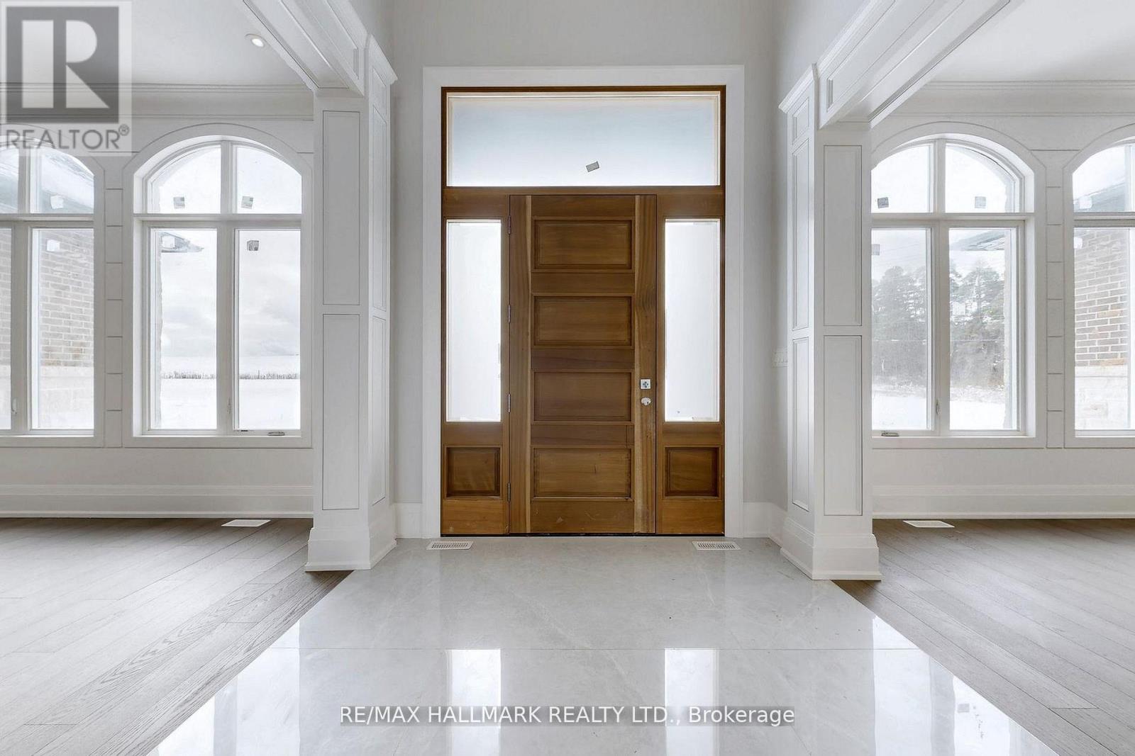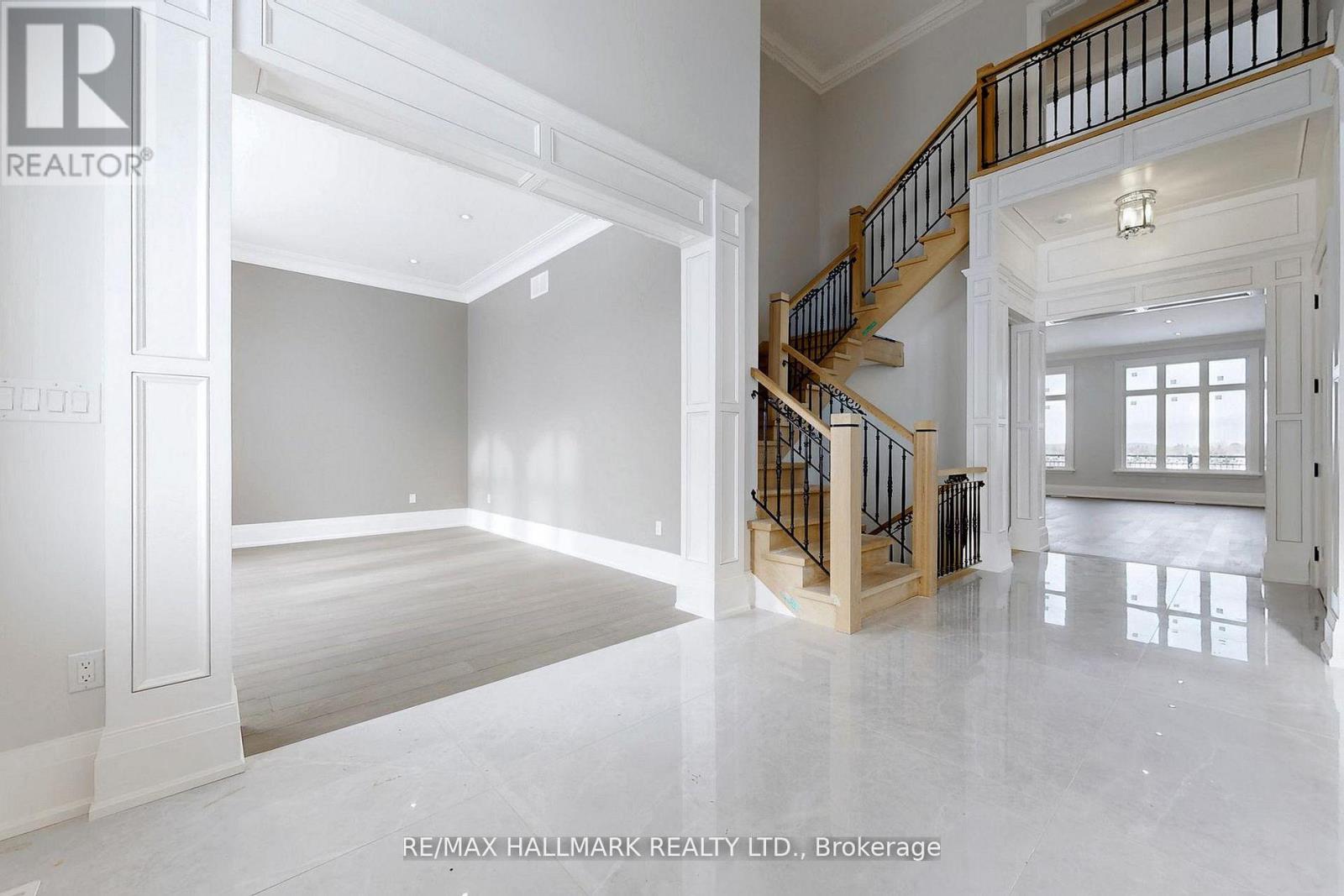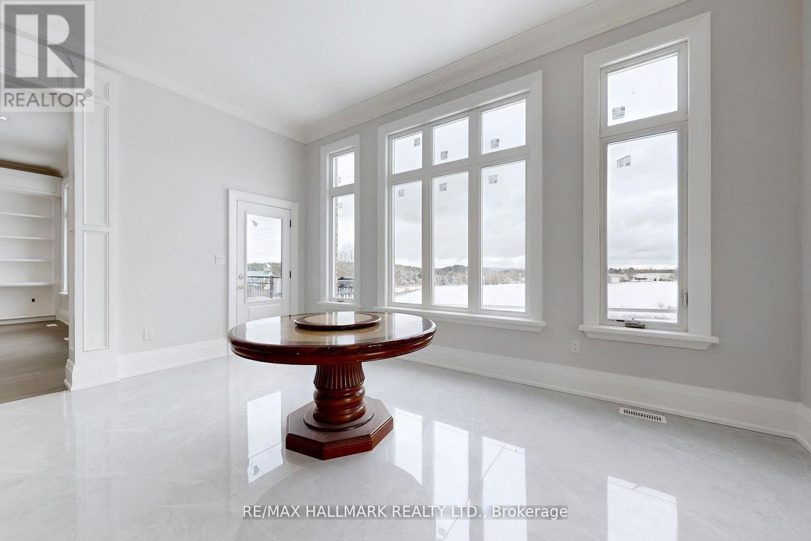 Opportunity knocks! Why not take advantage of this extraordinary, custom-built estate-like home offering over 7,000 sq ft of luxury craftsmanship, set gracefully upon 3 acres. The property boasts two road frontages and a private drive leading to dual double-car garages. Designed to capture stunning panoramic north views, the main floor features a spacious living room, elegant dining room with servery, and a gourmet chef's kitchen with premium finishes, a large eat-in area, and a walkout to a north-facing balcony. Off the kitchen, a beautiful northeast-facing sunroom provides the perfect spot to enjoy peaceful morning sunrises. Enhancing the home's functionality are a convenient secondary spice kitchen, two mudrooms, a full laundry room, and a lavish main-floor primary suite-complete with sitting area, walk-in closet, and luxurious 5-piece ensuite.The second level offers four generous bedrooms, each with its own private ensuite bath, including a secondary primary suite ideal for extended family or guests. A grand entertainment room with a vaulted ceiling anchors the upper level, creating an impressive gathering space. The home showcases flat ceilings, pot lights throughout, detailed mouldings, and a striking wrought-iron staircase that sets the tone for its refined elegance.The walkout basement, left unfinished, awaits your personal vision and offers tremendous future potential with direct access to the backyard. This exceptional residence blends thoughtful design, luxury finishes, and breathtaking views. A rare opportunity to own a truly remarkable custom home unlike any other. (id:4555)
