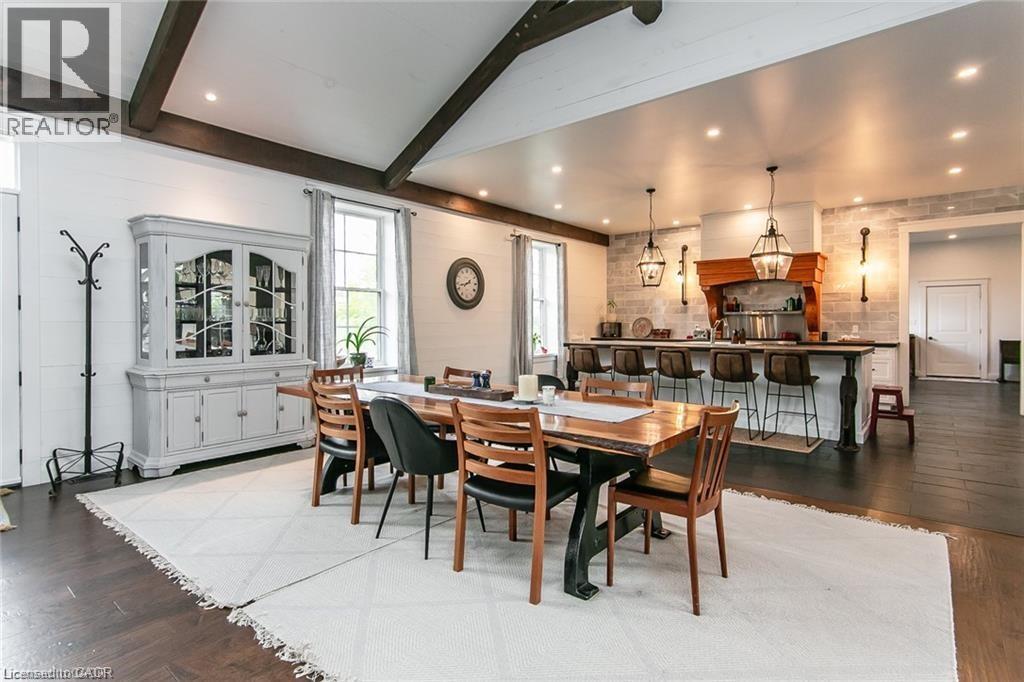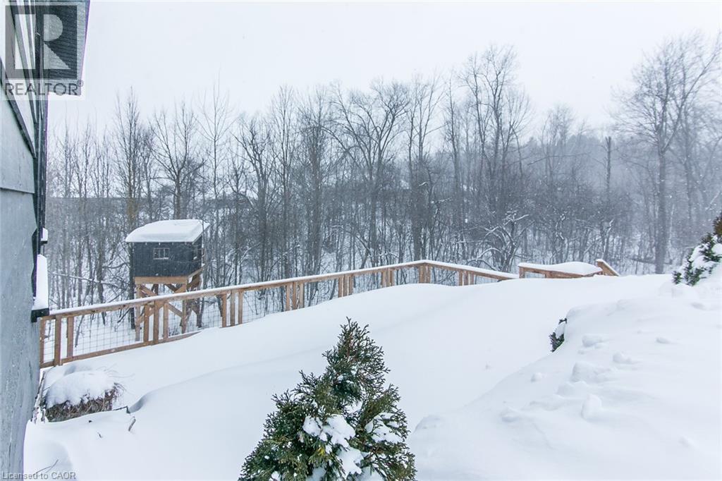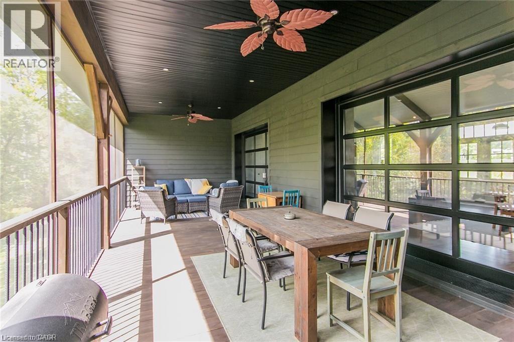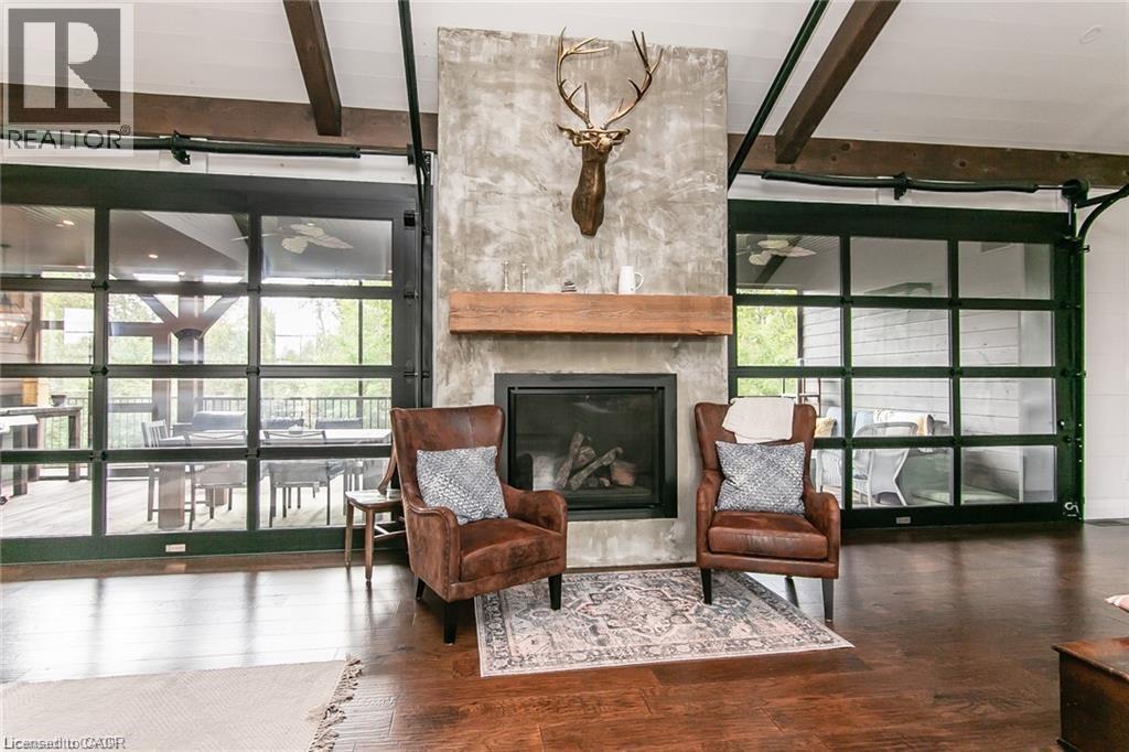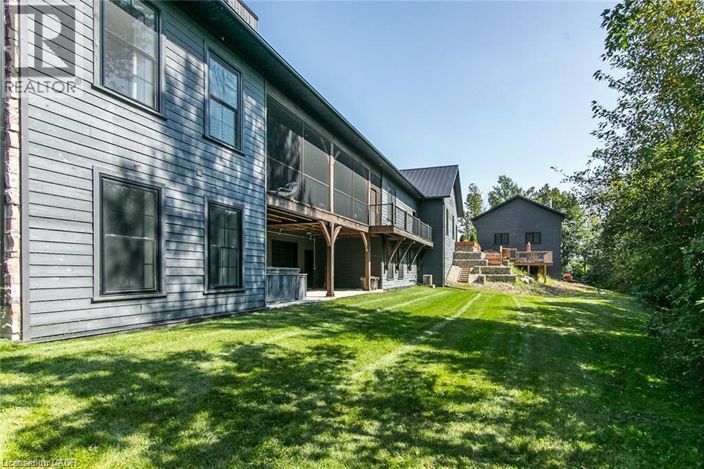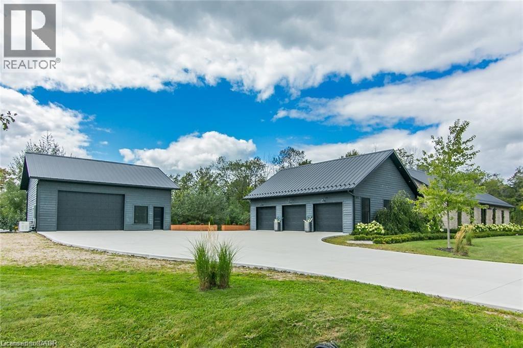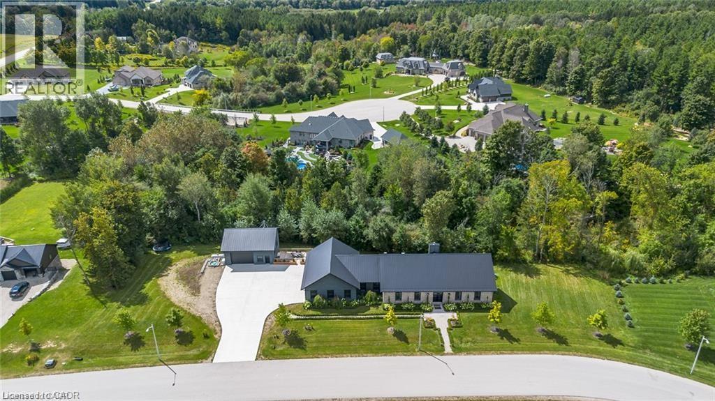 Spectacular Custom-Built Bungalow with Walk-out Basement, Triple Car Garage & Detached 2-Storey Garage & Shop on Two Acres-just 35-45 min from Waterloo! Nestled in an exclusive enclave of executive homes in Moorefield, this property offers a peaceful country setting with easy city access. Built like no other, it showcases structurally superior ICF (insulated concrete form) construction & a lifetime metal roof-the same quality extends to the det garage. Inside, the open-concept layout features exposed timber-frame details, soaring vaulted ceilings & 2 glass garage doors that open onto a 3-season porch. The kitchen, dining & living area impress w/ a stone f/p, concrete counters, oversized island & fantastic walk-in pantry w/ floor-to-ceiling storage. At its heart: an 8-burner Wolf gas stove, double ovens & upgraded range hood-over $40,000 in luxury appliances! Entertain year-round w/ the screened porch, complete w/ outdoor kitchen, brick hearth & fume hood for your bbq. The main floor also boasts a stunning primary suite w/ walk-in closet, spacious dressing rm & spa-inspired ensuite. A 2nd bedroom, currently an office, offers lovely treed views. A stylish mudroom, laundry rm & powder rm w/ live-edge barn door complete the main level. The fin w/o basement features heated floors, 2 bedrooms, 4-pc bath & expansive rec spaces-perfect for family gatherings or games night. 2 more w/o garage doors lead to the backyard & patio. For hobbyists, the 3-car gar is wired for an EV, while the sep insulated 2 storey workshop w/ electrical & wood stove provides endless options for projects, vehicles or gym. The nearly 2-acre property incl a pool-sized lot, new tiered deck, firepit area, treehouse & almost an acre of forest w/ a creek running through it. Your own private retreat! (id:4555)