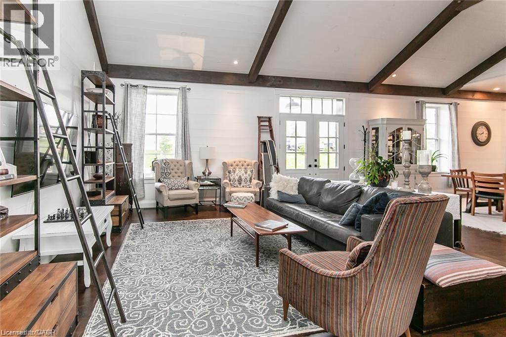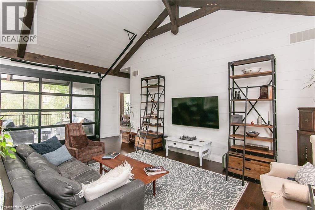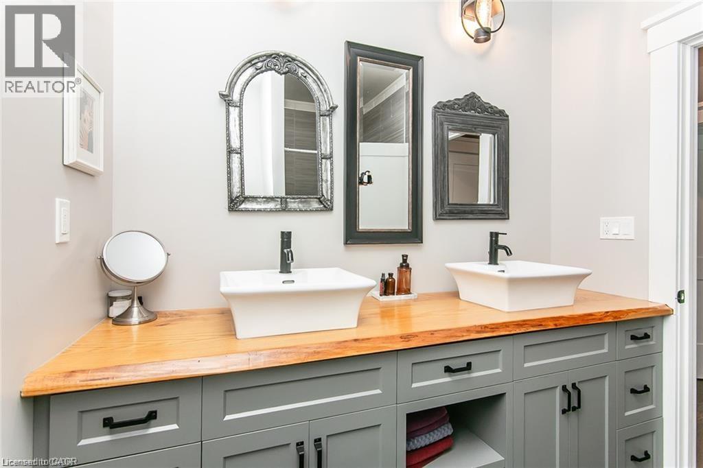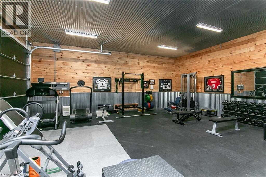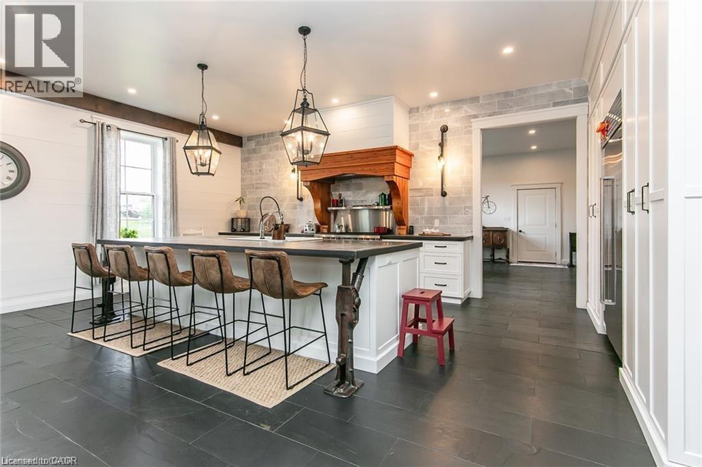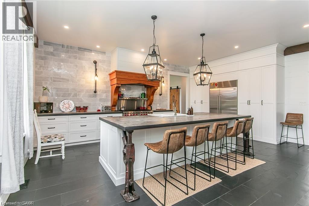 Spectacular Custom-Built Bungalow with Walk-out Basement, Triple Car Garage & Detached 2-Storey Garage & Shop on Two Acres-just 35-45 min from Waterloo! Nestled in an exclusive enclave of executive homes in Moorefield, this property offers a peaceful country setting with easy city access. Built like no other, it showcases structurally superior ICF (insulated concrete form) construction & a lifetime metal roof-the same quality extends to the det garage. Inside, the open-concept layout features exposed timber-frame details, soaring vaulted ceilings & 2 glass garage doors that open onto a 3-season porch. The kitchen, dining & living area impress w/ a stone f/p, concrete counters, oversized island & fantastic walk-in pantry w/ floor-to-ceiling storage. At its heart: an 8-burner Wolf gas stove, double ovens & upgraded range hood-over $40,000 in luxury appliances! Entertain year-round w/ the screened porch, complete w/ outdoor kitchen, brick hearth & fume hood for your bbq. The main floor also boasts a stunning primary suite w/ walk-in closet, spacious dressing rm & spa-inspired ensuite. A 2nd bedroom, currently an office, offers lovely treed views. A stylish mudroom, laundry rm & powder rm w/ live-edge barn door complete the main level. The fin w/o basement features heated floors, 2 bedrooms, 4-pc bath & expansive rec spaces-perfect for family gatherings or games night. 2 more w/o garage doors lead to the backyard & patio. For hobbyists, the 3-car gar is wired for an EV, while the sep insulated 2 storey workshop w/ electrical & wood stove provides endless options for projects, vehicles or gym. The nearly 2-acre property incl a pool-sized lot, new tiered deck, firepit area, treehouse & almost an acre of forest w/ a creek running through it. Your own private retreat! (id:4555)