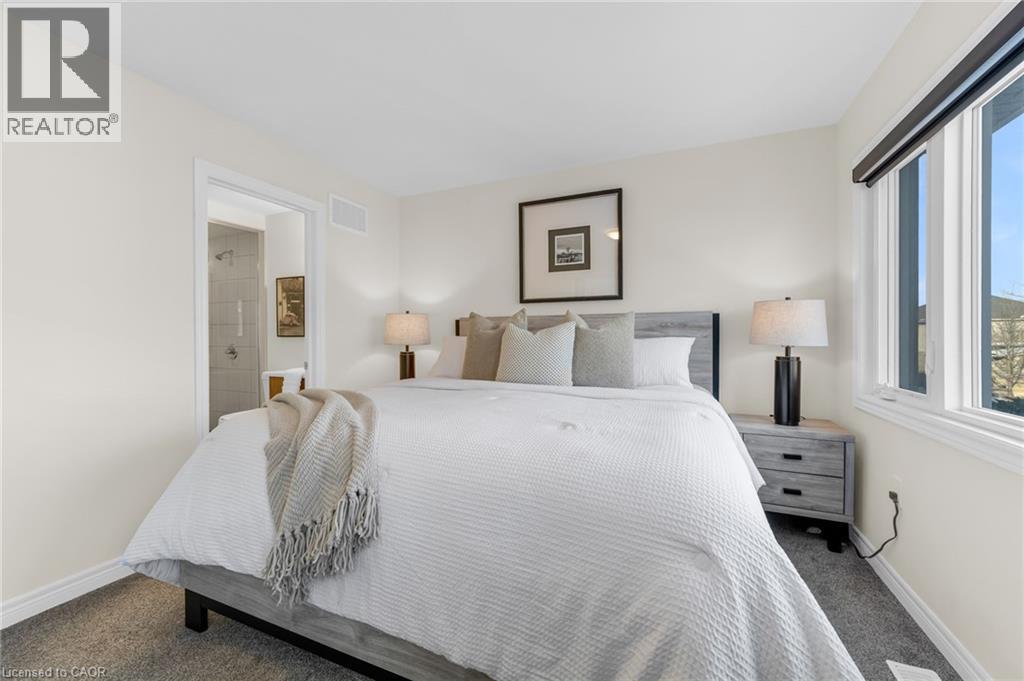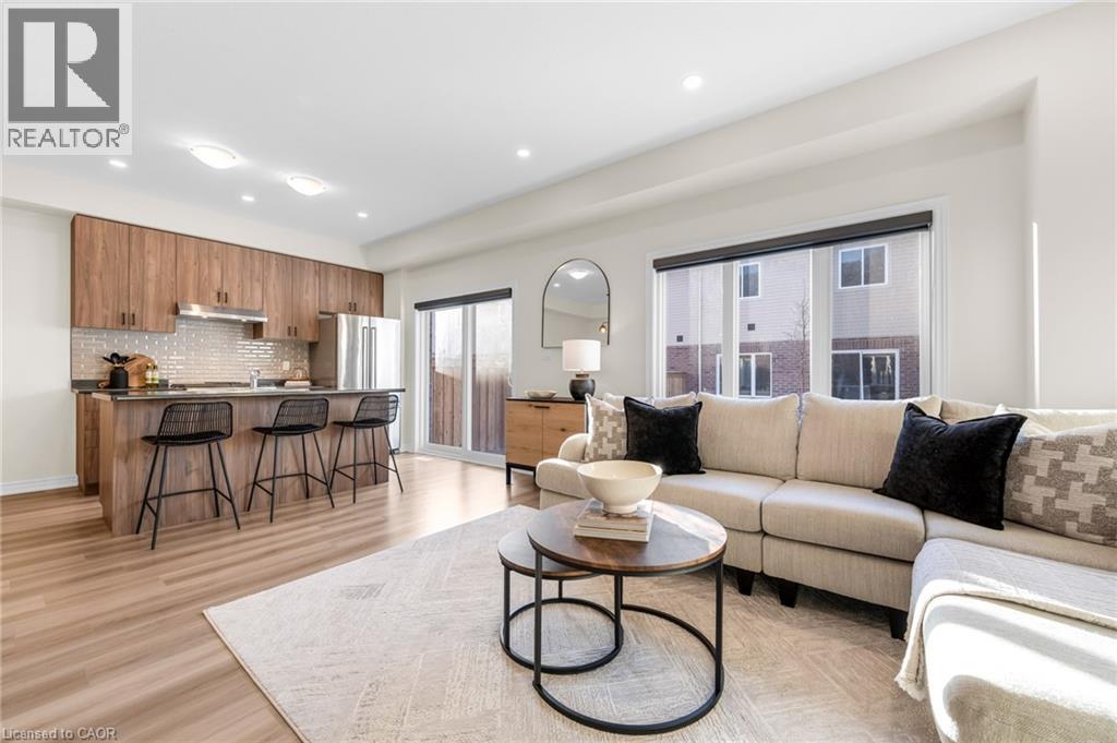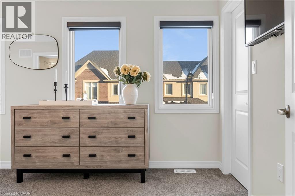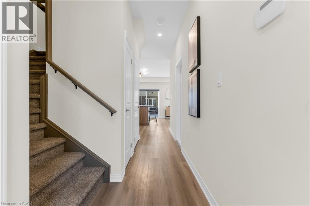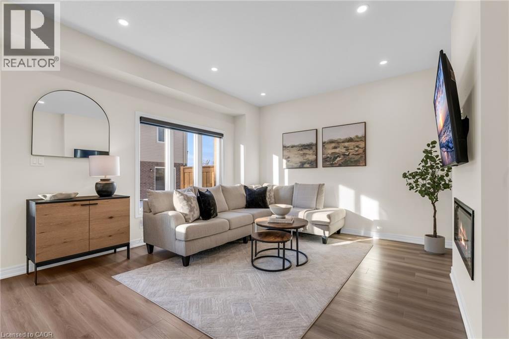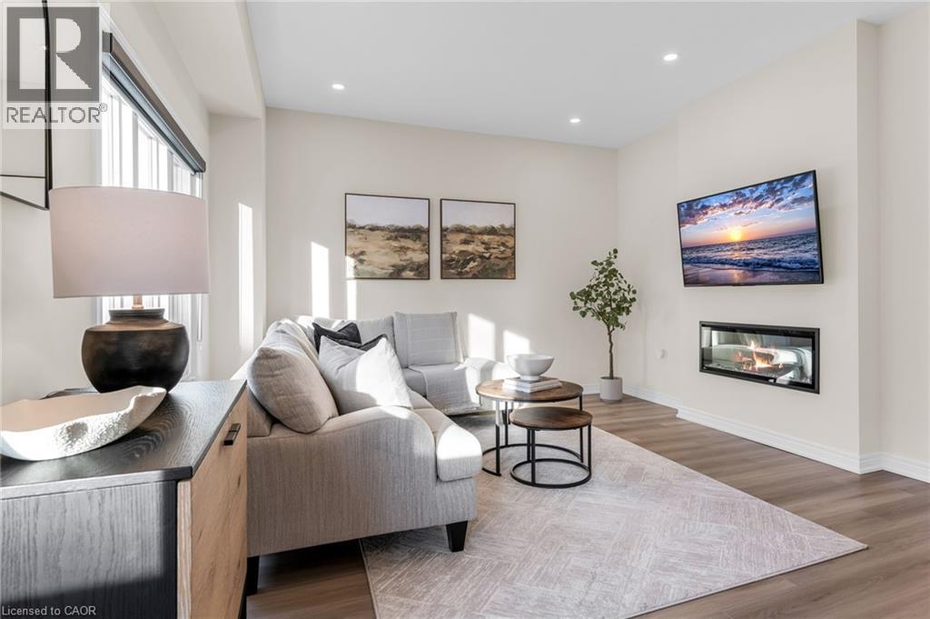 Better than new! Built in 2024, this stunning freehold townhome is nestled in the desirable Hampton Park community built by Dicenzo Homes. The inviting curb appeal welcomes you into a bright, spacious main floor finished in modern neutral tones, featuring 9' ceilings, gorgeous low-maintenance vinyl flooring, custom zebra blinds throughout, modern recessed lighting and a large kitchen with upgraded cabinetry, premium stainless steel appliances, and a generous island overlooking the separate dining area and cozy living room. Large windows flood the space with natural light, while an inviting Napoleon fireplace adds warmth on chilly winter nights. A convenient 2-piece bath completes the main level. The upper level offers three spacious bedrooms, including a generous primary retreat with a modern 3-piece ensuite and two walk-in closets, along with an additional 4-piece bathroom. Downstairs, the basement awaits your finishing touches - currently utilized as a large laundry area and storage space, and equipped with a 3-piece rough-in for a future bathroom. Perfect for pets or enjoying the warmer months, the backyard is partially fenced with new sod in both the front and rear, easily accessible through large patio doors. added bonus, oversized garage w/ interior access! Just steps from the sprawling Hampton Park community park and conveniently close to all major amenities, this home is sure to impress- and is truly move-in ready. (id:4555)