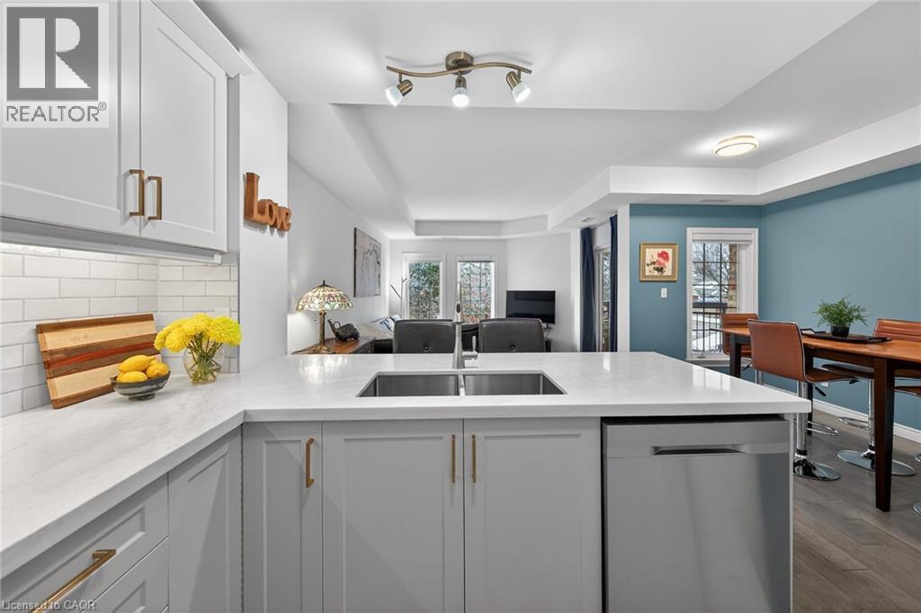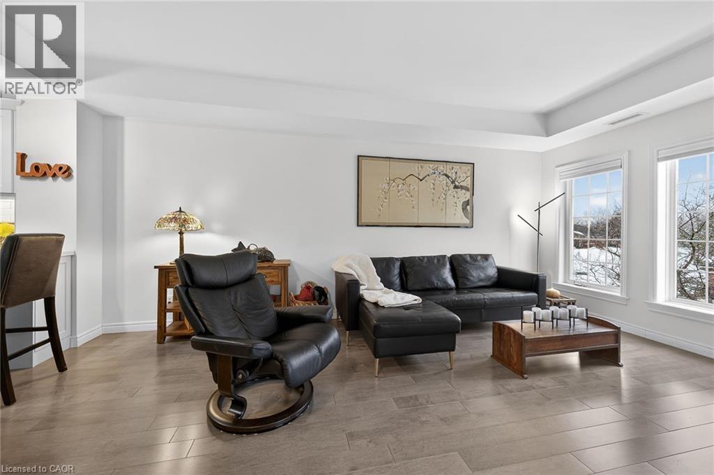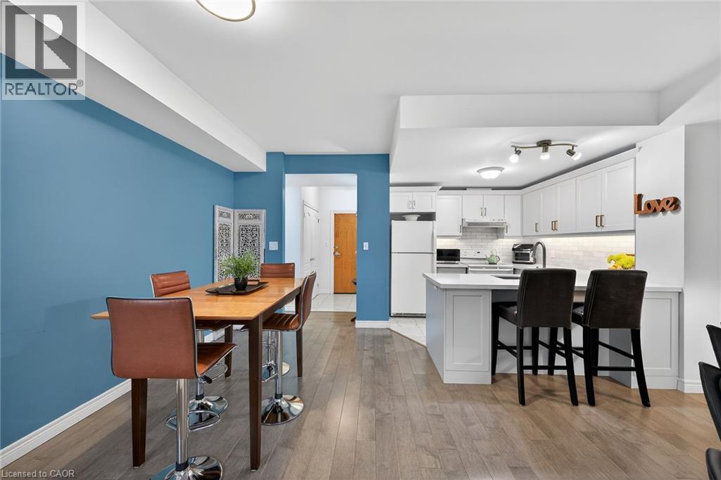 WELCOME TO TWENTY PLACE! The ultimate in adult lifestyle living! This spacious two bedroom, two bathroom condo apartment features an in-suite laundry room with good storage space, two owned parking spaces and an owned locker. If you like to entertain, you'll love this open concept floor plan with a beautifully updated kitchen which overlooks the living room and dining room, featuring porcelain tile flooring, modern cabinet doors, quartz countertops with breakfast bar, undercabinet lighting and sharp backsplash tiles. Beautiful engineered hardwood flooring is featured throughout most of this clean, move-in ready suite. The private, west-facing balcony is surrounded by mature trees, has a pond view, and is accessible from the living room, as well as from your primary bedroom! Aside from the amenities available to you in the building, which has two elevators, you're just a few steps to the spectacular residents' clubhouse. Here, you'll enjoy the indoor pool, sauna, whirlpool, the gym, library, games and craft rooms, and a large party room for the many great events held in the community. There is also tennis/pickleball court, shuffleboard and much more! When you think of low-maintenance, turn-key living, think Twenty Place! One of Southern Ontario's most popular adult-lifestyle communities! (id:4555)