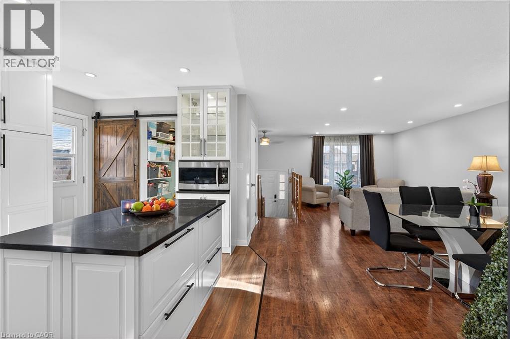 Welcome to 36 Longview — a beautifully updated raised ranch tucked away on a quiet cul-de-sac, ideal for families and multi-generational living. Thoughtfully upgraded throughout, this home showcases a fully renovated main kitchen (2021) with modern appliances, cabinetry, countertops, and flooring, opening into a bright, open-concept living space. The main level offers three generously sized bedrooms, a full bathroom with ensuite privilege, a newly added powder room, and a well-designed layout that balances comfort and functionality. The fully finished lower level adds exceptional versatility, complete with a second kitchen, two additional bedrooms, a spacious family room, full bathroom, and a laundry room with walk-up access to the garage. With potential for a separate entrance, this space is ideal for an in-law suite or extended family living. Recent updates include new basement flooring, a custom closet in the downstairs bedroom, and the addition of a powder room. Additional upgrades (2021) include pot lights throughout the interior and exterior, a stylish accent wall with fireplace and lighting, new railing, foyer, and a gazebo — perfect for enhancing both comfort and entertaining. The home is also equipped with seven exterior security cameras for added peace of mind. Roof replaced in 2019. Step outside to a multi-level deck and patio with a gas line for your BBQ — an ideal setting for hosting family and friends. With parking for up to seven vehicles and located in the growing community of Mount Hope, close to schools, parks, trails, and with easy access to major routes and highways, this home offers the perfect balance of suburban living and city convenience. A move-in ready home with extensive upgrades — don’t miss this opportunity. (id:4555)