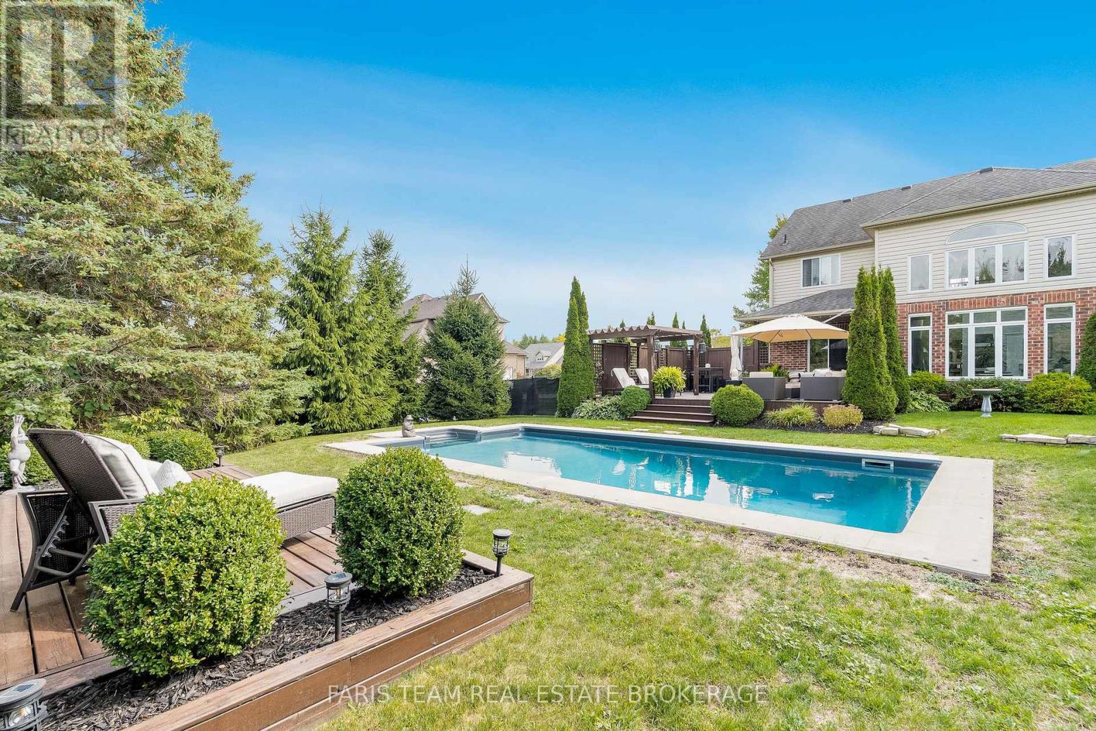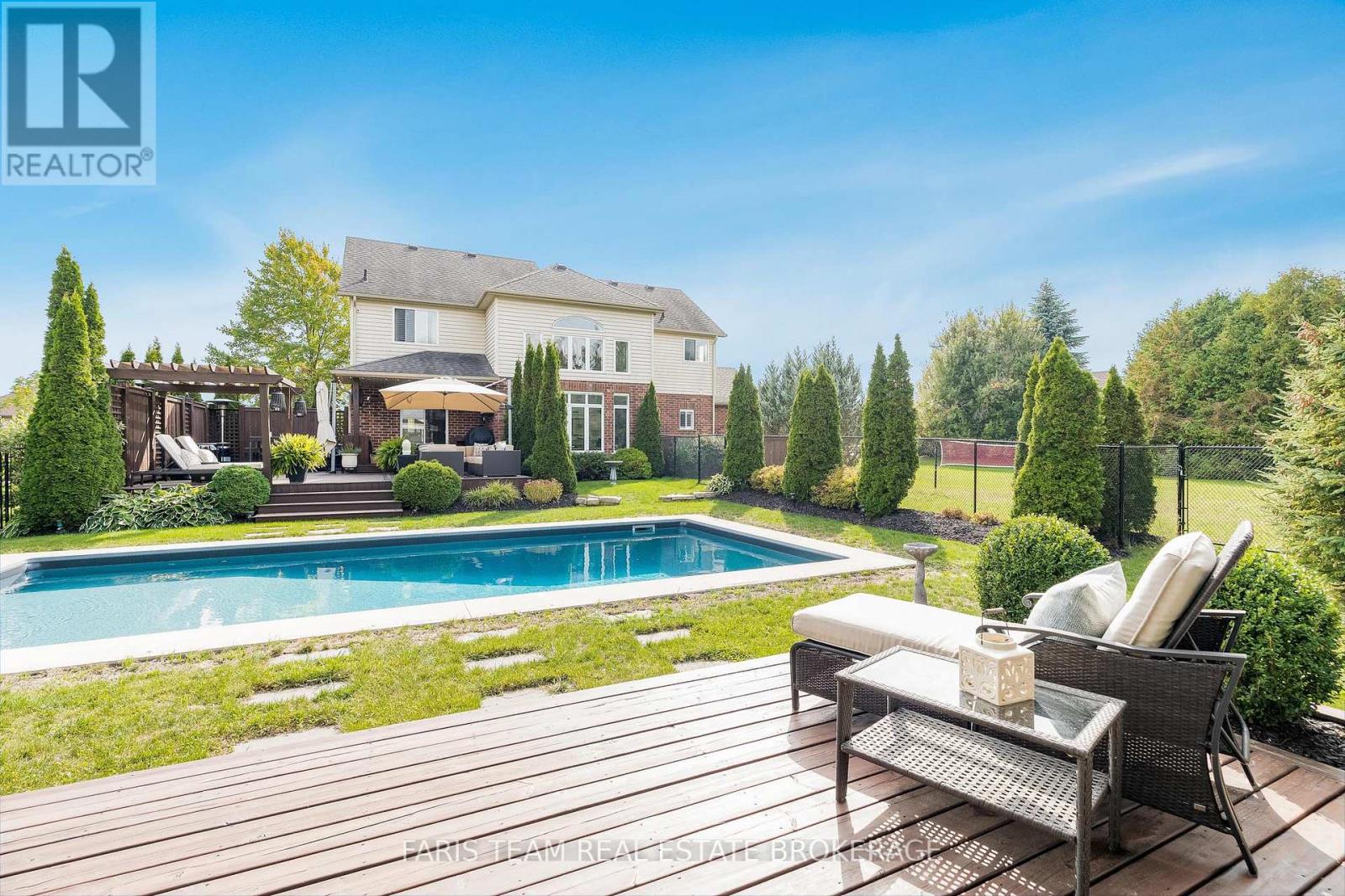 Top 5 Reasons You Will Love This Home: 1) Tucked away in the prestigious Mansfield Ridge community, where every property enjoys the privacy and space of almost a 1-acre estate lot 2) Enjoy the upgraded chef-inspired kitchen, featuring high-end stainless-steel appliances, custom cabinetry, and seamless flow into the open-concept living area, as well as a direct sliding glass-door walkout leading to the backyard, striking the perfect balance between comfort and entertaining 3) The dramatic two-storey living room, open to above, boasts soaring ceilings and expansive windows that flood the space with natural light and create a stunning focal point for the home 4) The backyard is a true private retreat, nestled on a beautiful treed lot and designed for entertaining with a sparkling inground pool, open-air covered cabana, and multiple lounge and dining areas, showcasing the ultimate indoor-outdoor lifestyle 5) With thoughtful upgrades throughout and meticulous attention to detail, this home delivers an ideal mix of elegance and functionality, ready for you to move in and start living your dream. 2,279 sq.ft. plus an unfinished basement. (id:4555)
