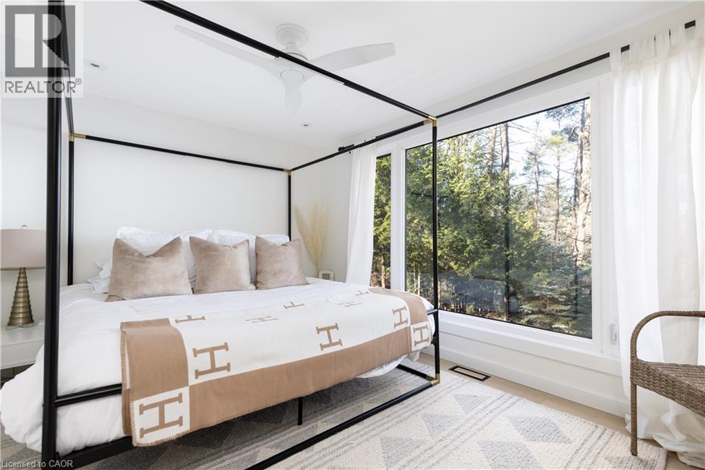 A long-standing, high-performing luxury investment, this Brandy Lake retreat has delivered over $150,000 in rental income in the most recent Airbnb season, with many prime weeks still open for booking. Welcome to Luxury on Brandy Lake, a refined four-season escape where contemporary design meets the quiet magic of Muskoka. Just five minutes from Port Carling, the property feels intentionally tucked away, surrounded by mature white pines with the lake stretching out in front of you like a private canvas. Inside, lakeside patio doors span the main living space, opening the home to natural light and uninterrupted water views. The interior is sophisticated and understated: a linear propane fireplace, Lutron lighting, Art TVs, and a seamless Sonos system throughout. The kitchen anchors the space with a quartz waterfall island and premium appliances, creating an effortless backdrop for hosting and everyday year-round living. Three serene bedrooms sit on the main level, along with a flexible games room that transitions easily into a fourth bedroom. A spa-inspired bathroom features heated floors and a sculptural stone-wood vanity. Connected by a breezeway, the private guest suite doubles as a theatre room with a projector, queen bed, pullout couch, and direct access to the hot tub. Upstairs, a secluded bedroom offers a panoramic lake view, a full bathroom, and a quiet nook perfect for mornings with a book. The property is designed for relaxed lakeside living, morning coffee at the shoreline, long afternoons on the dock, and evenings set against soft reflection on the water. Just up the road, you’ll find convenient boat launches for Brandy Lake and iconic Lake Muskoka, giving you access to miles of open water and endless day trips. With ample parking, year-round municipal access, this is a rare blend of luxury, practicality, and proven investment strength. Offered fully furnished and turn-key, it’s a Muskoka opportunity that stands in a category of its own. (id:4555)