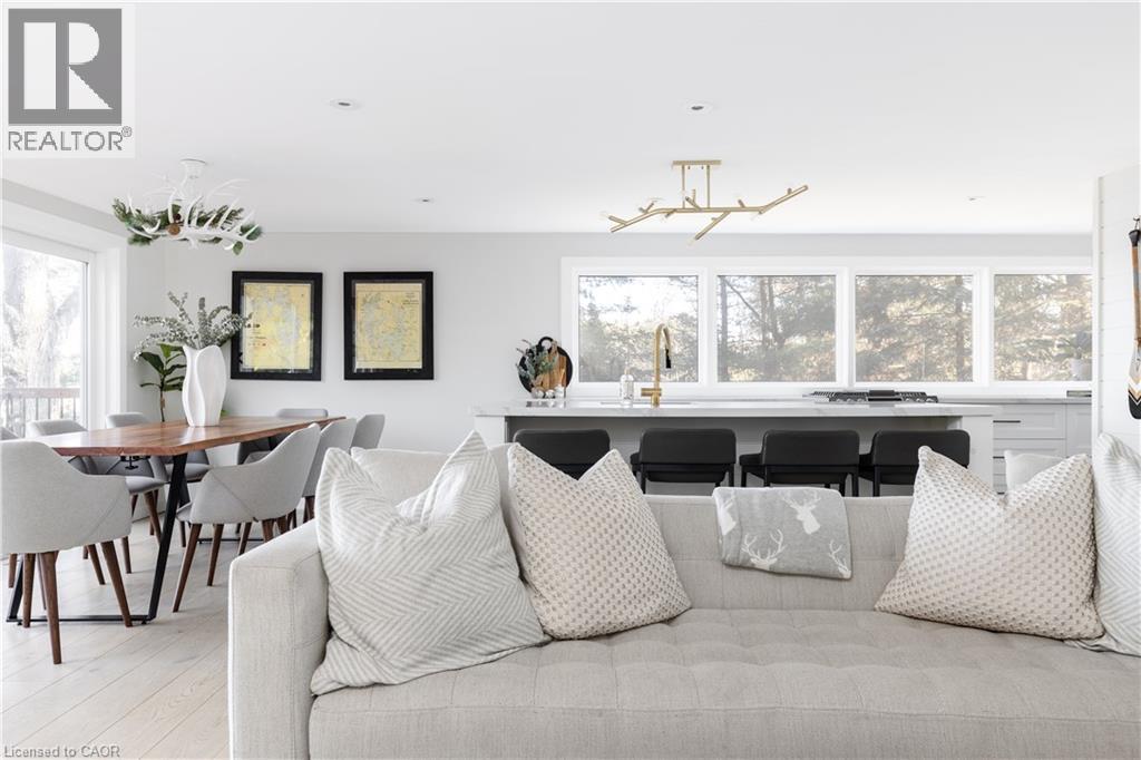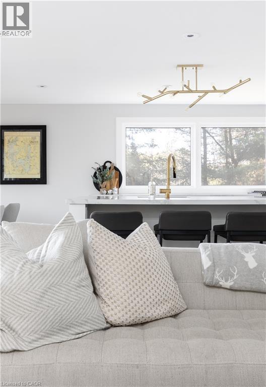 Tucked along the quiet shores of Brandy Lake, this waterfront home offers a relaxed, elevated lake lifestyle just five minutes from Port Carling. With wide open water views and easy year round municipal access, this is the kind of place where summers naturally revolve around the lake, long dock days, sunset swims, and evenings spent watching the light move across the water. Inside, floor to ceiling patio doors line the main living space, bringing in natural light and uninterrupted lake views. The design is modern yet warm, with a linear propane fireplace, integrated lighting, Art TVs, and a seamless Sonos system that adds to the atmosphere without overpowering it. The kitchen anchors the space with a quartz waterfall island and premium appliances, ideal for slow mornings, casual entertaining, and hosting friends after a day on the water. Three comfortable bedrooms are on the main level, along with a flexible games room that can easily convert into a fourth bedroom. A spa inspired bathroom features heated floors and a sculptural stone and wood vanity. Connected by a breezeway, the private guest suite doubles as a theatre room with projector, queen bed, pullout couch, and direct access to the hot tub. Upstairs, a secluded bedroom offers panoramic lake views, a full bathroom, and a quiet nook perfect for morning coffee or winding down with a book. Outdoor living unfolds naturally at the shoreline, on the dock, and around the hot tub after long summer days. Nearby boat launches provide access to both Brandy Lake and Lake Muskoka. Offered fully furnished, this is a rare opportunity to lease a turnkey waterfront home and step straight into a Muskoka summer lifestyle that feels effortless, social, and deeply relaxing. (id:4555)