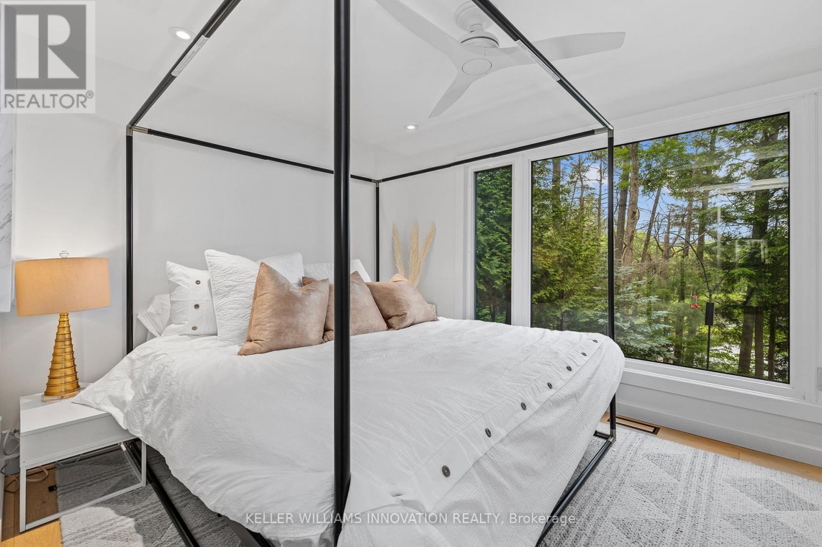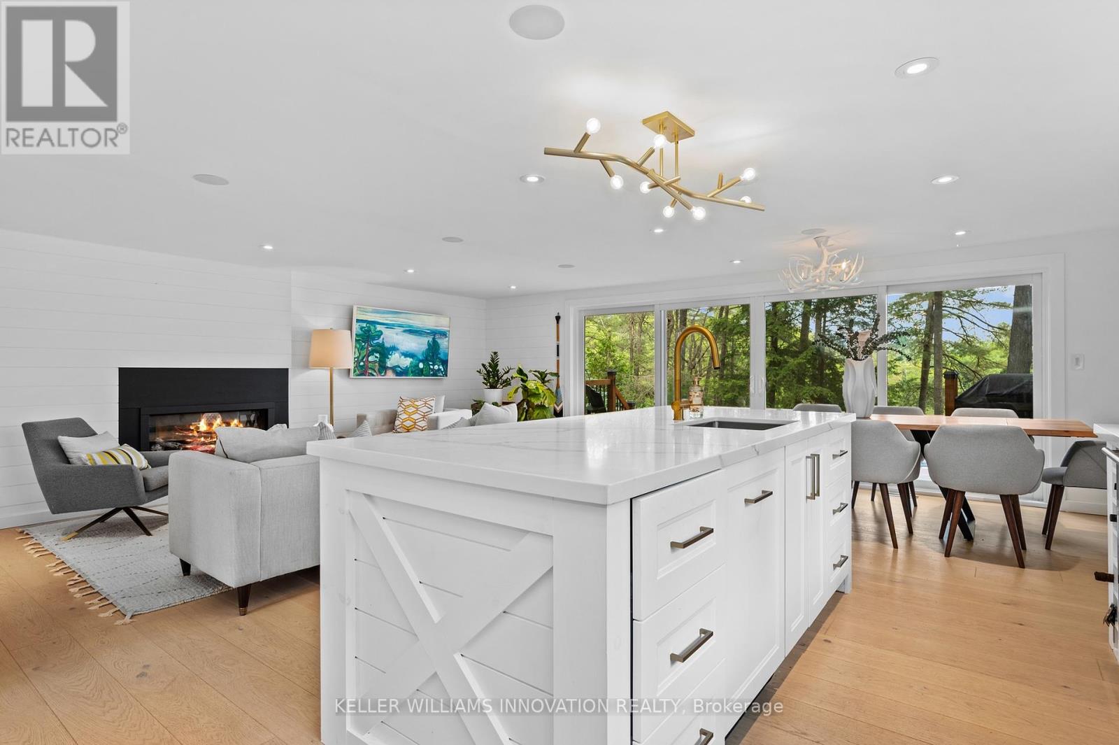 On the shores of Brandy Lake, where strong rental performance meets a lifestyle people come to Muskoka for, this 4 season waterfront home offers over $150,000 in Airbnb revenue in the most recent season with a history of consistent returns. This is city vibes in beautiful cottage country, where elevated design meets laid back lake life in all the right ways. Inside, sunlight pours through lakeside patio doors, framing the water and filling the main living space with natural light. A sleek fireplace, integrated sound system, and refined finishes create a space that feels both elevated and inviting, perfect for hosting or slowing down after a day on the lake. The kitchen brings everyone together, with a quartz waterfall island that becomes the natural gathering place for morning coffee, shared meals and long evenings that never feel rushed. Three spacious bedrooms on the main level offer comfort and privacy, complemented by a flexible bonus space that easily transforms into a fourth bedroom. The spa inspired bathroom with heated floors adds a layer of comfort that makes four season living feel seamless. A private guest suite doubles as a theatre room with projector, sleeping space, and direct access to the hot tub and exterior TV, creating an experience your guests will never want to leave. Upstairs, a secluded bedroom with stunning lake views & a cozy reading nook offers the perfect escape to start slow mornings or unwind at night. Life here flows naturally. Coffee at the dock, sun filled afternoons on the water, evenings watching the lake settle into glass. Enjoy nearby boat launches connecting you to Brandy Lake, Lake Muskoka, and beyond, adventure is always within reach. Just minutes to Port Carling for dining, shopping & essentials and close enough to catch summer concerts at the iconic Kee to Bala, this is Muskoka living at its best. Fully furnished, completely turnkey, weed-free swimming and an investment backed by proven income! (id:4555)