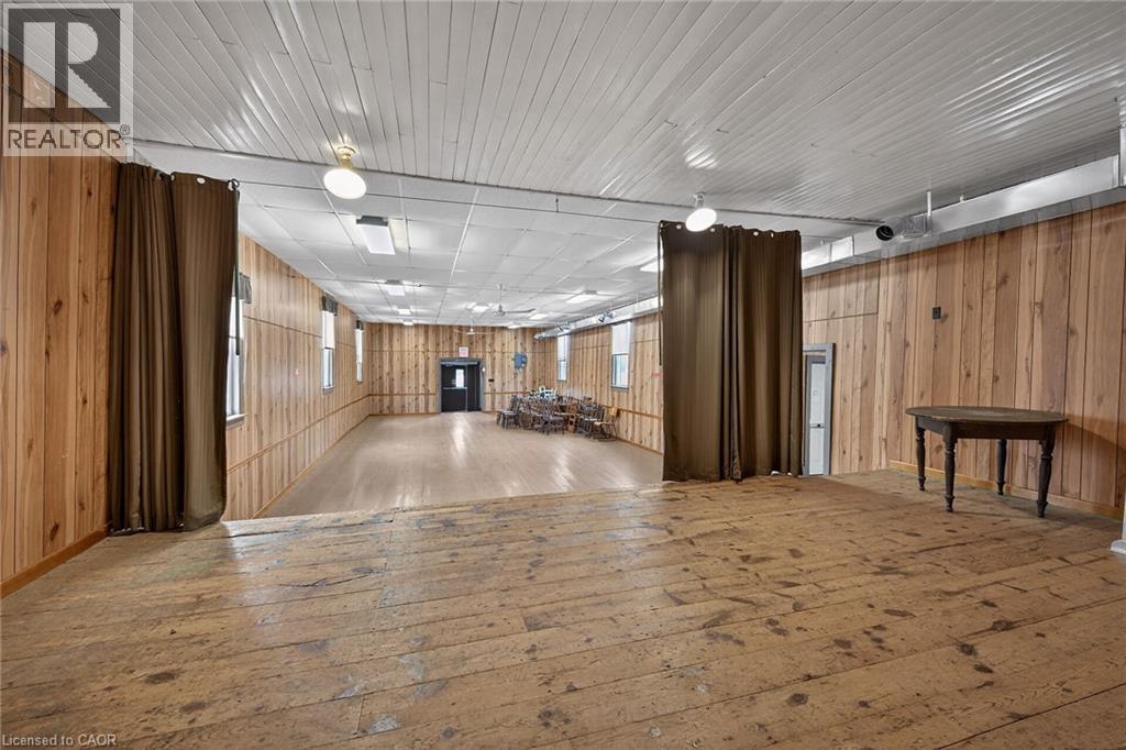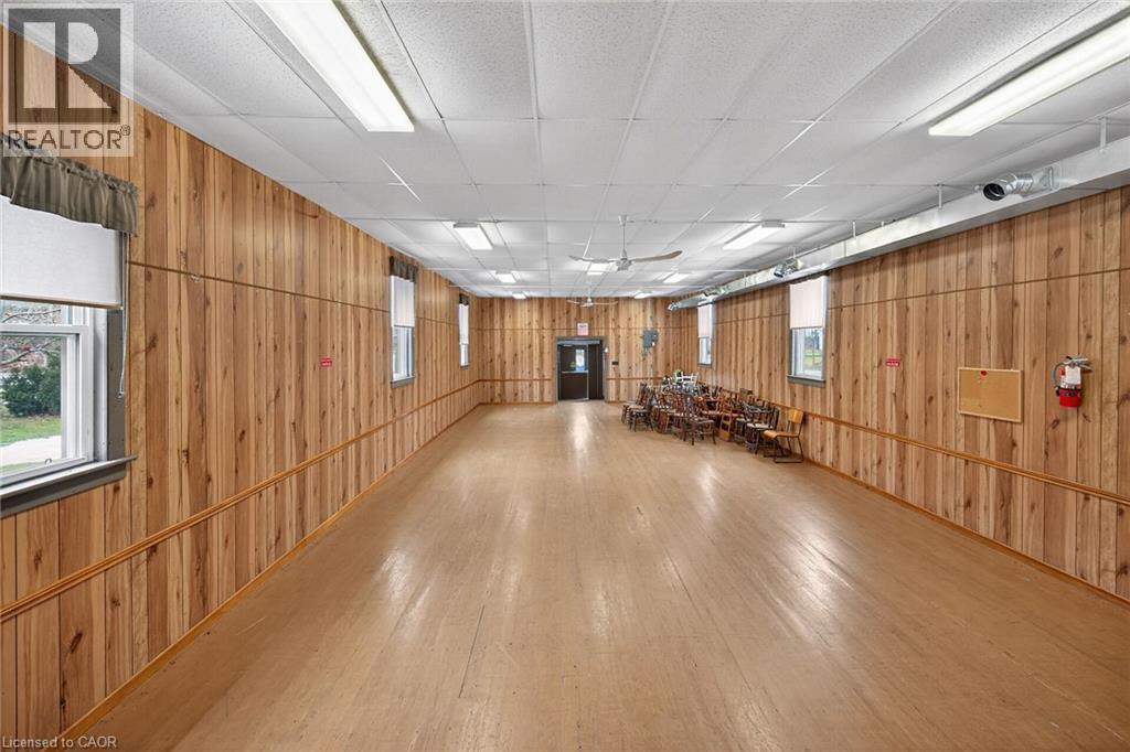 Versatile commercial building in the quaint hamlet of Cheapside, previously known as The Cheapside Community HallĀ - offers 2363 sq ft with a welcoming foyer, large hall with high ceilings and hardwood floors, newer vinyl windows plus stage area and backstage area. Large commercial sized kitchen with older cabinetry and access to two public washrooms. Clad in vinyl siding with a metal roof, and includes a natural gas furnace. Water provided by a cistern, and a holding tank for sanitation. Zoning is IR - Rural Instititional - which permits uses such as day care, place of entertainment, place of sports and recreation, private club, school, office, and more! Sitting on a 0.124 acre lot close to the hamlet - only a km or so from Lake Erie. Worth a look! (id:4555)