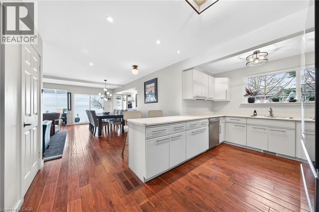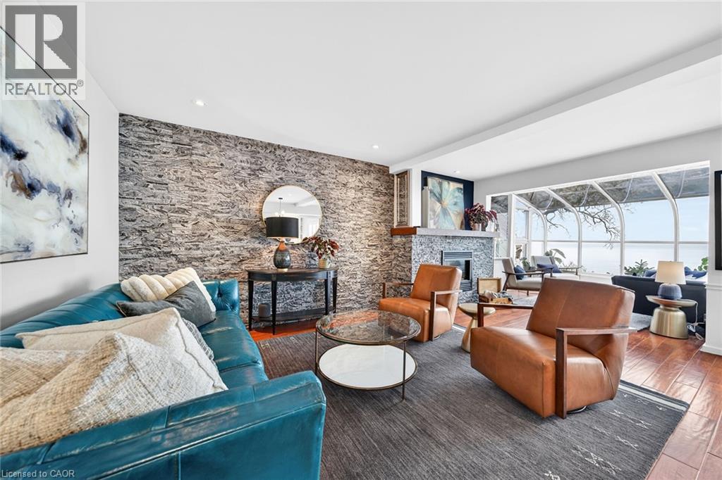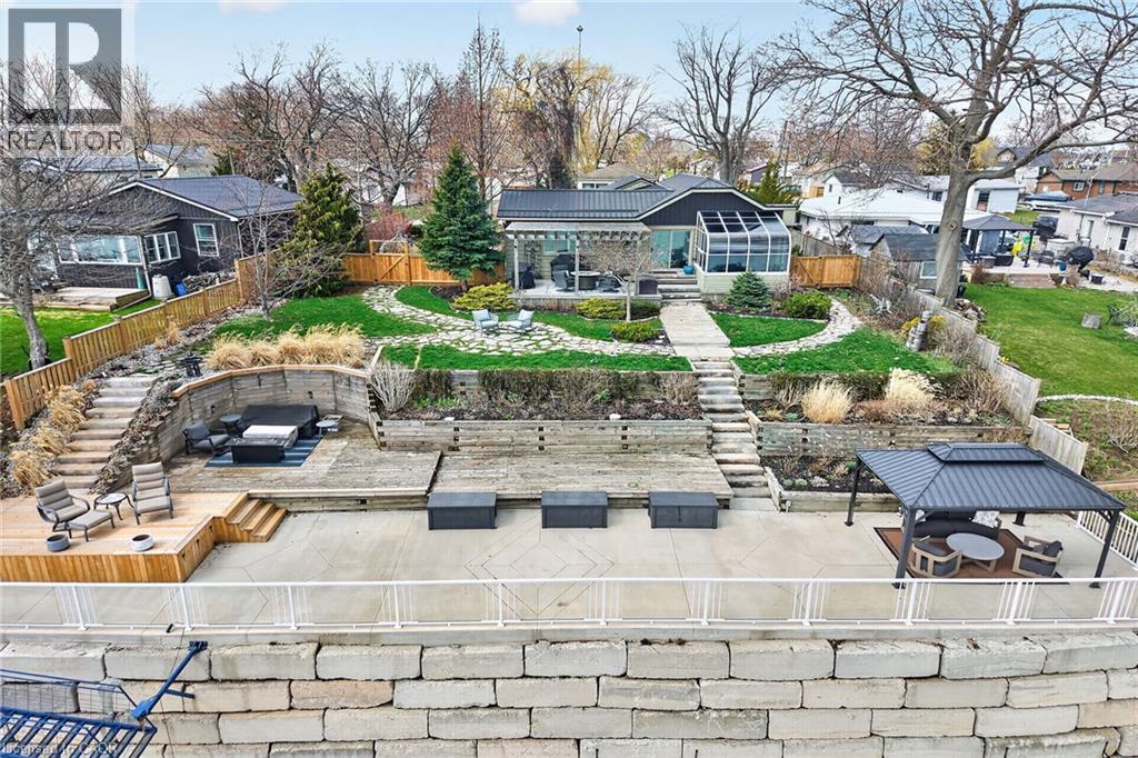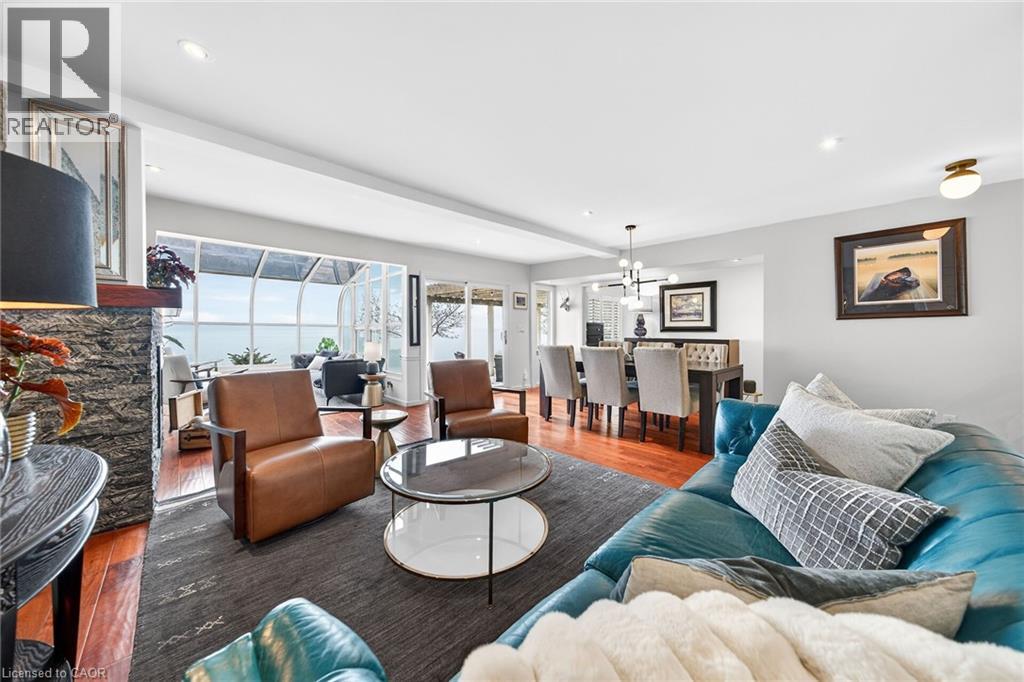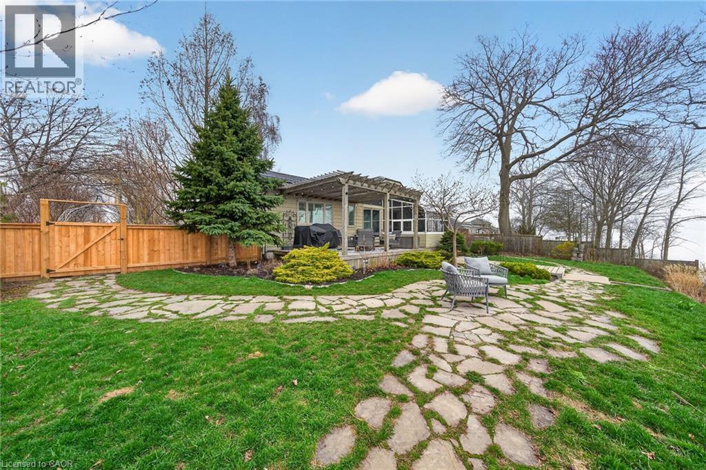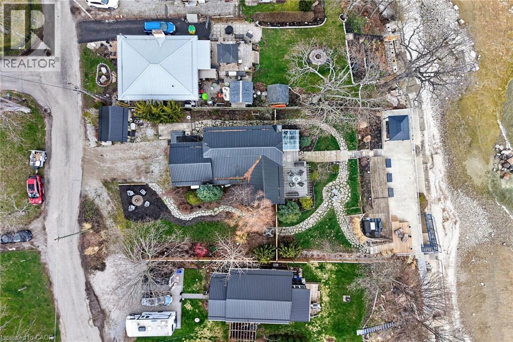Welcome to 108 Lakeside Dr! Experience breathtaking Lake Erie vistas from an extraordinary 80-ft concrete waterfront patio (2022), raised 8ft+ above the water’s edge cement pad, accessed by mechanized steel stairs (2022) for easy access to the sand/pebble beach. Perfect for launching kayaks or dipping toes. Relax beneath the pergola, enjoy the elevated lookouts, or take one of two precast stone stairs (Permacon® 2024) to the upper level’s 14 x 24 composite deck. The panorama is unforgettable! Overlooking this spectacular waterfront is a tastefully renovated, year-round home set proudly on a double lot landscaped with low upkeep perennials for all-season interest. The main level offers 1429sf of beautifully presented living space, highlighted by a sun-filled glass solarium and impressive living/dining room combo. On cool evenings light the gas FP highlighted in a stone feature wall while waves lap the shoreline. The sizeable primary bedroom captures soothing lake views and features a chicly renovated 3-pc ensuite (2026) and wall-to-wall closets. Gorgeous “distressed” engineered hardwood flooring (bedroom 2021) compliments the inviting décor throughout. The well-appointed kitchen enjoys an abundant cabinetry & small pantry, flowing naturally toward a second renovated 3-pc bath (2026). A comfortable family room—formerly 2nd bedroom—adds flex (TV room, office, guest space). The functional 636sf lower level (8-ft clgs) offers a tastefully finished bedroom (2023), laundry station, storage, mechanicals, and workshop area. Additional Features: • 14 kW generator (2025) • Metal roof (2019) • Wood fence/gates (2024) • 6k gallon cistern • Septic Sys w tile bed • Access to seasonal community water • Fibre high speed • Detached 12' x 16' shed • Updated windows • Natural gas furnace & A/C (2013) • Located in Peacock Point- along Lake Erie's Golden South Coast – close to beaches, Hoover’s Marina & E of Pt. Dover’s amenities - 50 min to Brantford/Hamilton. Let’s get to “The Point!” (id:4555)