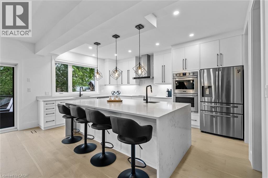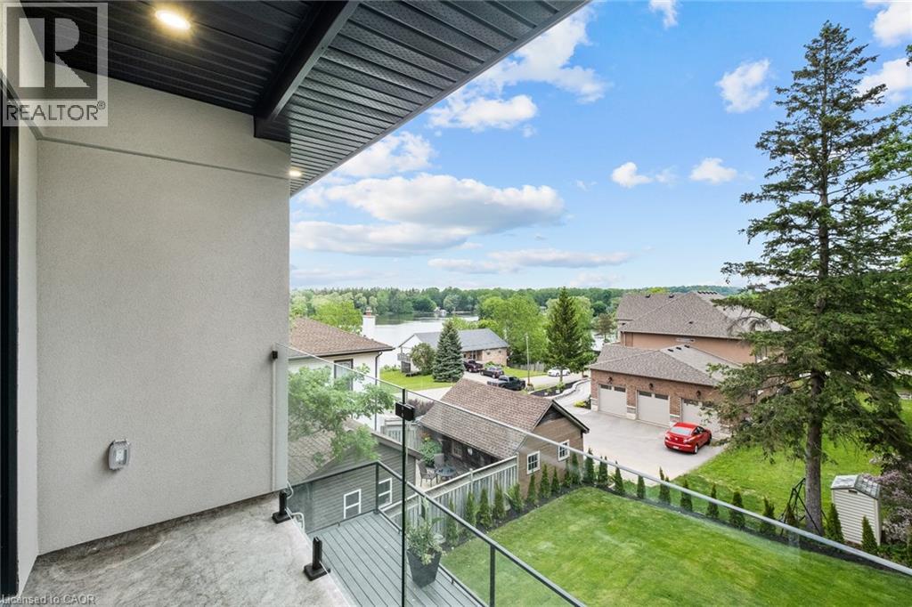 Welcome to this beautiful executive home in the quiet village of New Dundee. CUSTOM-BUILT HOME that EPITOMIZES LUXURY. The open concept floor plan features marble & engineered flooring throughout. A front den, powder room, & bright living room, w/ striking feature wall. The kitchen offers a large center island, QUARTZ countertops w/ waterfall feature, and backsplash. STAINLESS APPLIANCES, soft-close mechanisms, a dream walk-in pantry, & a convenient mudroom that provides access to the triple garage, boasting epoxy flooring, & a TANDEM DRIVETHROUGH FEATURE. Double slider doors lead you to the COMPOSITE DECK, where you can relax and enjoy the serene views of Alder Lake in the background. Admire the GRAND SOLID WOOD STAIRCASE, adorned w/ open tread risers, GLASS SLAB ACCENT RAILINGS, & a stunning brick veneer backdrop that spans all three levels. The upper level offers three spacious bedrooms, each w/ its own walk-in closet & ensuite bathroom. Don't miss the private access through the loft, leading you to a ROOFTOP TERRACE. The primary bedroom, accessed through double doors boasts two walk-in closets, & a LUXURIOUS 5-PIECE ENSUITE w/ a floating tub & separate shower. The private access to your own primary balcony allows for INCREDIBLE VIEWS. The lower level has been thoughtfully arranged to include a full kitchen, two bedrooms (one currently serves as an office), a separate laundry area, & a full 3-piece bathroom. FULL WALKOUT w/ access to a stone patio, hot tub, & a fire pit area, all within a fully fenced lot. Just minutes away from all the conveniences. (id:4555)