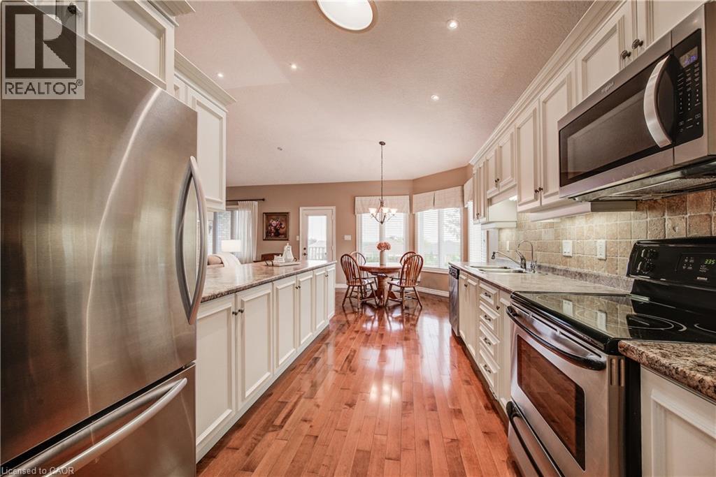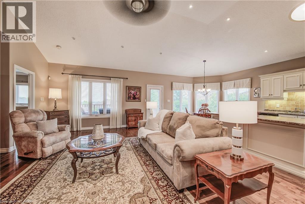 Discover the allure of 116 Stonecroft Way, a beautifully appointed brick bungalow in Stonecroft, New Hamburg's esteemed adult lifestylecommunity. This home offers the best of both worlds: exceptional privacy on a large, mature lot, combined with immediate access to thecommunity's impressive amenities. Step inside to an inviting open-concept living and dining area, adorned with gleaming hardwood floors. Themain level provides convenience with 2 bedrooms and a versatile den. The kitchen, open to the dinette and partially to the living area, features awalk-out to a spacious covered deck, ideal for outdoor enjoyment. The finished lower level significantly expands your living space, boasting agenerous rec room with a gas fireplace and a 3-piece bath, complete with a walk-out to a lower-level patio. There's also abundant unfinishedspace, perfect for an additional bedroom or hobby area. This home comes loaded with upgrades, including vaulted ceilings, large bright windows,pot lights, crown moldings, updated insulation, and newer mechanicals and quality roof. As part of this private condominium community, you'll besteps away from the 18,000 sq. ft. recreation centre, offering an indoor pool, fitness room, tennis courts, and 5 km of walking trails. Enjoy quickaccess to KW, the 401, Stratford, and all major amenities, health care facilities and Theatre and cultural offerings of the area. This exceptionalproperty truly has it all! (id:4555)
