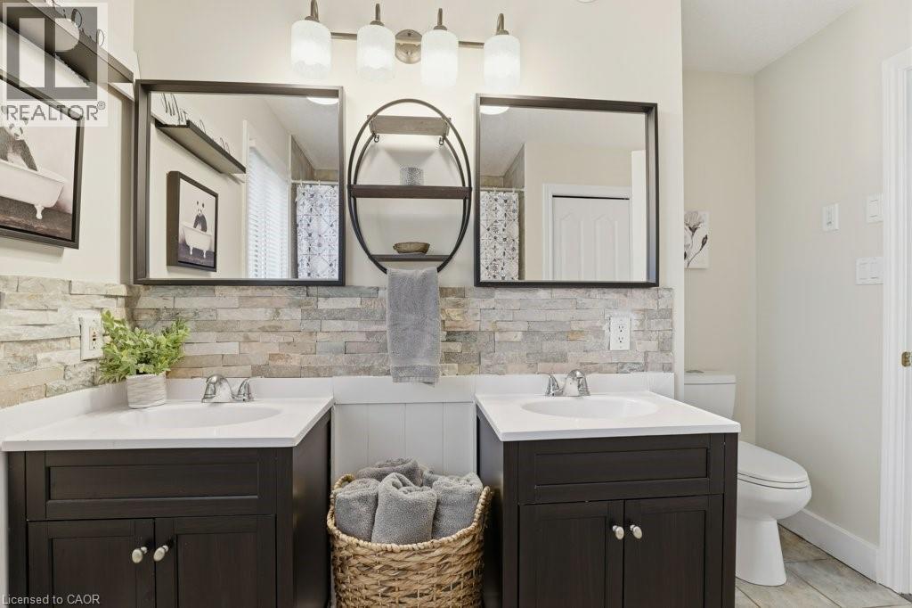 Prepare to fall in love with this beautiful family-friendly home! This welcoming 4 bedroom two-storey boasts a perfect location on highly-sought Laschinger Boulevard, and backs directly onto the soccer fields and school yard beyond. The main level features a bright living room and an impressively updated kitchen with quartz countertops, stainless steel appliances, and breakfast bar. The dining area has a walkout to the fully fenced backyard with patio, gazebo and hot tub! There is also laundry room, powder room, and inside entry from the double car garage on this level. Upstairs, you’ll find four spacious bedrooms, including the large primary with walk-in closet and ensuite privilege to the 5pc hallway bath. The basement is finished and perfect for family hangouts or overnight guests, with a family room, a den, a workout area, a 3pc bath, and plenty of storage. The backyard is gorgeous! You’ll love the concrete patio with gazebo and Arctic Spa hot tub. There is plenty of room to play, beautiful gardens, storage shed, and even a gate into the field and school yard beyond. Many recent updates including the steel roof, kitchen, furnace, A/C, gazebo, hot tub, flooring, and more! Families wait years for the right home to pop up on this street, don’t miss this one! Call your Realtor today to book a private appointment before it’s gone! (id:4555)