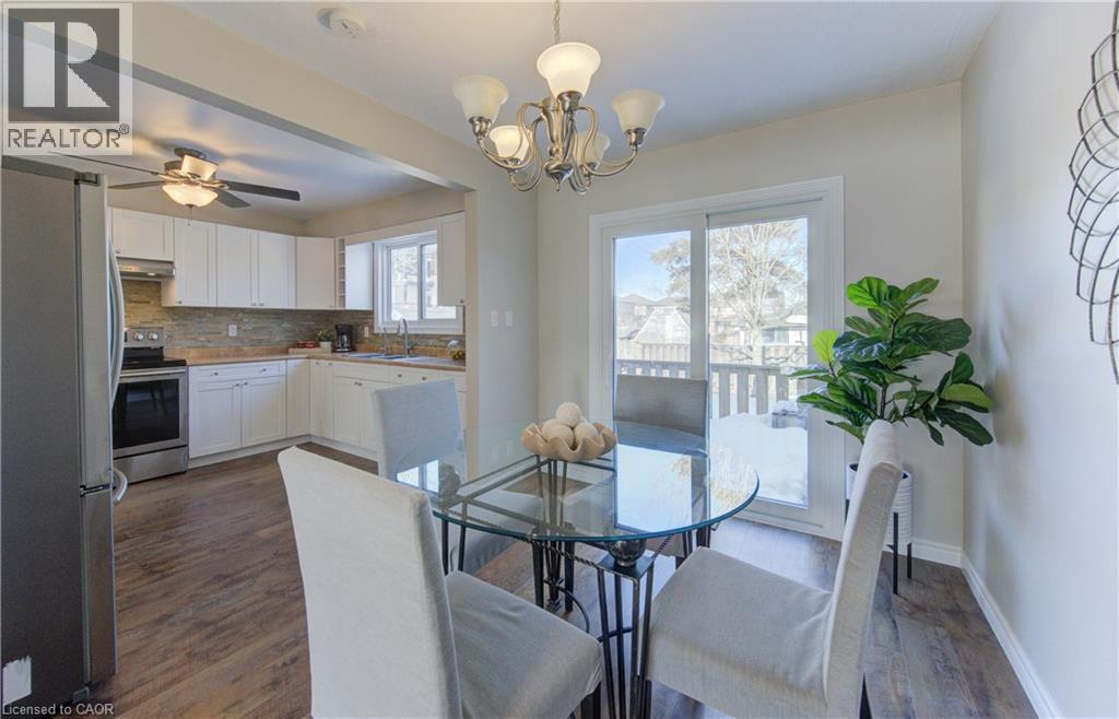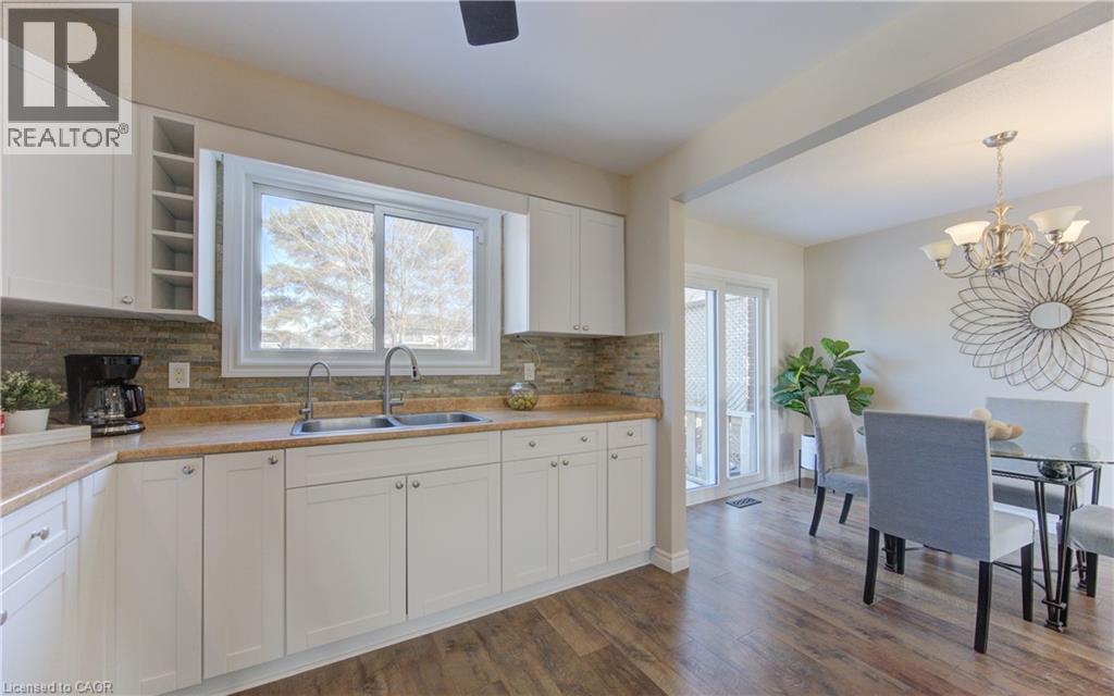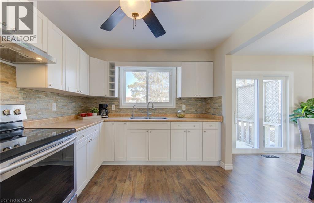 Welcome to this beautifully maintained semi-detached home in the heart of New Hamburg, perfectly suited for first-time buyers or simply those looking for an affordable move-in-ready property. This home has been completely updated and freshly painted throughout, featuring updated flooring and carpet-free! The bright kitchen with dinette offers a walkout to a fully fenced backyard and deck, creating a great space for entertaining or relaxing outdoors. A community park directly across the street adds to the family-friendly appeal. Upstairs offers three generous bedrooms and a nicely updated 4-piece bathroom with granite countertop. The fully finished lower level has a separate side entrance which leads to the large recroom and second bathroom, providing additional functional living space as well as possible in-law potential. Major mechanical updates include furnace and central air in 2017 and roof in 2021. The driveway was widened and redone in 2020, offering enough parking for everyone! With all levels finished and extensive updates completed, this home truly has nothing left to do but move in and enjoy! (id:4555)