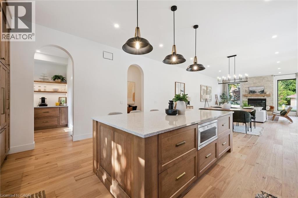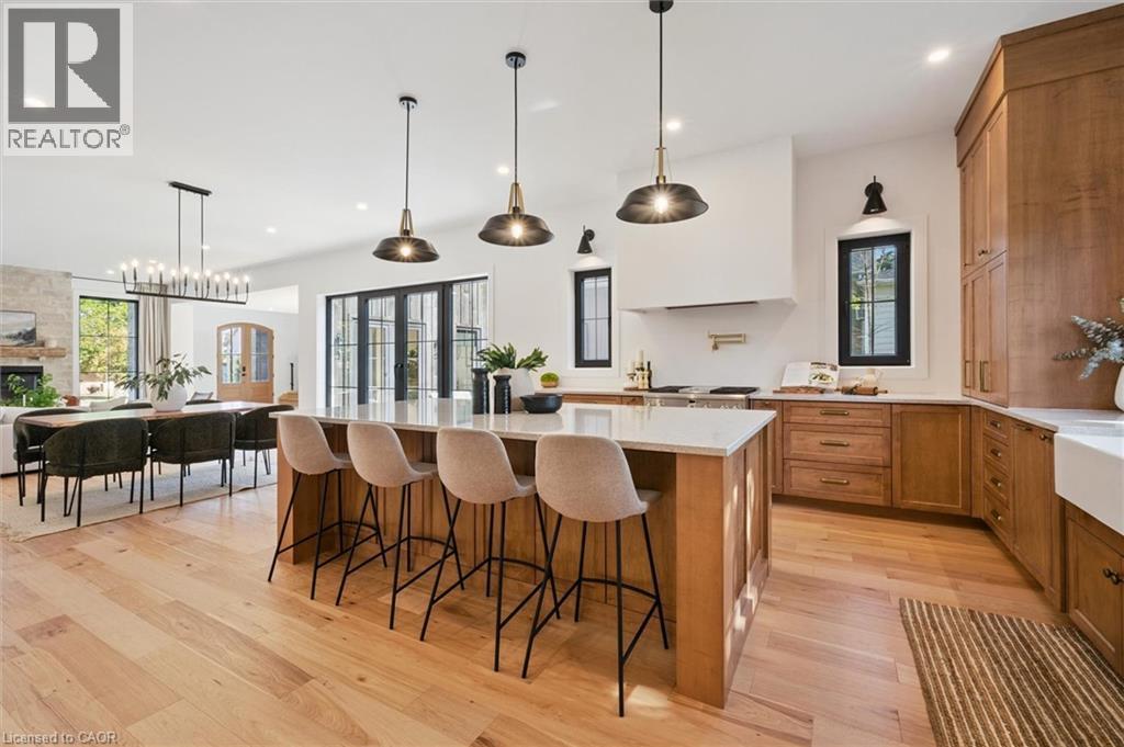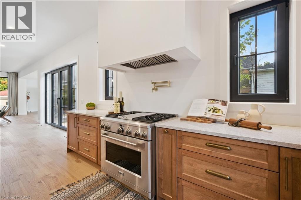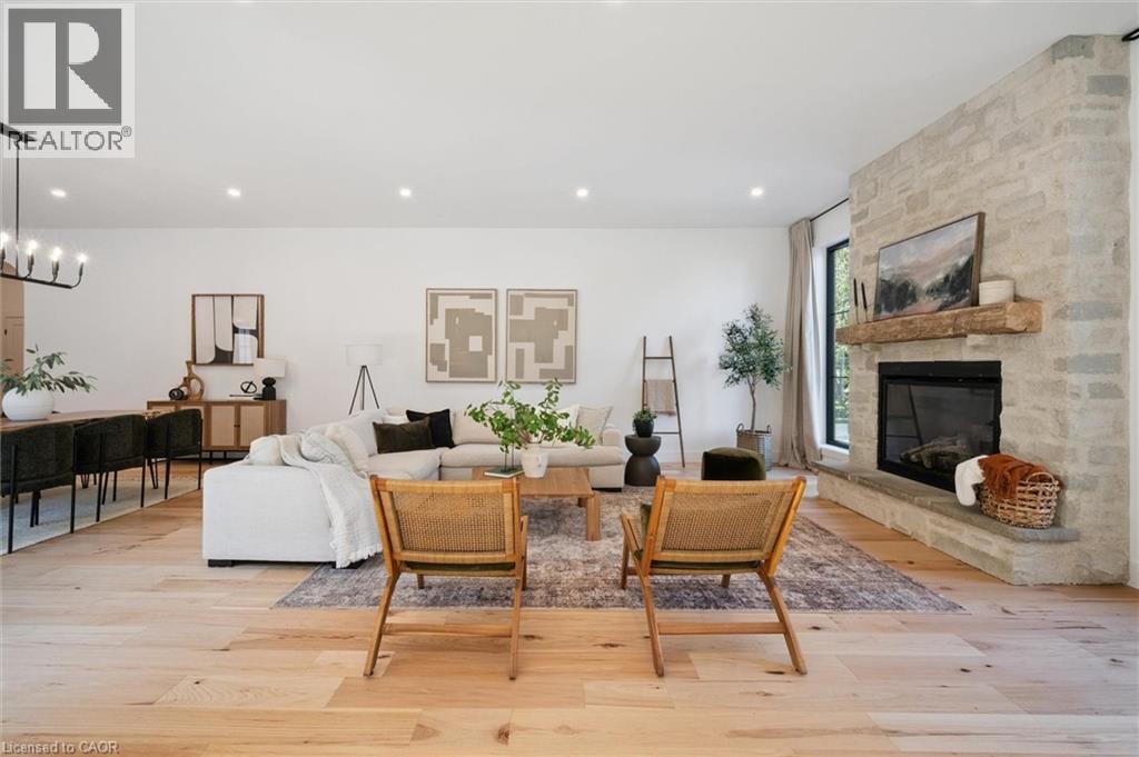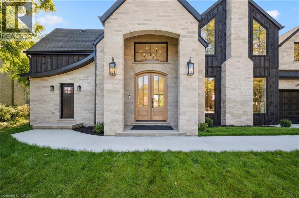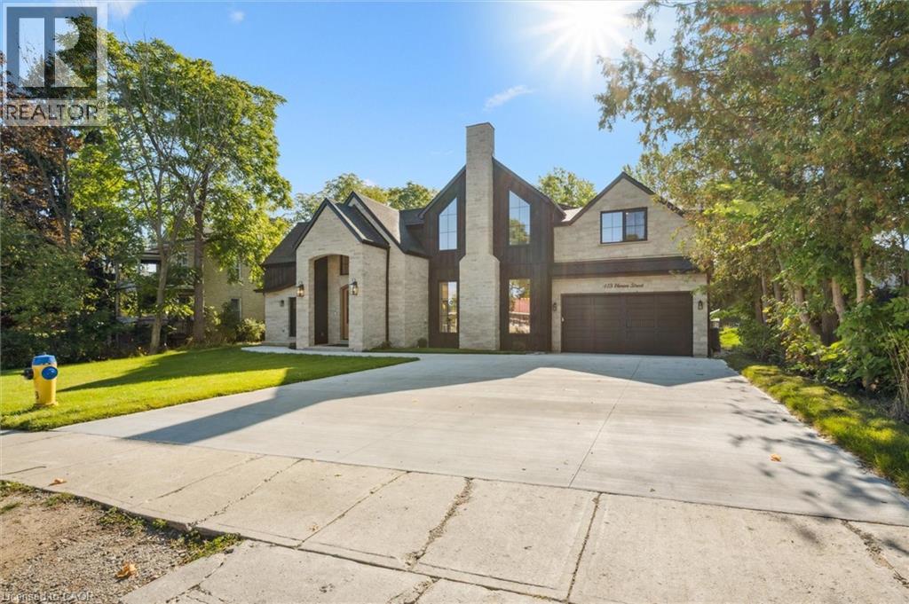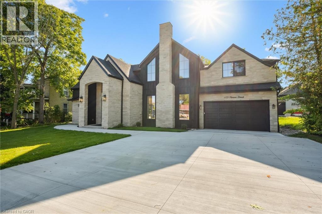 Welcome to 413 Huron Road in charming New Hamburg! A truly exceptional 5-bedroom, 4-bathroom home offering over 4,400 sq. ft. of finished living space, where thoughtful design meets high-end finishes and timeless craftsmanship. The exterior blends timeless materials like stone, brick, and barn board for a striking curb appeal, complemented by a concrete driveway with integrated drainage and underground downspout management. Inside, the home is flooded with natural light thanks to oversized Raven European tilt/turn windows, which beautifully highlight the neutral tones, organic finishes, and natural hickory engineered hardwood throughout. The heart of the home is the handcrafted maple kitchen and adjoining butler’s pantry, featuring a Monogram gas oven/range, built-in 36” Fisher & Paykel fridge and dishwasher, an apron sink, and ample storage, ideal for everyday living and entertaining alike. A separate entrance leads to a private granny flat, perfect for multi-generational living or guests. Comfort is maximized with multi-zone climate control, a hot water recirculation line for instant hot water to the second-floor bathrooms, and a large Lennox natural gas fireplace for cozy evenings. Additional features include a custom vanity in the foyer bath, VIGO faucets, Red Oak stairs, and a master suite boasting oversized windows and Italian tile finishes. The home is equipped with a 200 AMP electrical panel, water softener, and plenty of storage including a large shed. Outside, enjoy an incredible entertaining space with a wood deck and an expansive grass area set on 3/4 acre in town perfect for relaxing or hosting gatherings. This is a rare blend of luxury, functionality, and thoughtful design in a peaceful, sought-after location. (id:4555)