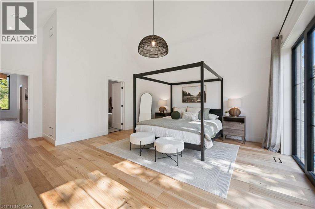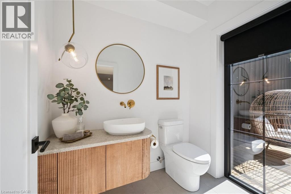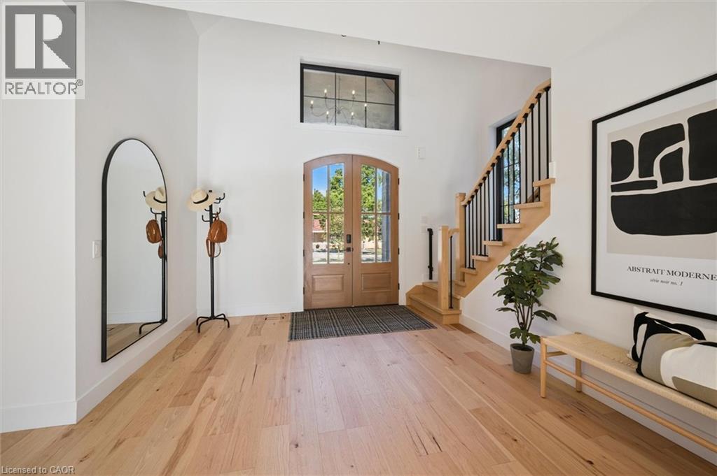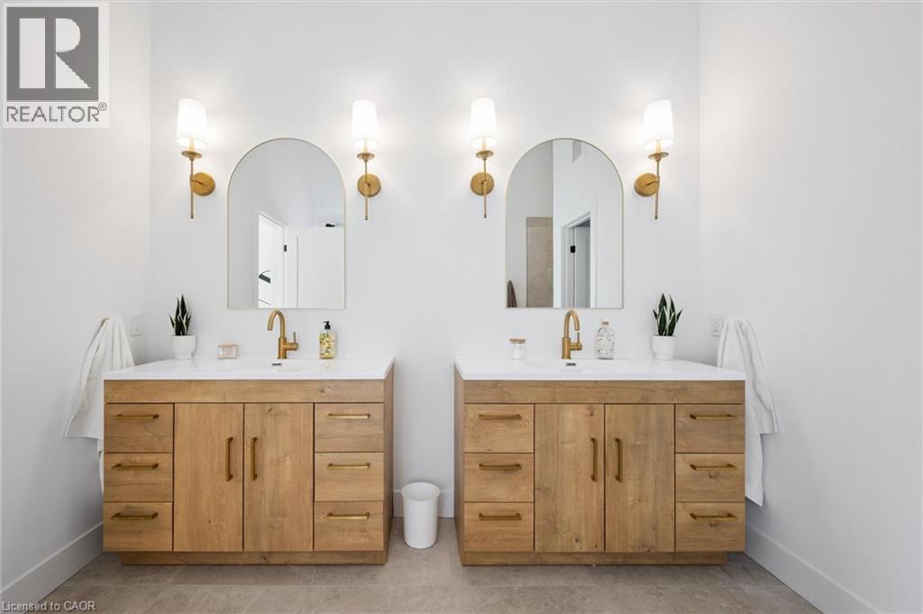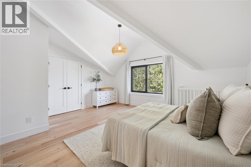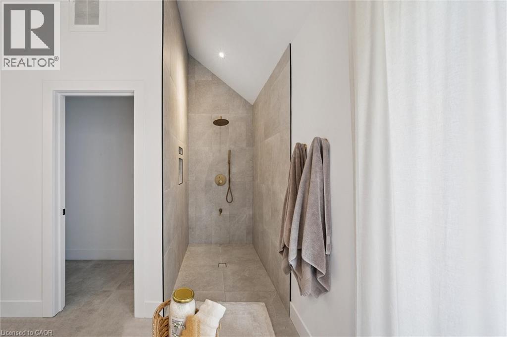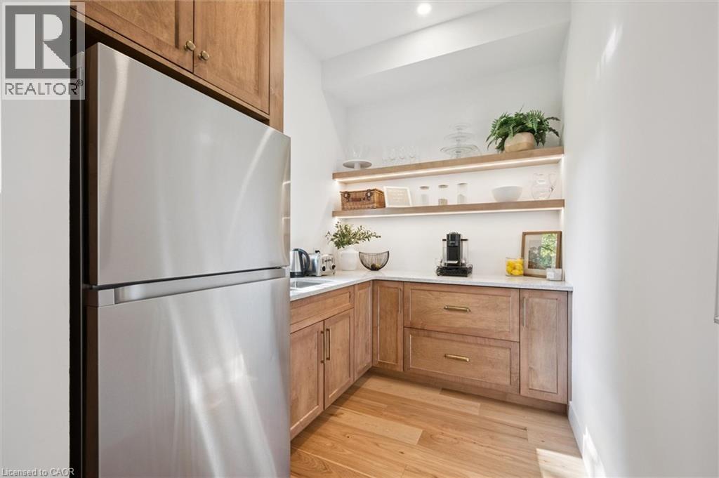 Welcome to 413 Huron Road in charming New Hamburg! A truly exceptional 5-bedroom, 4-bathroom home offering over 4,400 sq. ft. of finished living space, where thoughtful design meets high-end finishes and timeless craftsmanship. The exterior blends timeless materials like stone, brick, and barn board for a striking curb appeal, complemented by a concrete driveway with integrated drainage and underground downspout management. Inside, the home is flooded with natural light thanks to oversized Raven European tilt/turn windows, which beautifully highlight the neutral tones, organic finishes, and natural hickory engineered hardwood throughout. The heart of the home is the handcrafted maple kitchen and adjoining butler’s pantry, featuring a Monogram gas oven/range, built-in 36” Fisher & Paykel fridge and dishwasher, an apron sink, and ample storage, ideal for everyday living and entertaining alike. A separate entrance leads to a private granny flat, perfect for multi-generational living or guests. Comfort is maximized with multi-zone climate control, a hot water recirculation line for instant hot water to the second-floor bathrooms, and a large Lennox natural gas fireplace for cozy evenings. Additional features include a custom vanity in the foyer bath, VIGO faucets, Red Oak stairs, and a master suite boasting oversized windows and Italian tile finishes. The home is equipped with a 200 AMP electrical panel, water softener, and plenty of storage including a large shed. Outside, enjoy an incredible entertaining space with a wood deck and an expansive grass area set on 3/4 acre in town perfect for relaxing or hosting gatherings. This is a rare blend of luxury, functionality, and thoughtful design in a peaceful, sought-after location. (id:4555)