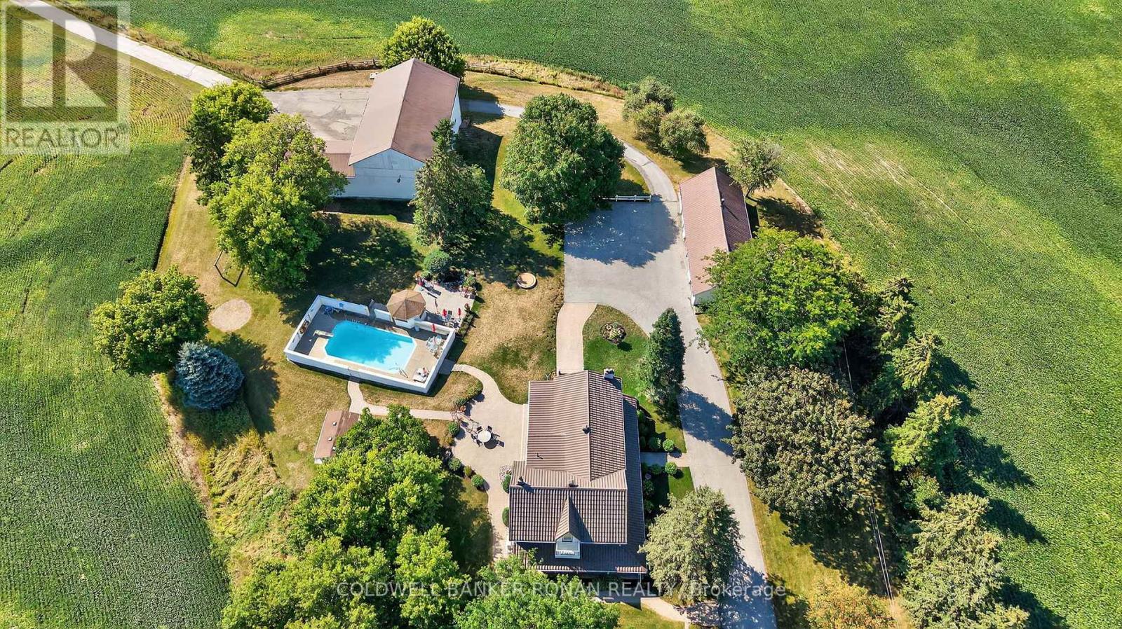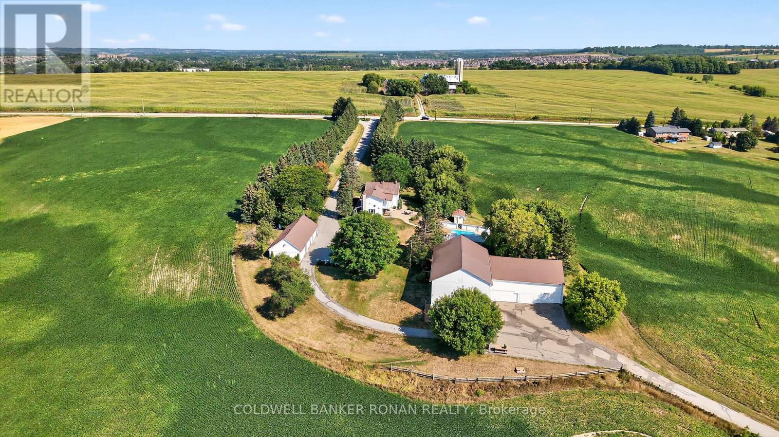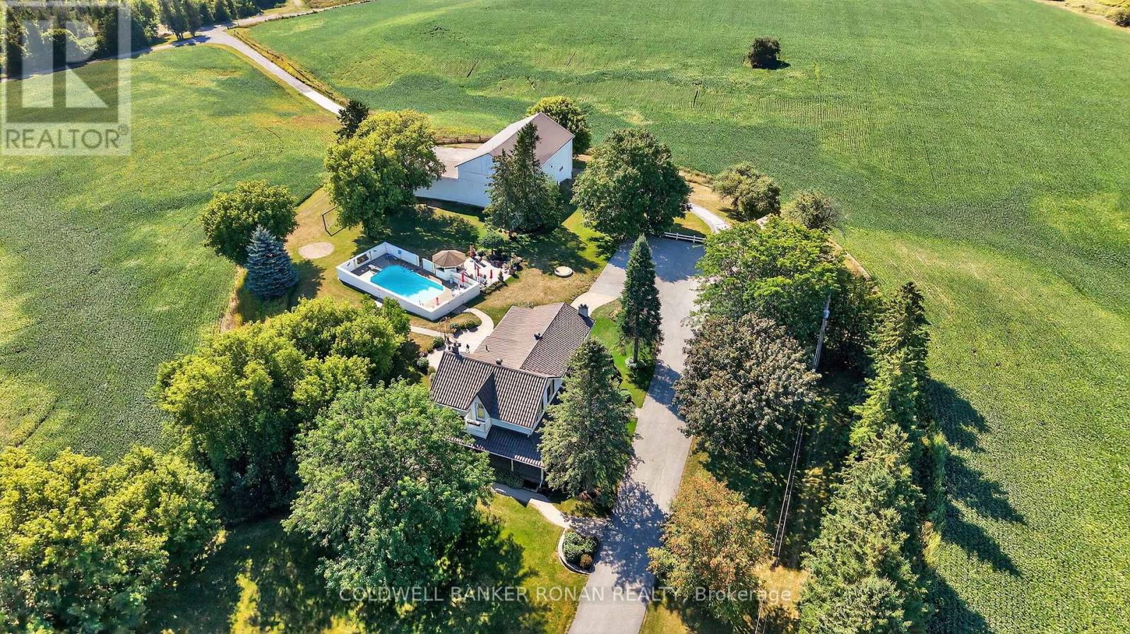 A Private Country Paradise. Welcome to this exceptional 104-acre farm estate offering the perfect blend of functionality, natural beauty, and refined country living. Whether you're looking for a working farm, a private retreat, or a place to create lasting family memories, this meticulously maintained property delivers it all. Set back from the road you'll arrive via a long, paved tree-lined driveway framed by a classic white fence, leading to a manicured lawn and beautifully landscaped flower gardens. The mixed-use land offers productive cash crop fields, forested trails for hiking or ATVing, a private pond, and ample open space for recreation or expansion. The charming 4-bedroom home features a metal roof, covered front porch ideal for relaxing summer evenings, inviting living room with fireplace and walk out to patio, large eat in kitchen, formal dining room great for entertaining and grand primary suite complete with a 4-piece ensuite, wall-to-wall closet, and walk-out to a large private balcony. Outside, enjoy the fully fenced in-ground pool for warm-weather fun, complete with tiki bar. A classic barn, and a detached 4-bay garage offer ample storage and workspace. Dual access to the property provides convenience and flexibility. Whether you're seeking tranquility, an investment opportunity or a place to bring your rural dreams to life, this stunning property located close to the growing town of Alliston has it all. Don't miss this rare opportunity to own a piece of countryside perfection. (id:4555)