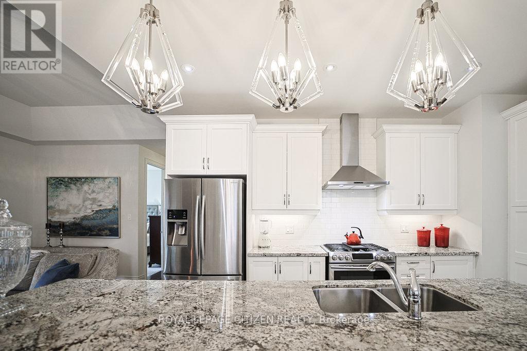 VERY RARE DOUBLE CAR GARAGE!! Tucked along the fairways of Briar Hills picturesque golf course sits this highly sought-after adult lifestyle community, where friendships and neighborly connections come naturally. This charming brick and stone semi-detached bungalow offers nearly 2,000 sq. ft. of finished living space, featuring 2+1 bedrooms and 2.5 bathrooms and a rare 2-car garage! The spacious kitchen is designed to impress with classic white cabinetry, granite countertops, a sleek backsplash, and stainless steel appliances, including a gas stove and dishwasher. A bright breakfast nook welcomes natural light, while a cozy adjoining alcove makes the perfect spot for a home office or reading retreat. The open-concept living and dining area showcases hardwood flooring, a warm gas fireplace, and a walkout to a covered patio ideal for relaxing or entertaining. The main-floor primary suite boasts coffered ceilings, large windows, and a 4-piece ensuite complete with a walk-in shower and generous vanity. The lower level is equally inviting, offering a comfortable family room with plenty of natural light and a second fireplace. A rough-in for a kitchenette or wet bar enhances the space for entertaining, while a guest bedroom with a 3-piece bath ensures privacy for visitors. Additional conveniences include a laundry room, utility room, cantina, and abundant storage. Upgrades such as central air conditioning, direct garage access, and exclusive parking complete the package. This meticulously maintained home delivers exceptional comfort, privacy, and leisure within a vibrant adult community where every amenity is just moments away. (id:4555)