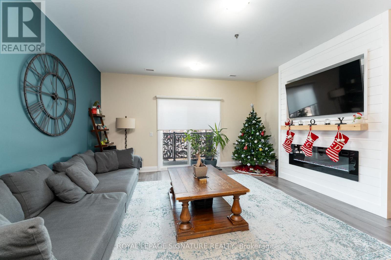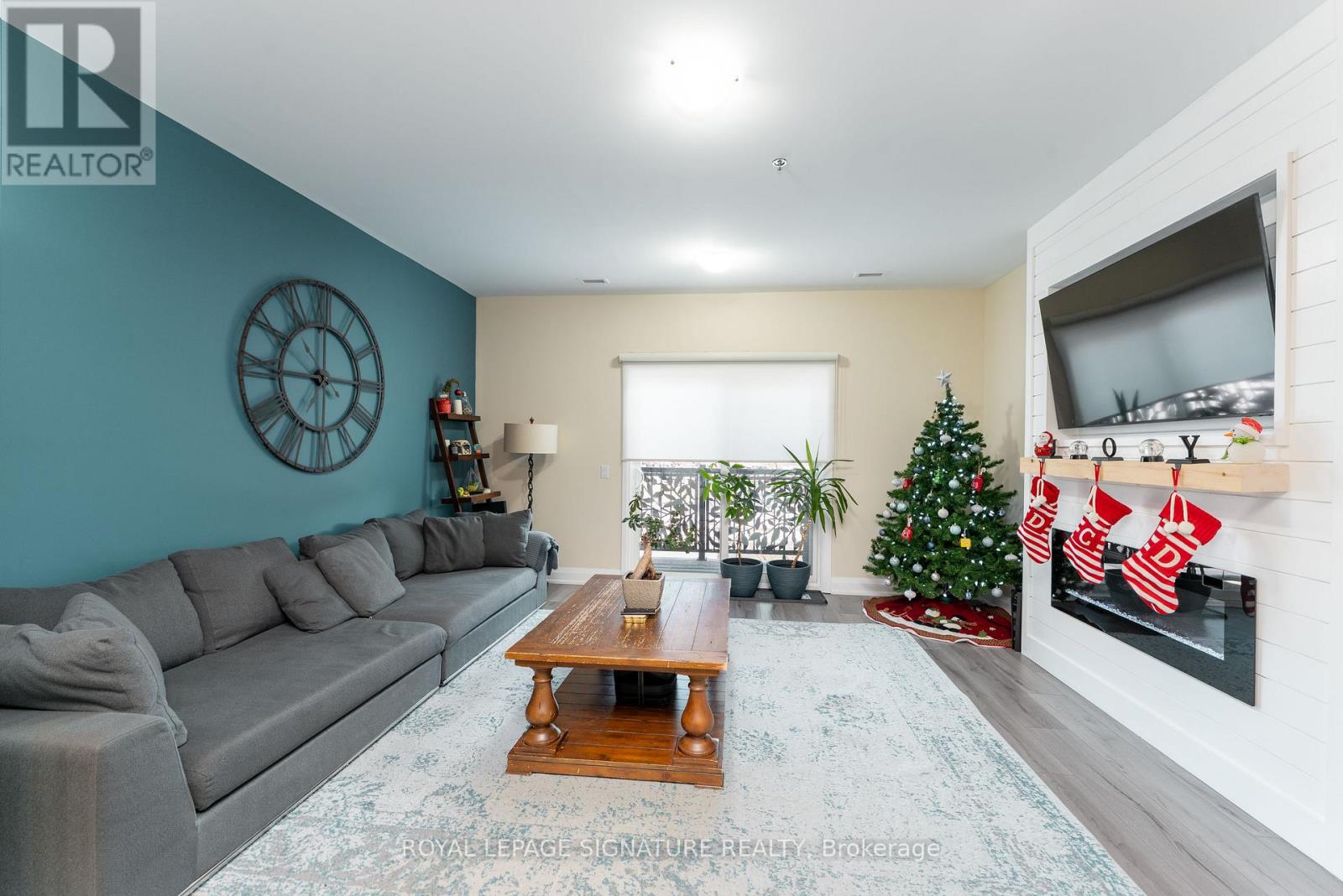 Great area and a wonderful starter place to raise a family. Two bedroom 2 bathroom condo apartment with parking and locker. Close to a quaint town. The condo building is in close walking distance to parks,restaurants & shopping. The place has a beautiful built-in tv unit and fireplace. Kitchen is open concept kitchen with stone counters andback splash. The living room walks out to balcony. Laminate flooring throughout. The hallway features a built-in cubbies for coats. The condo is in walking distance two schools and grocery stores. (id:4555)